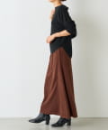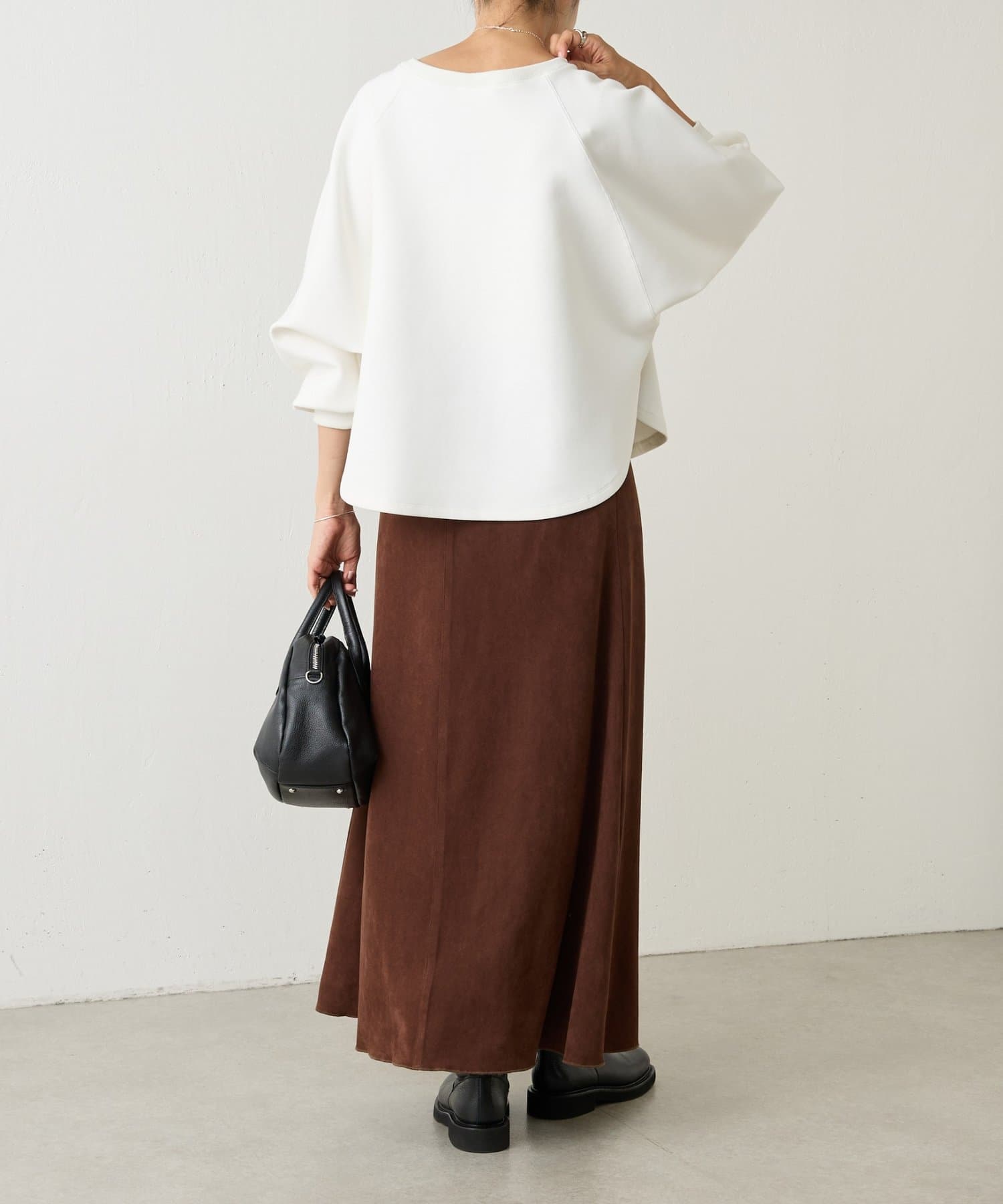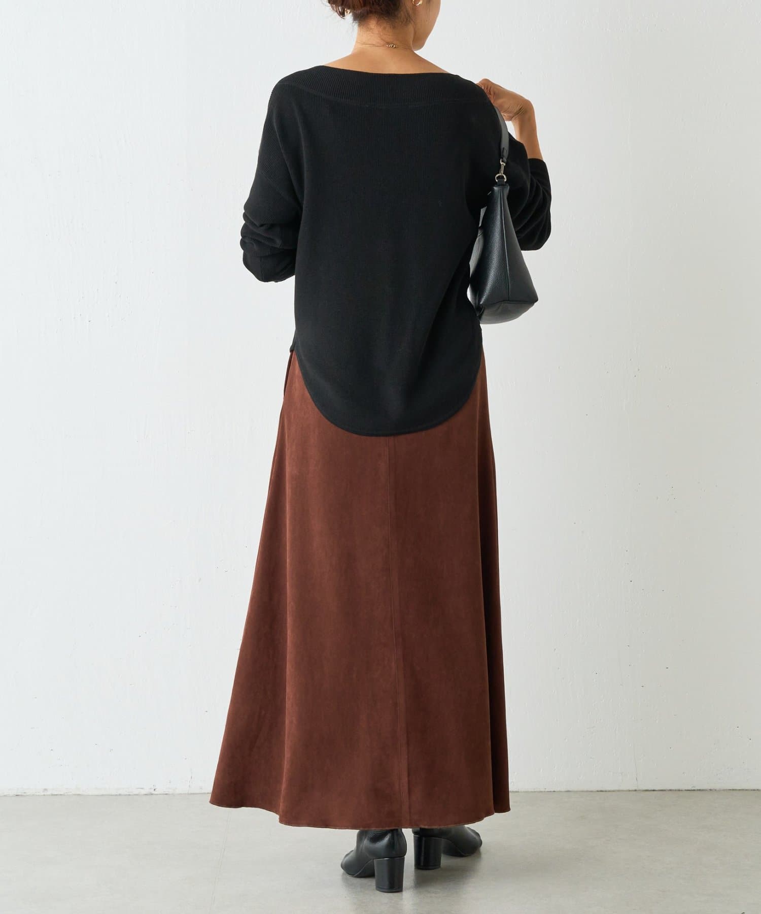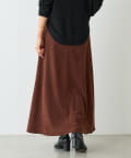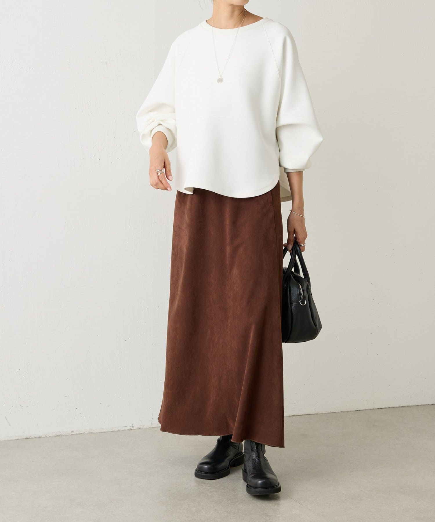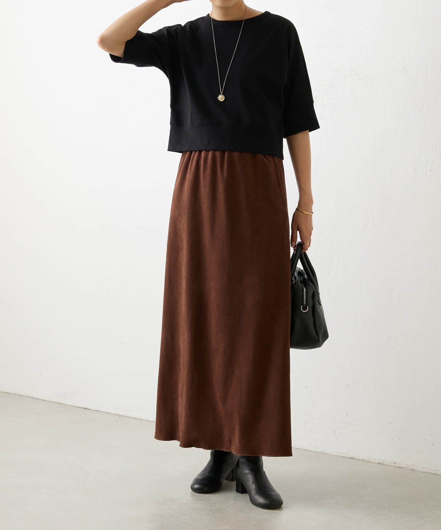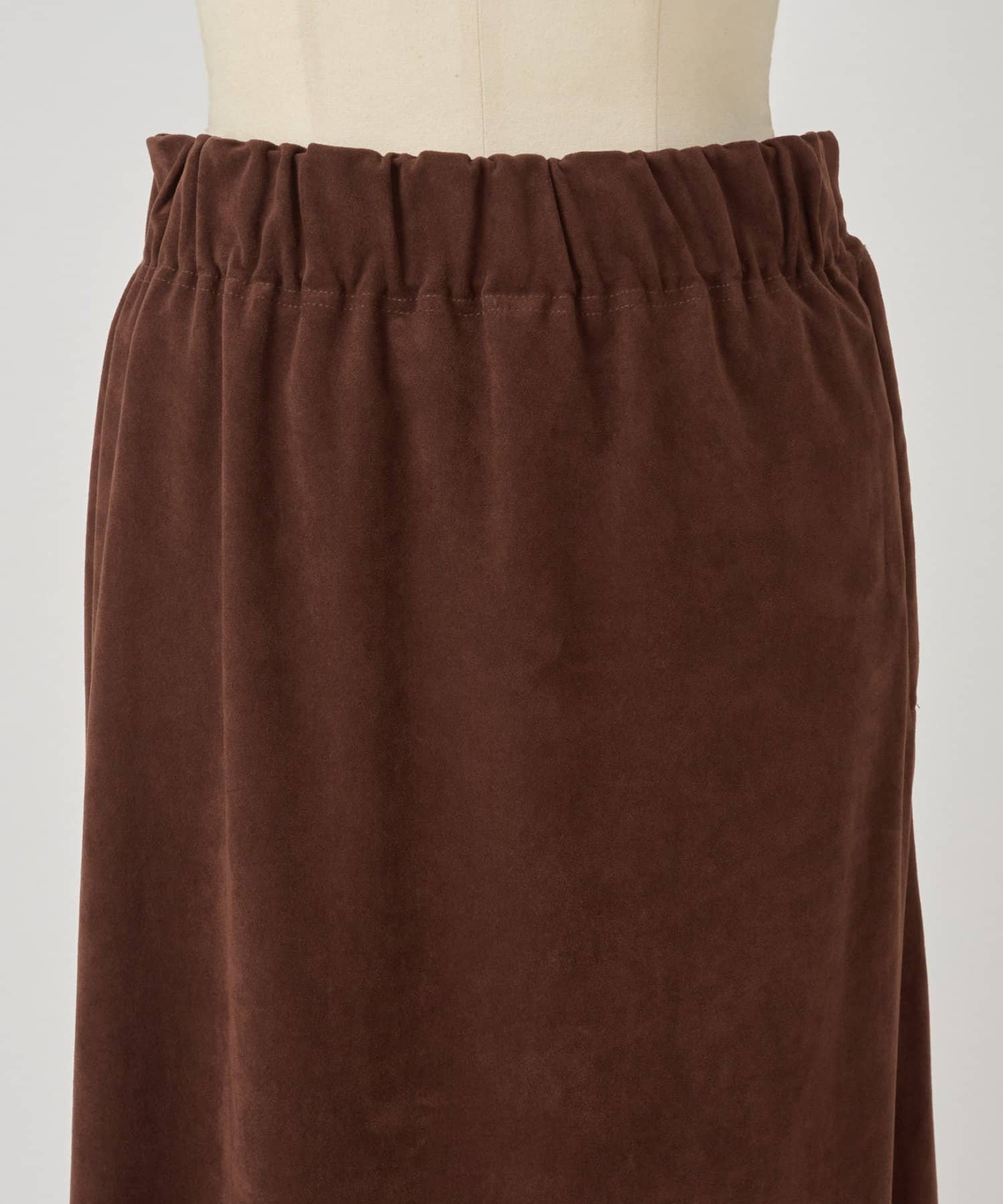 秋らしさを添えるスエード風素材を使用したロングスカート。