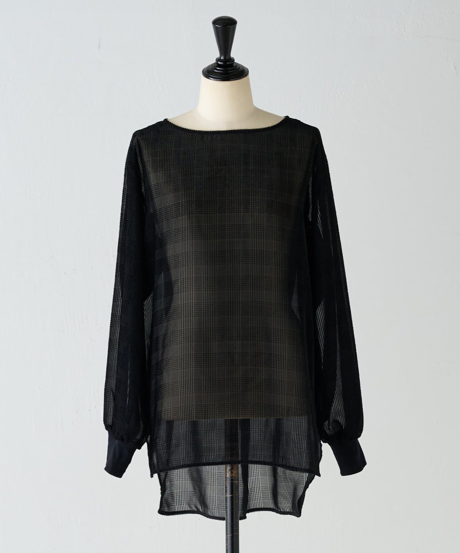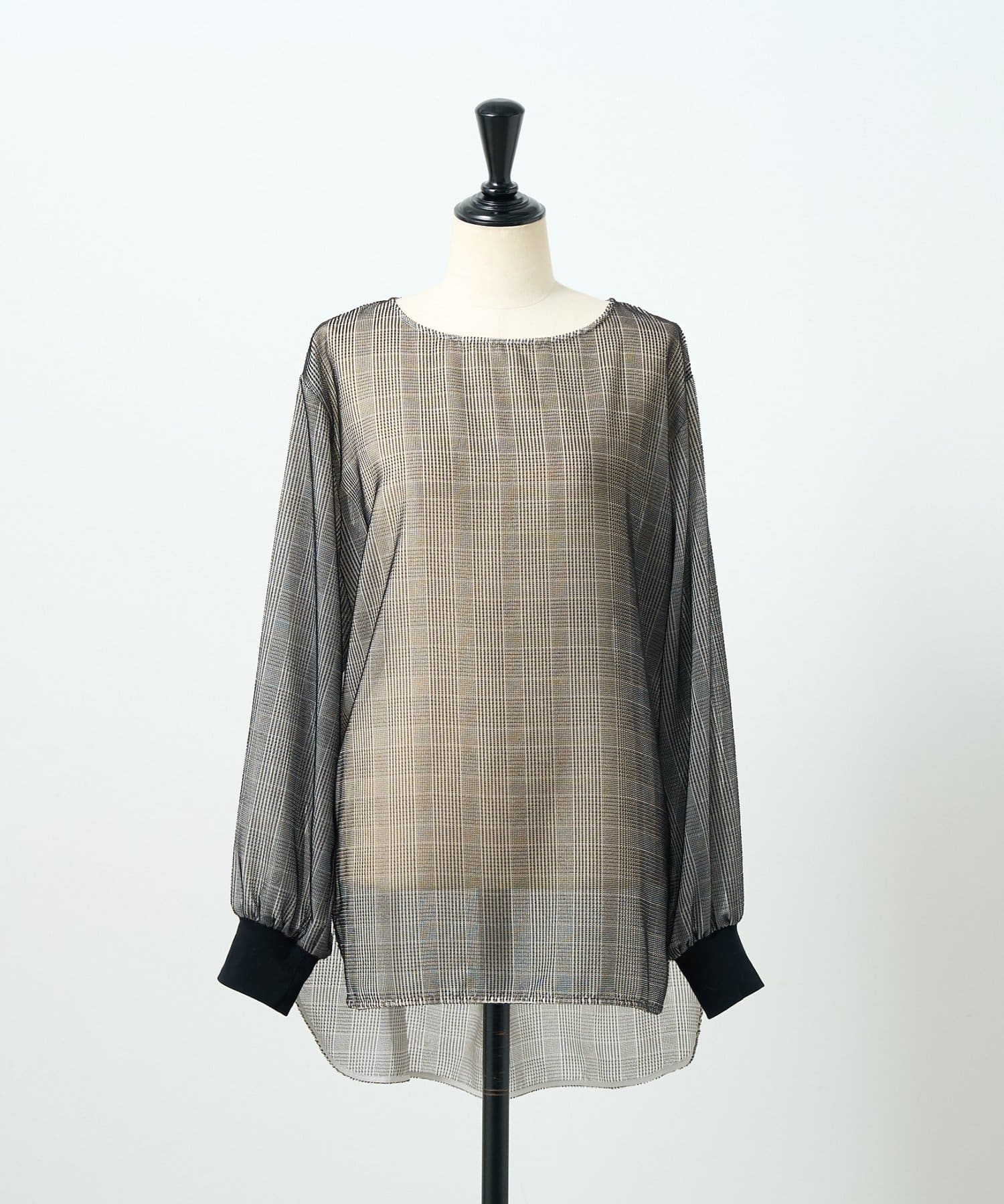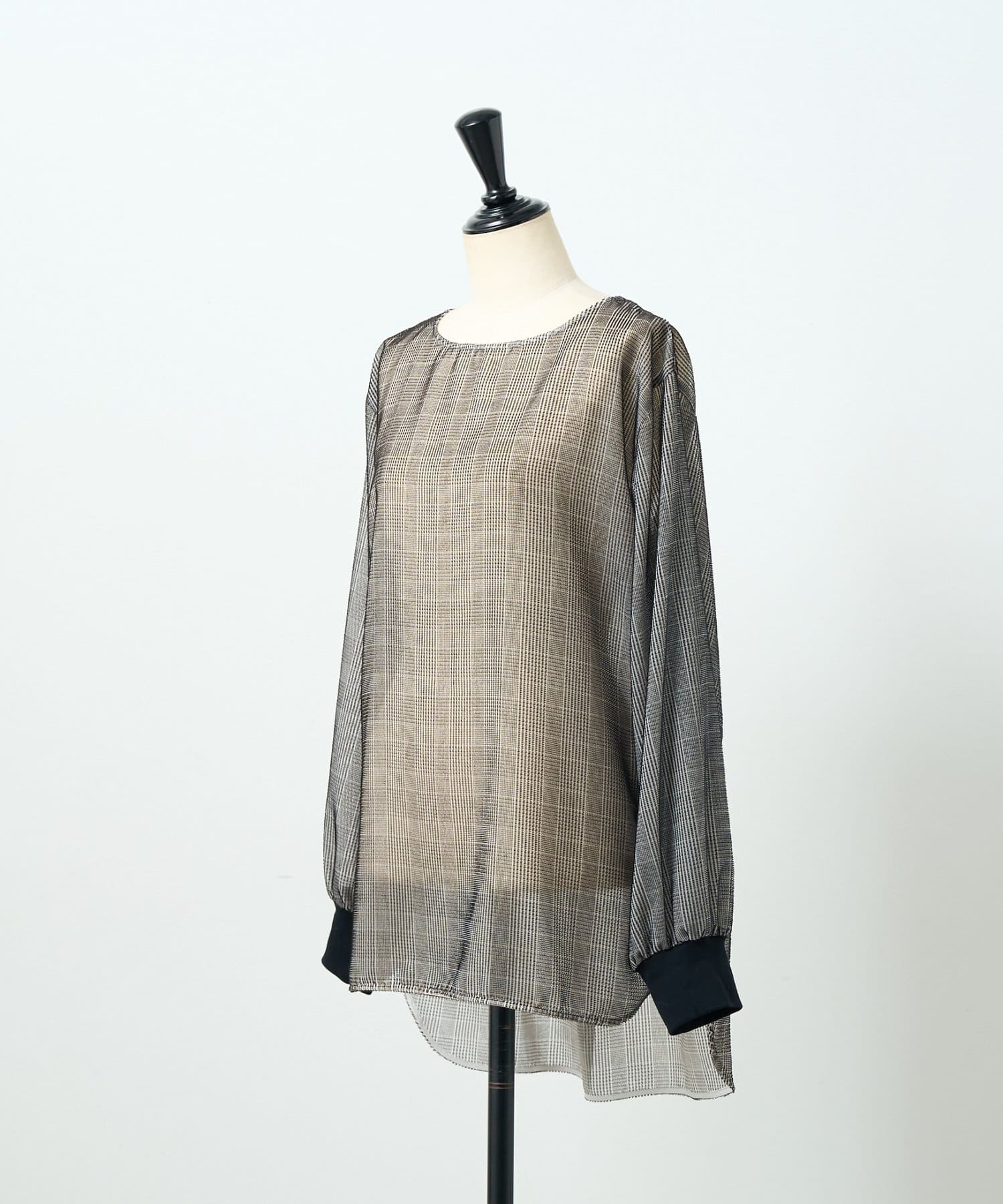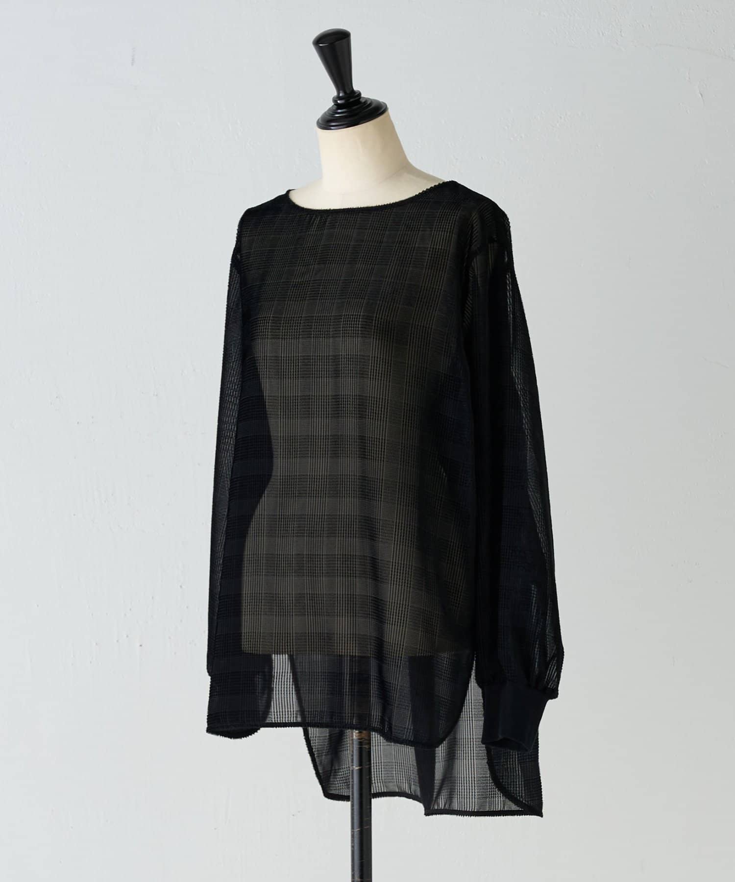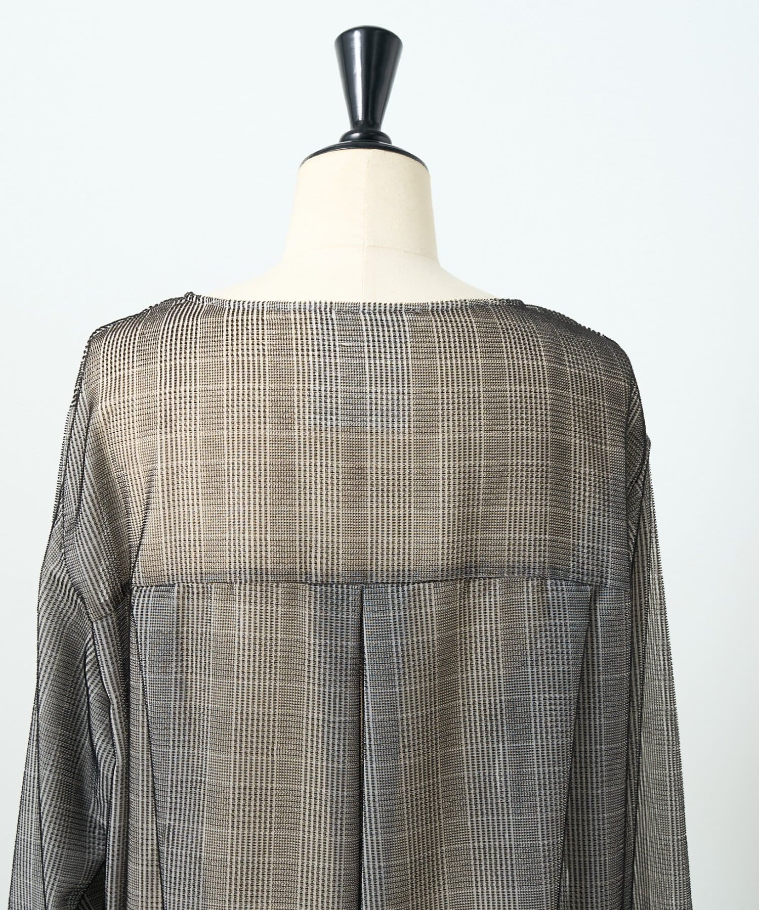 シアー感とベルベットでチェック柄を表現した異素材ミックスが魅力のプルオーバー。