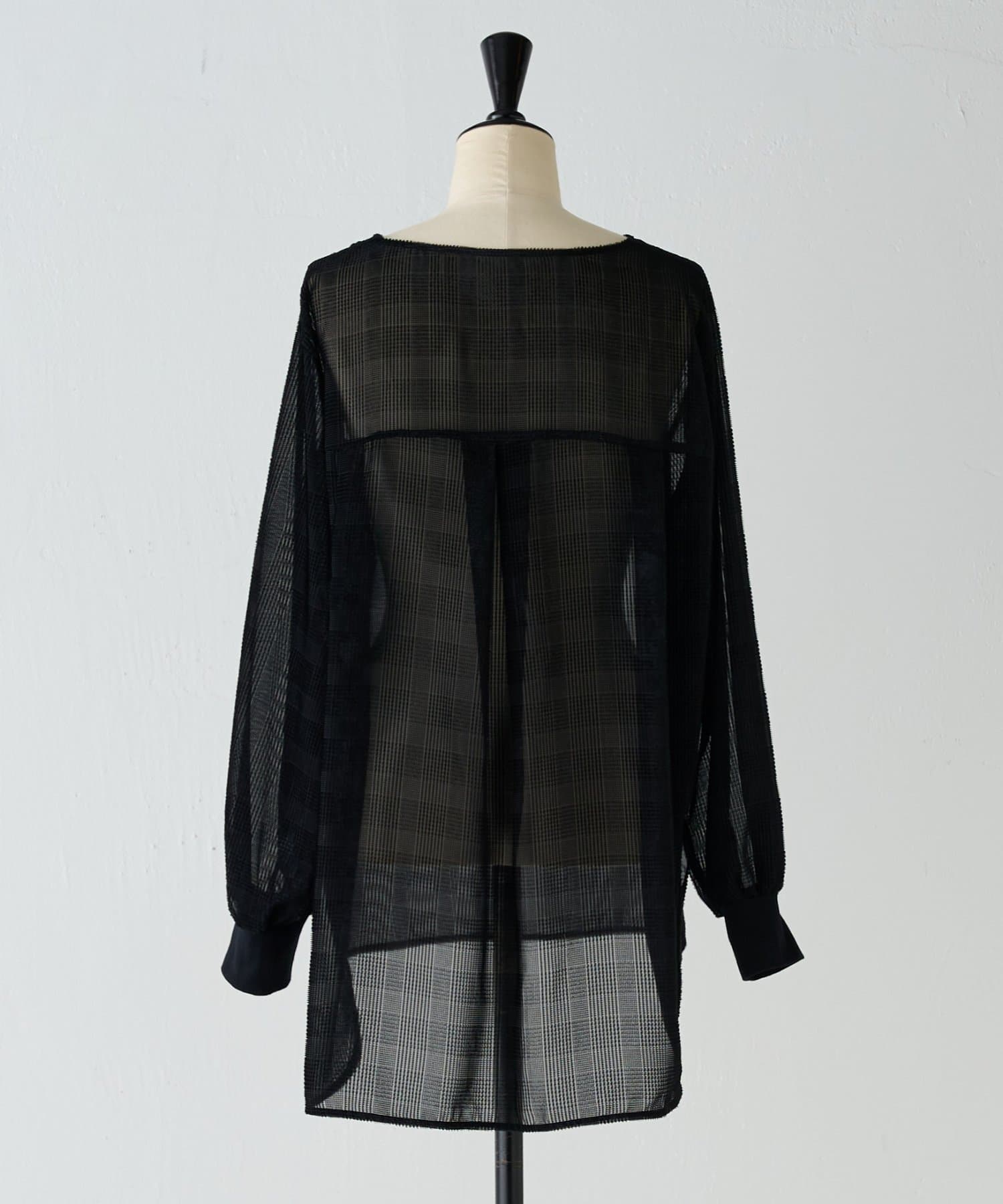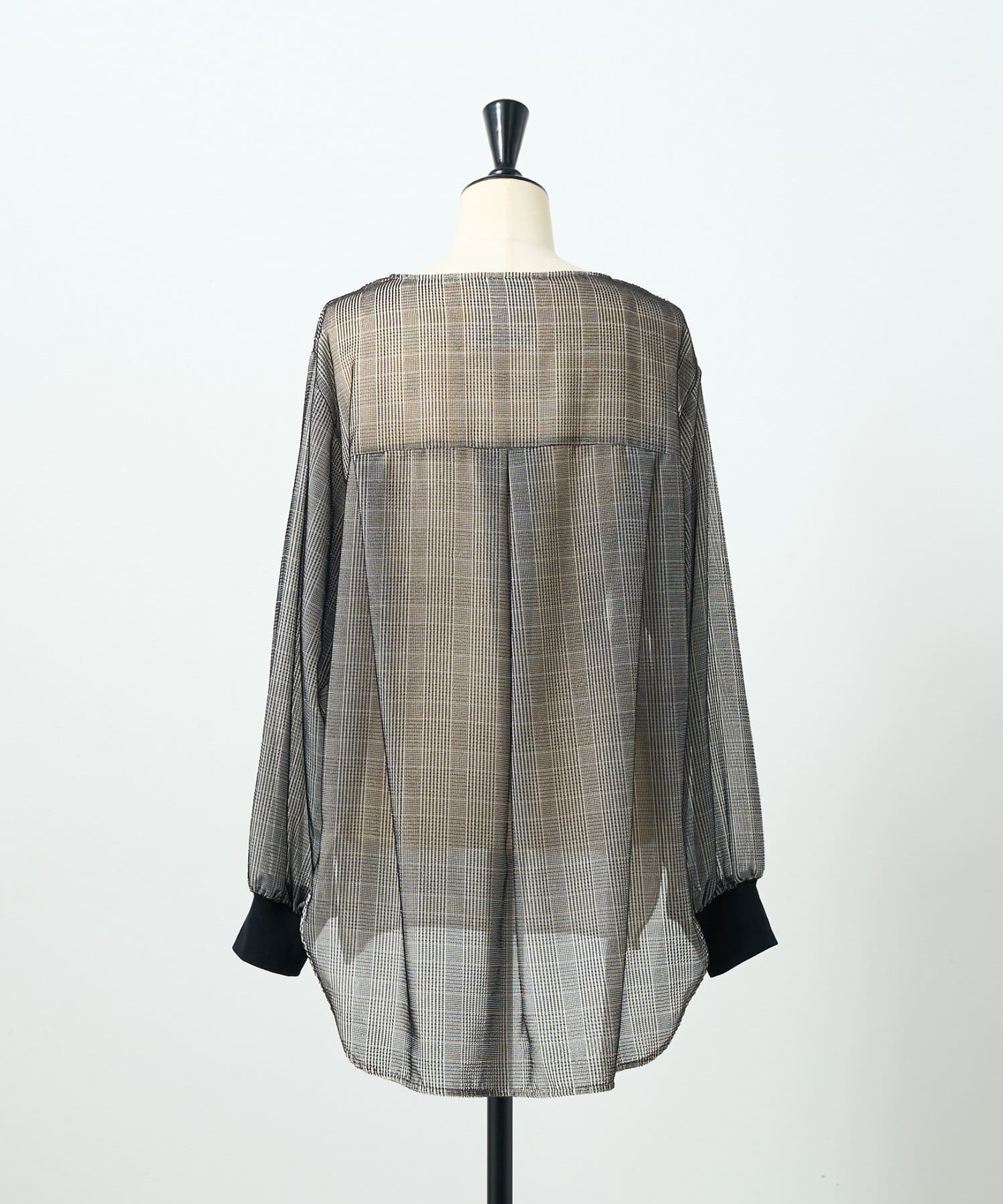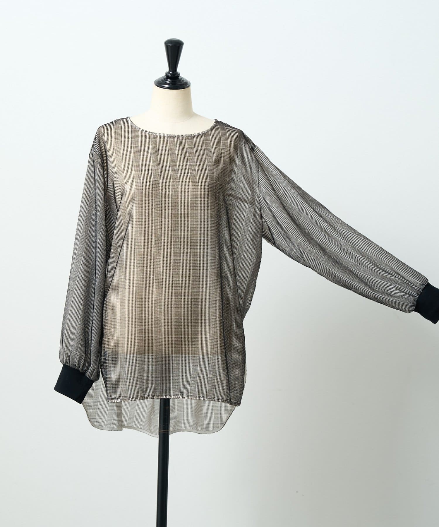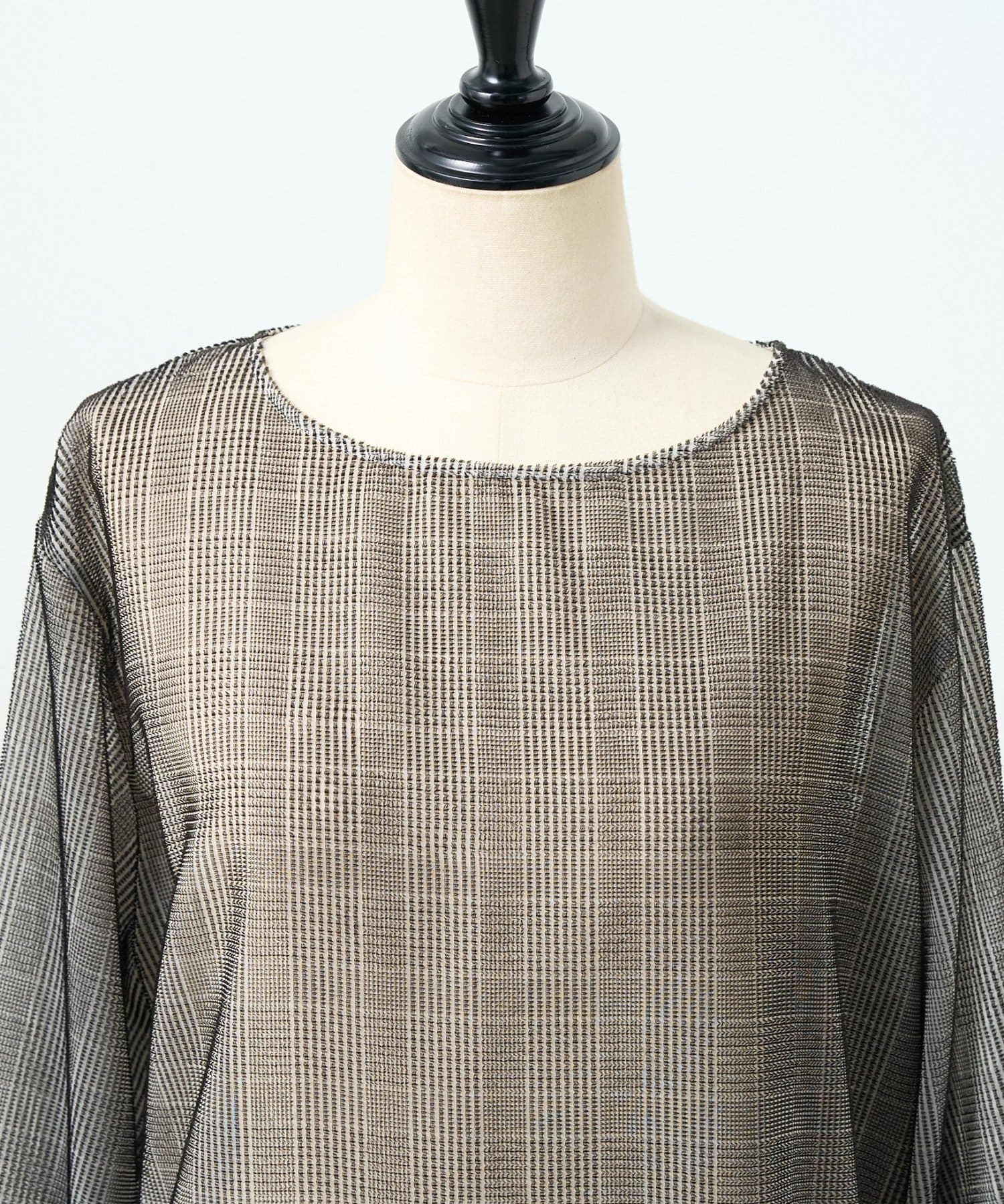 シアー感とベルベットでチェック柄を表現した異素材ミックスが魅力のプルオーバー。