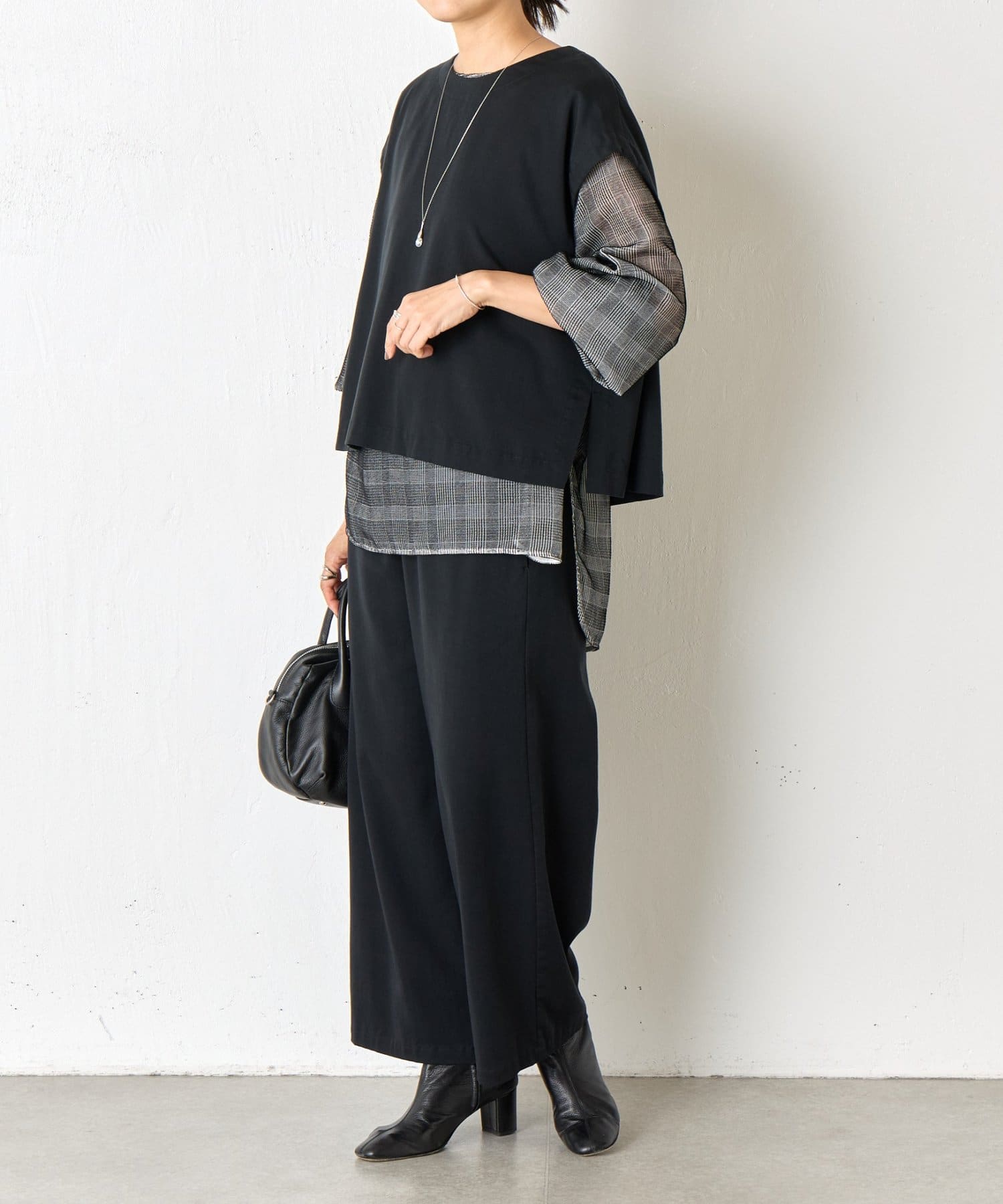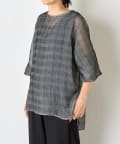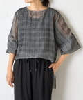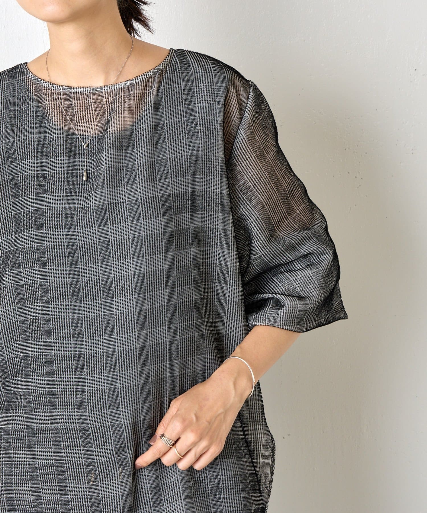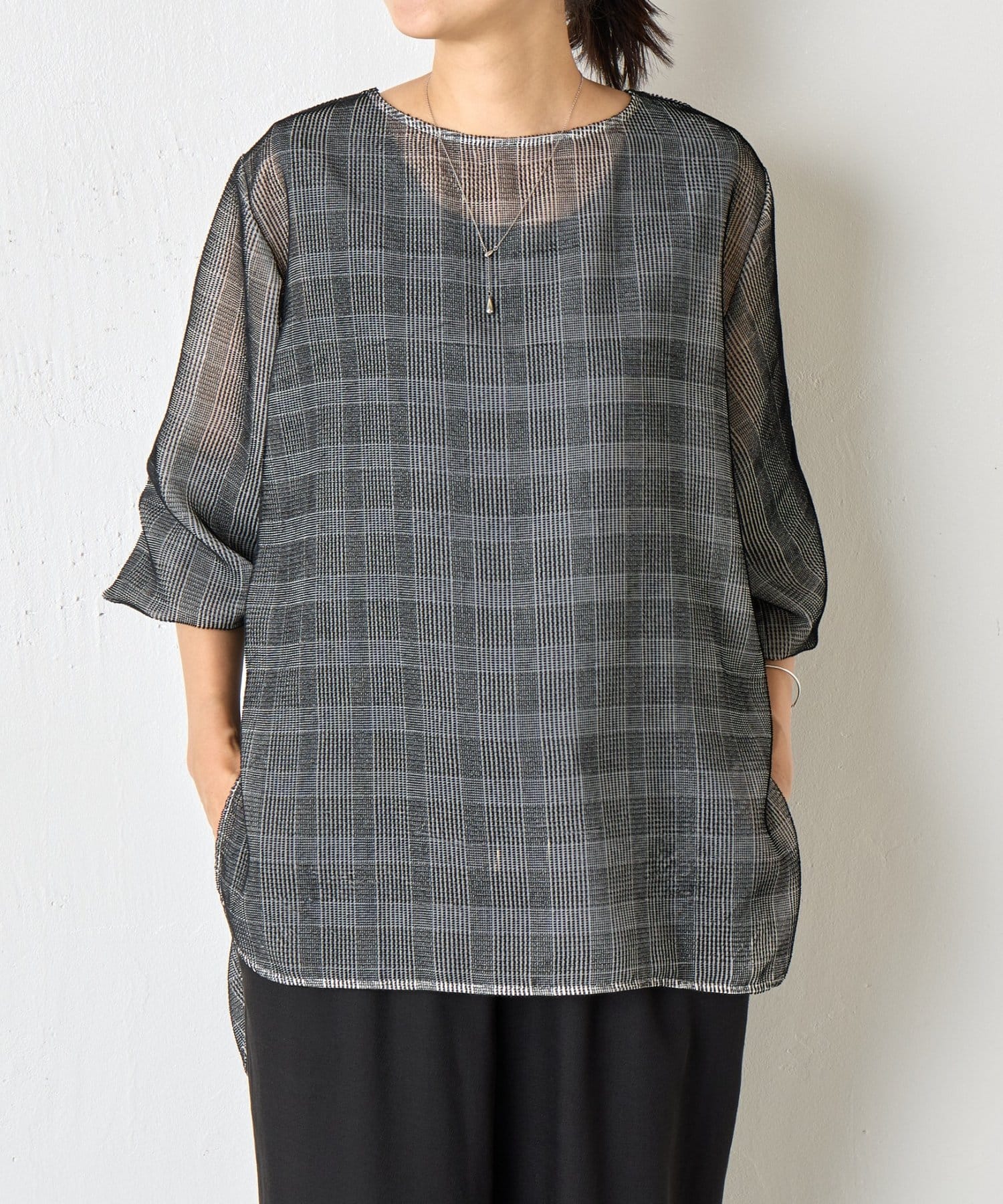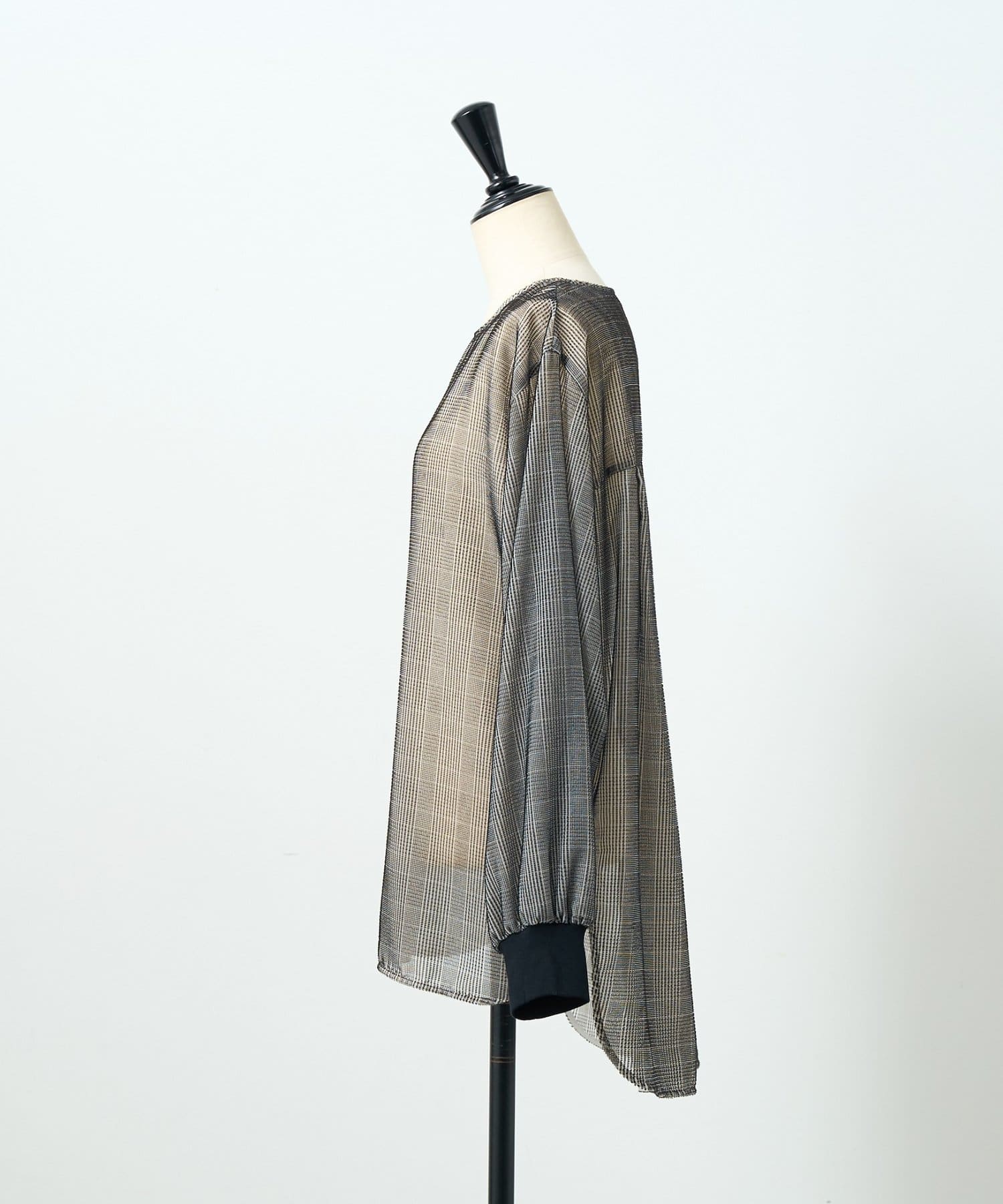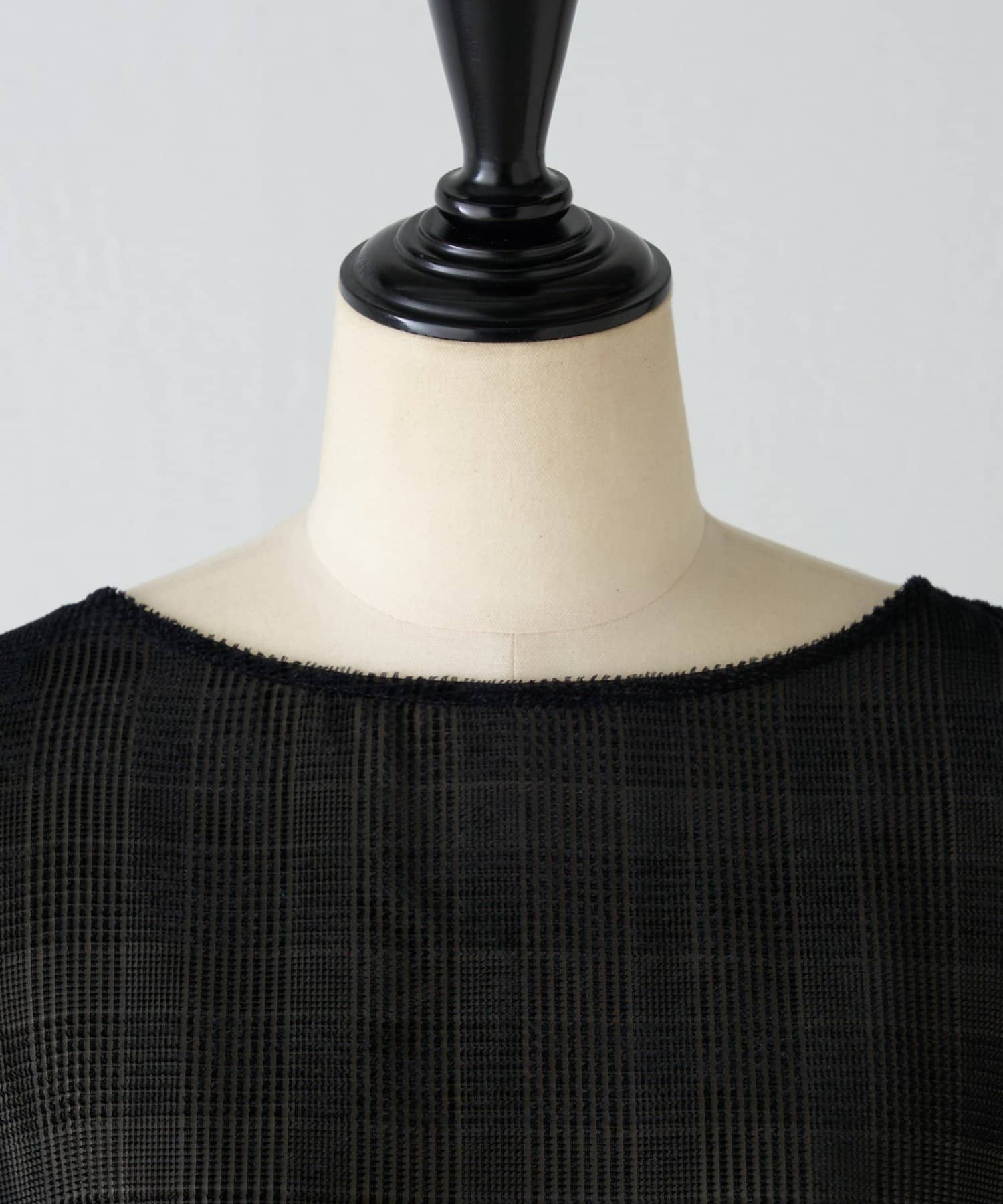 シアー感とベルベットでチェック柄を表現した異素材ミックスが魅力のプルオーバー。
