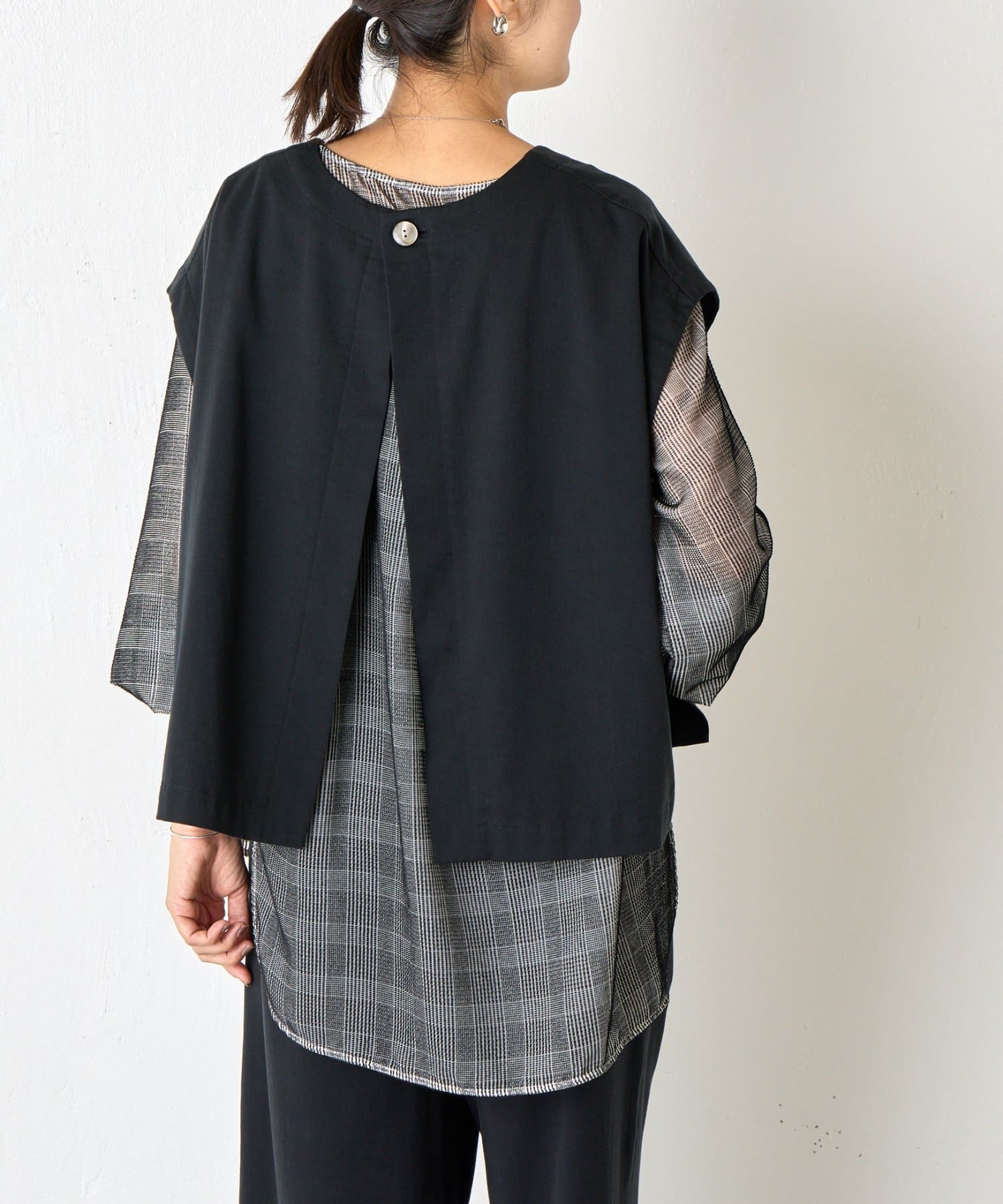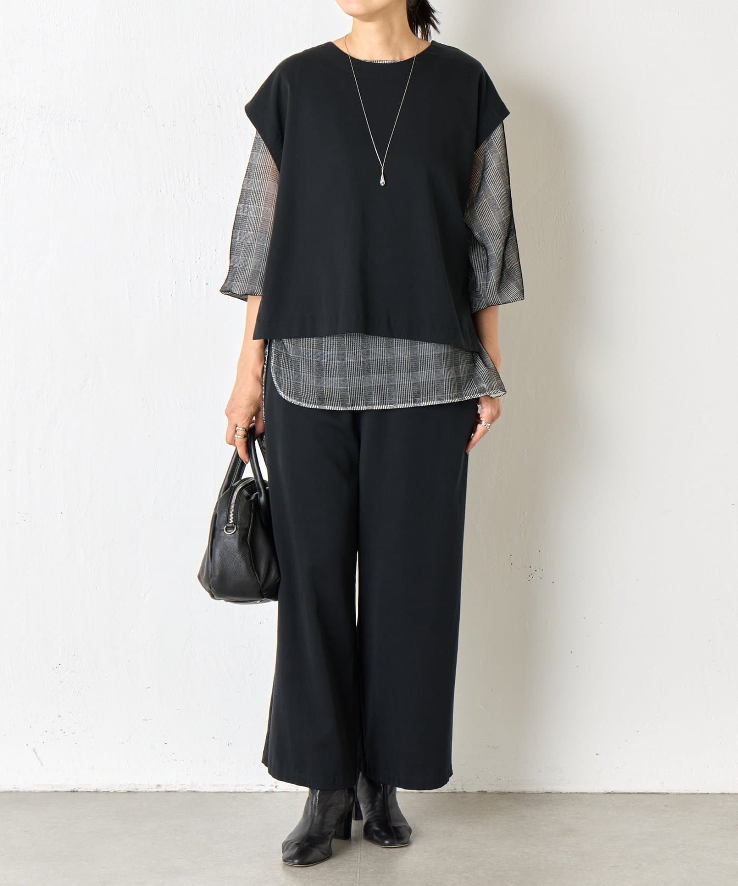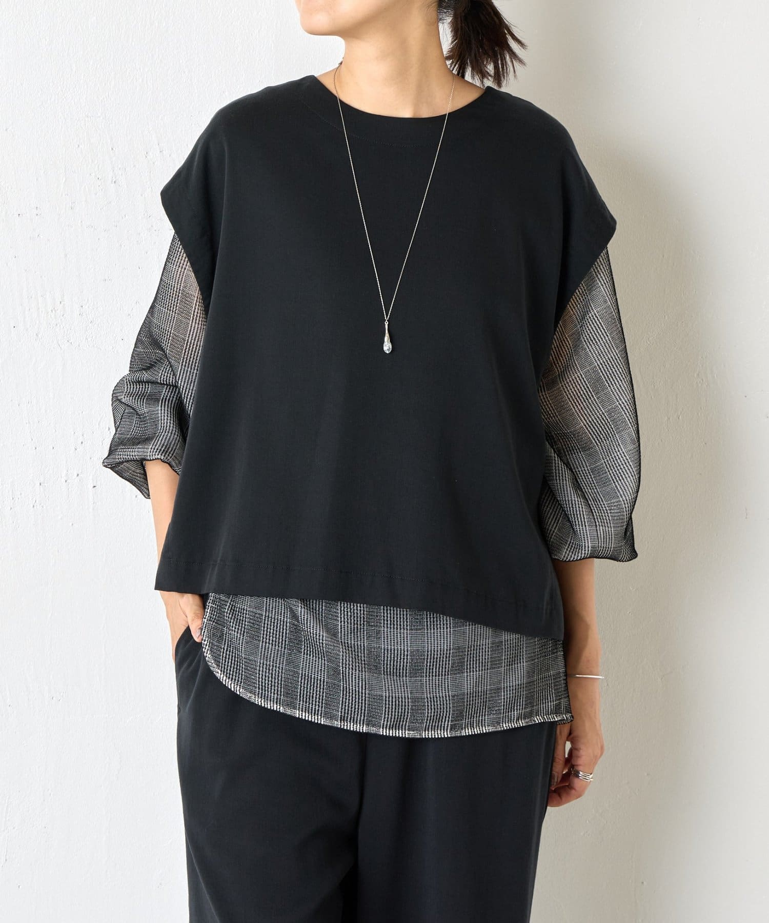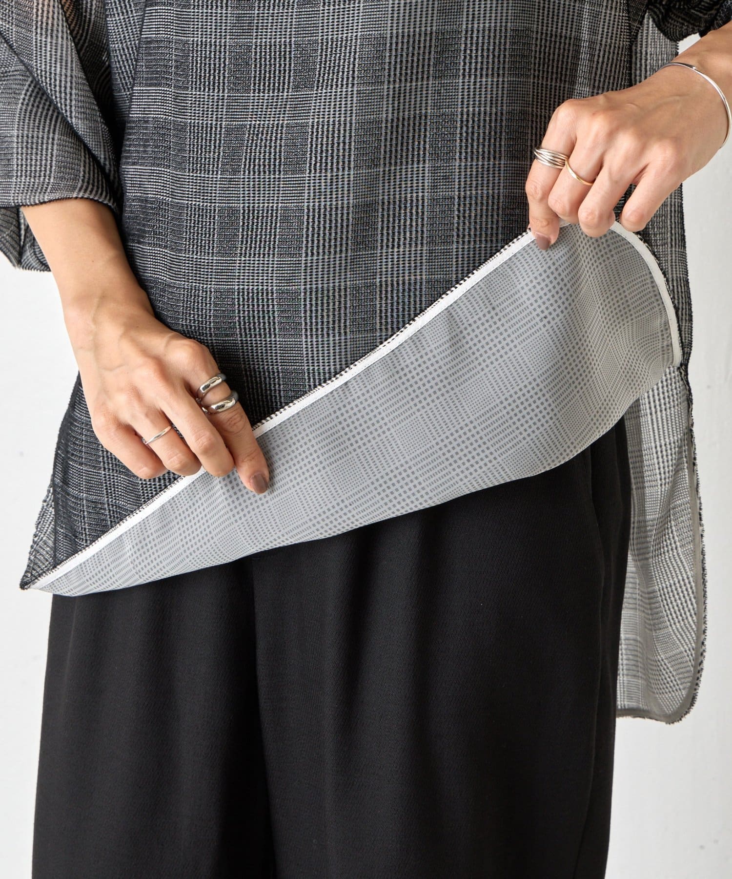 シアー感とベルベットでチェック柄を表現した異素材ミックスが魅力のプルオーバー。