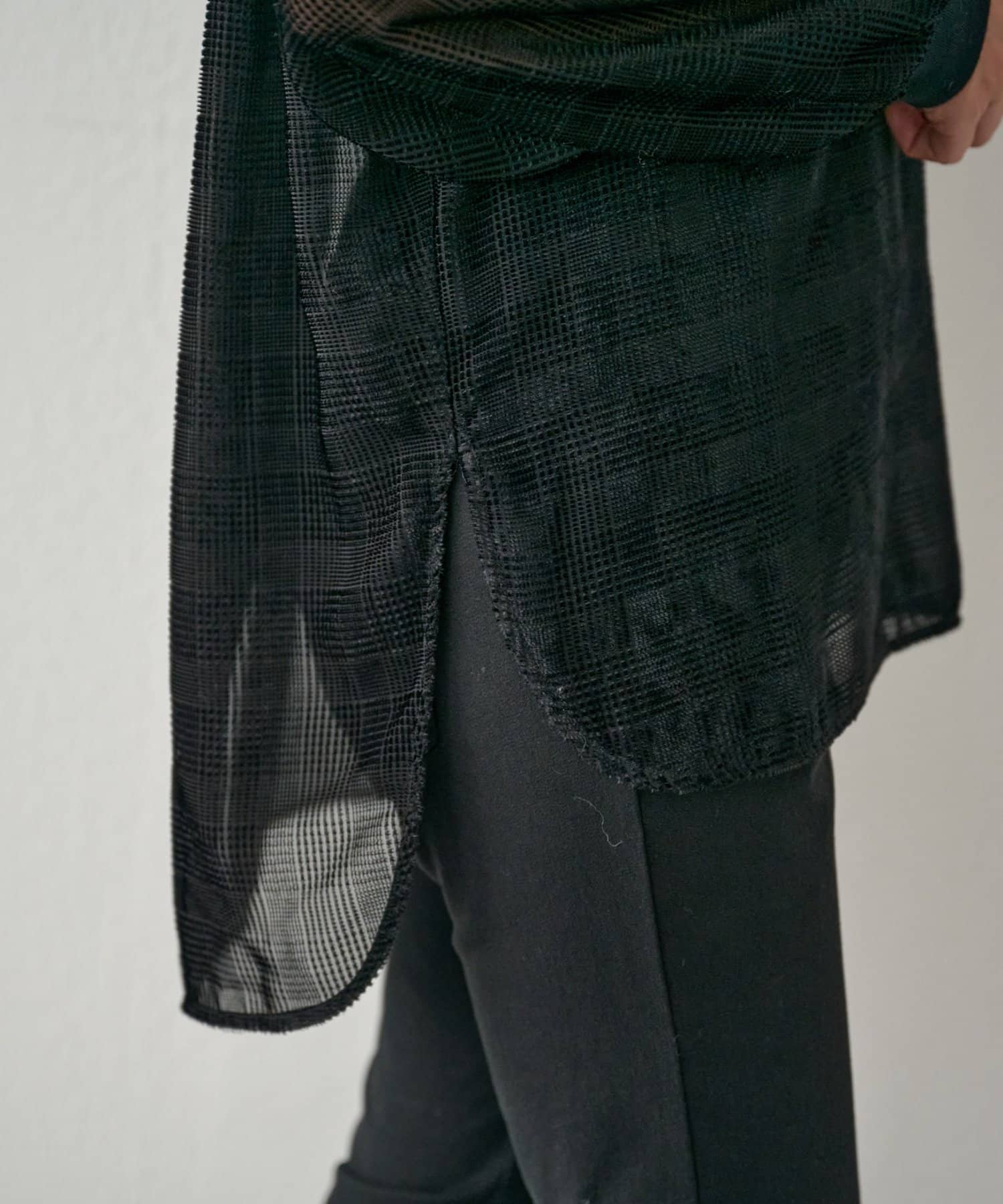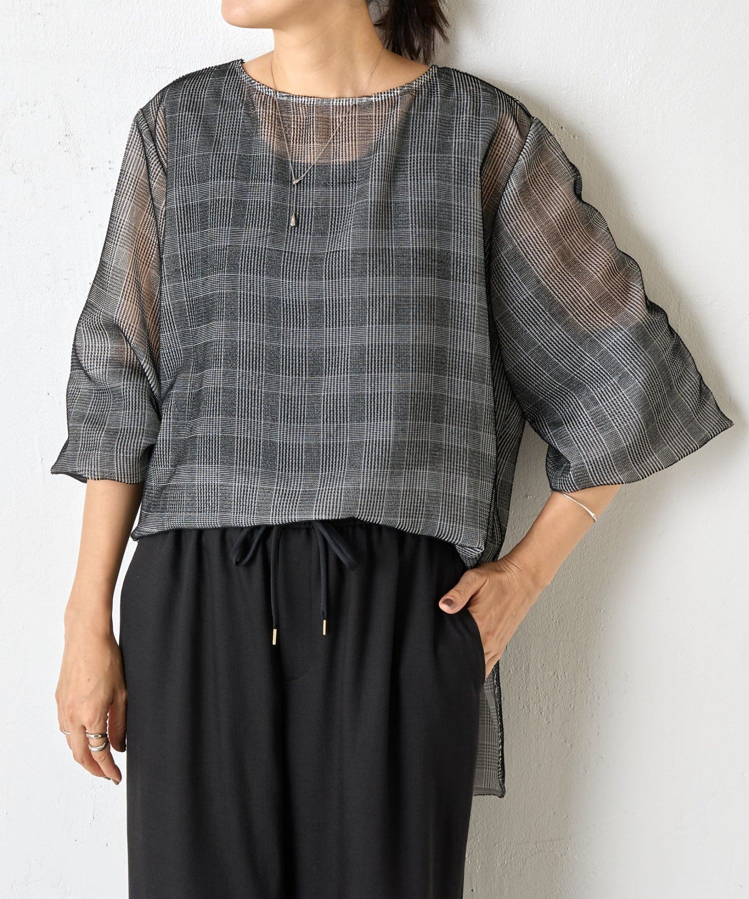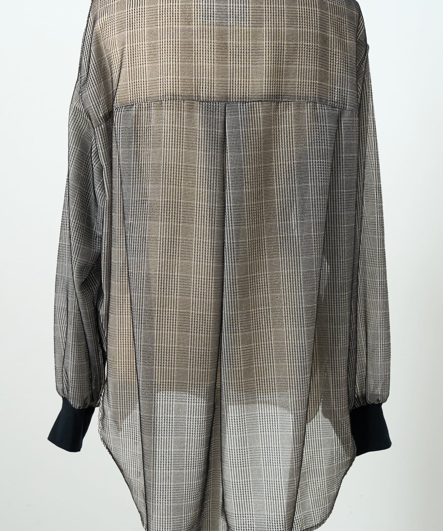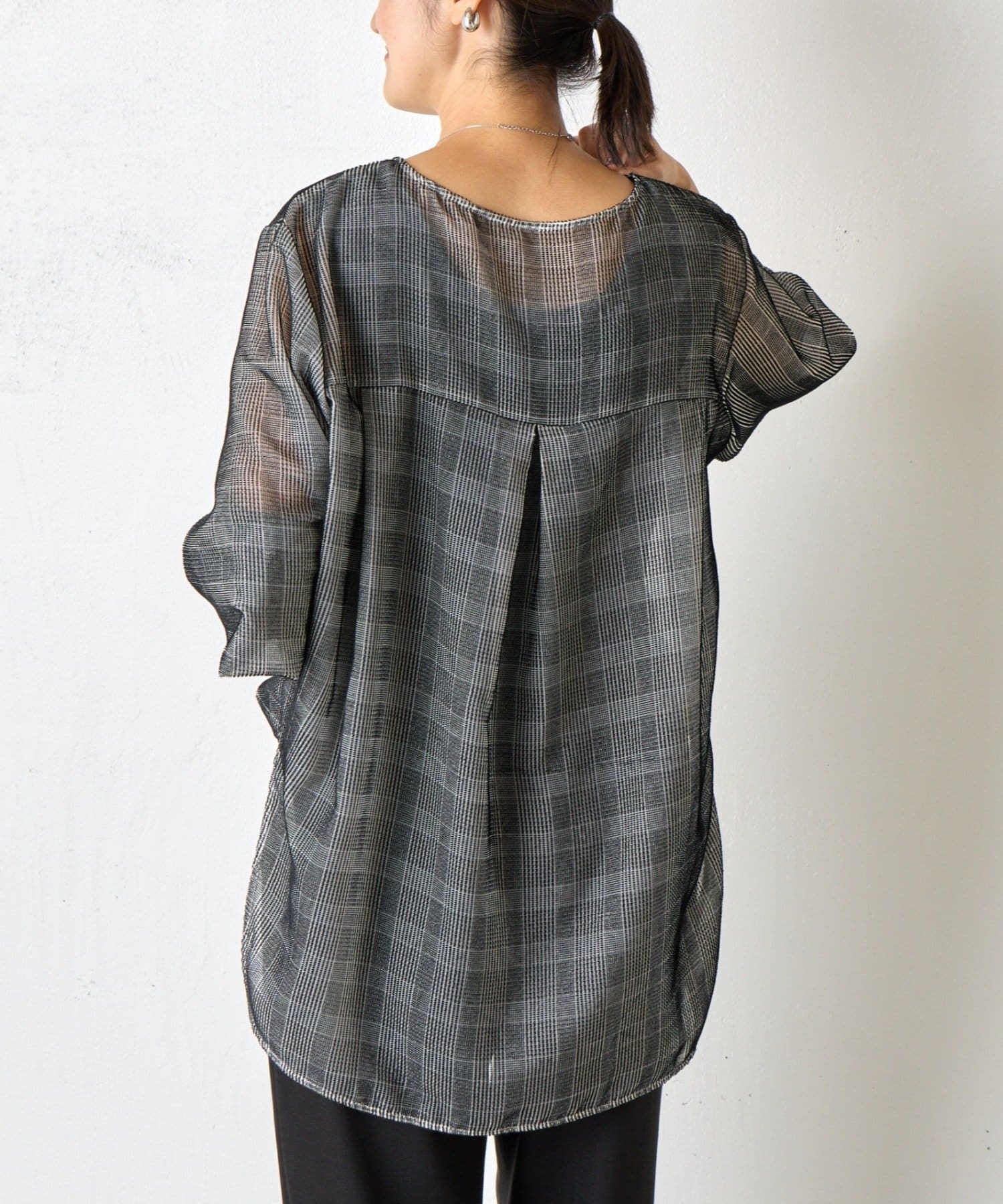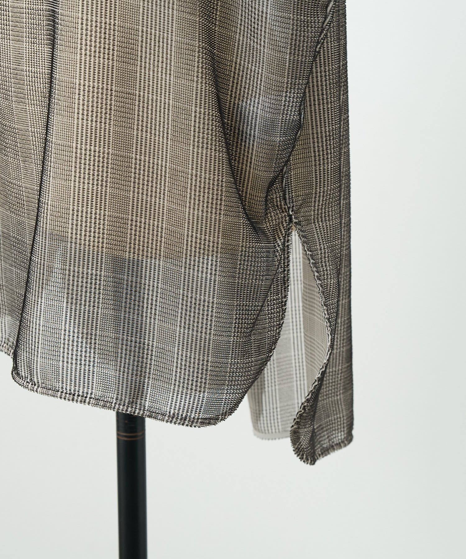 上品な透け感のある軽やかなシアー生地で仕立てられており、秋のレイヤードスタイルにも映える一枚です。