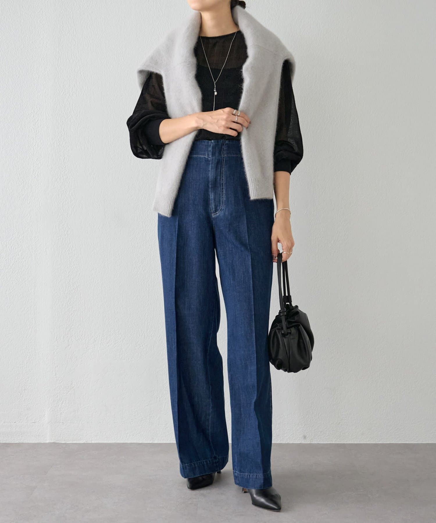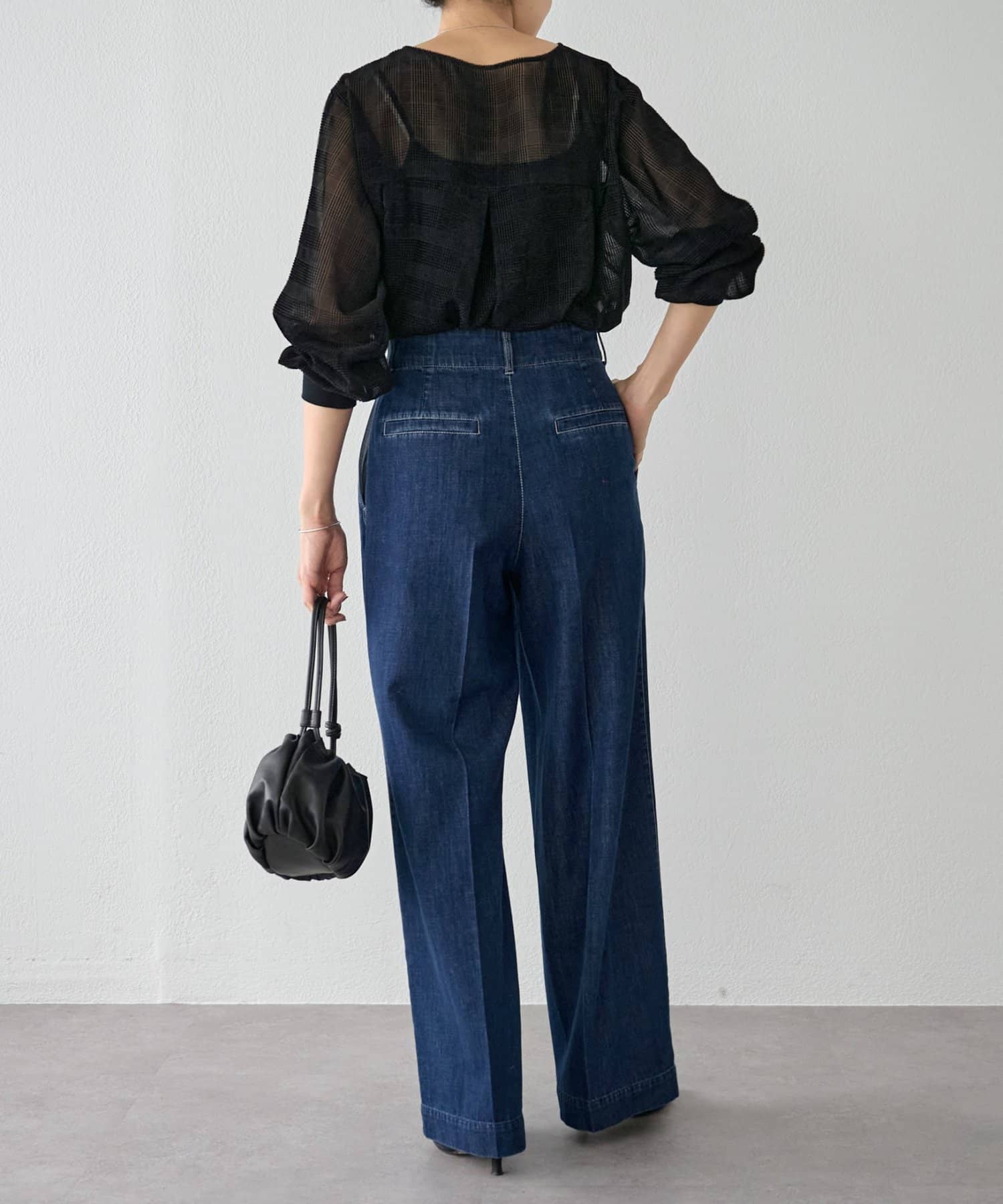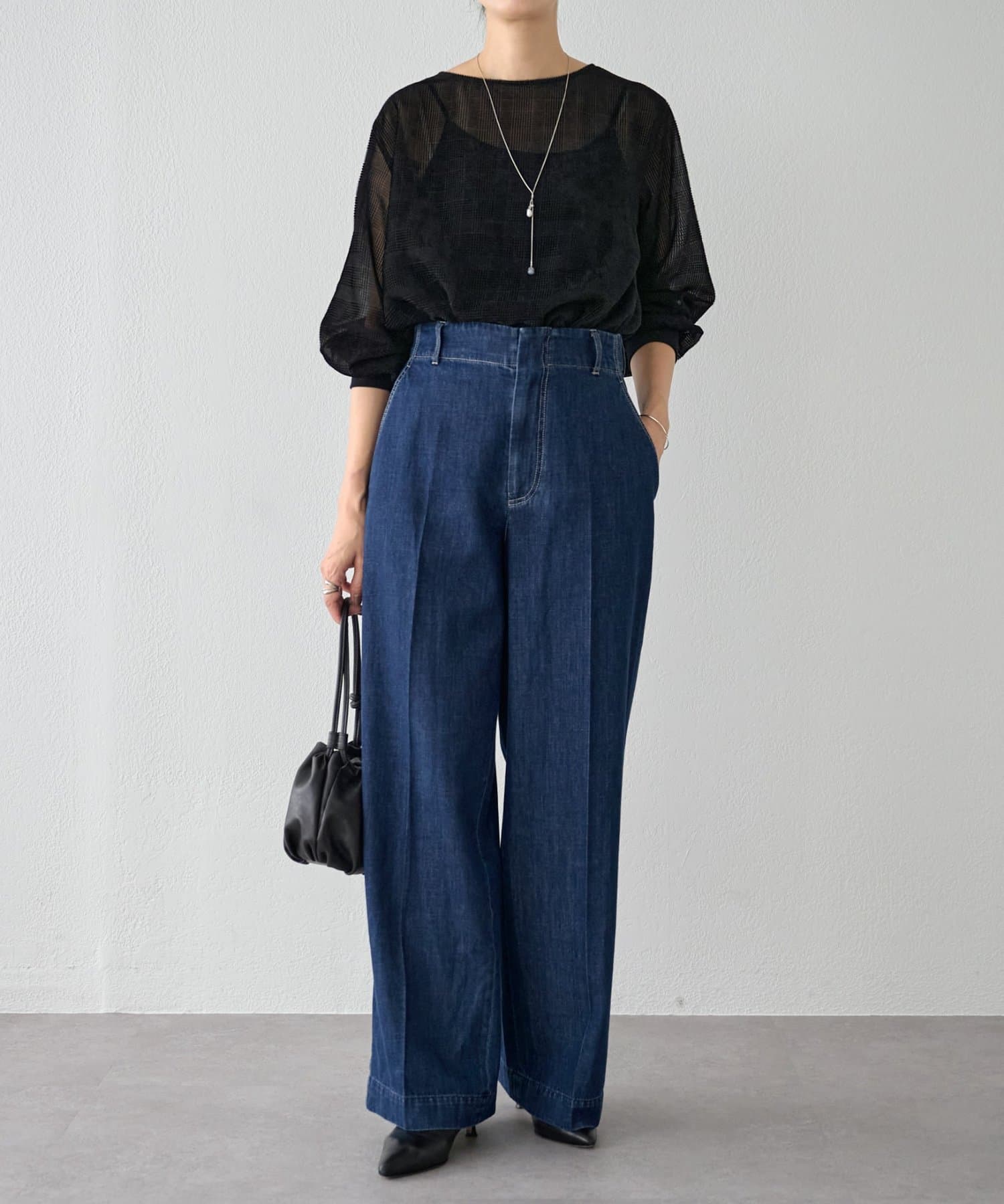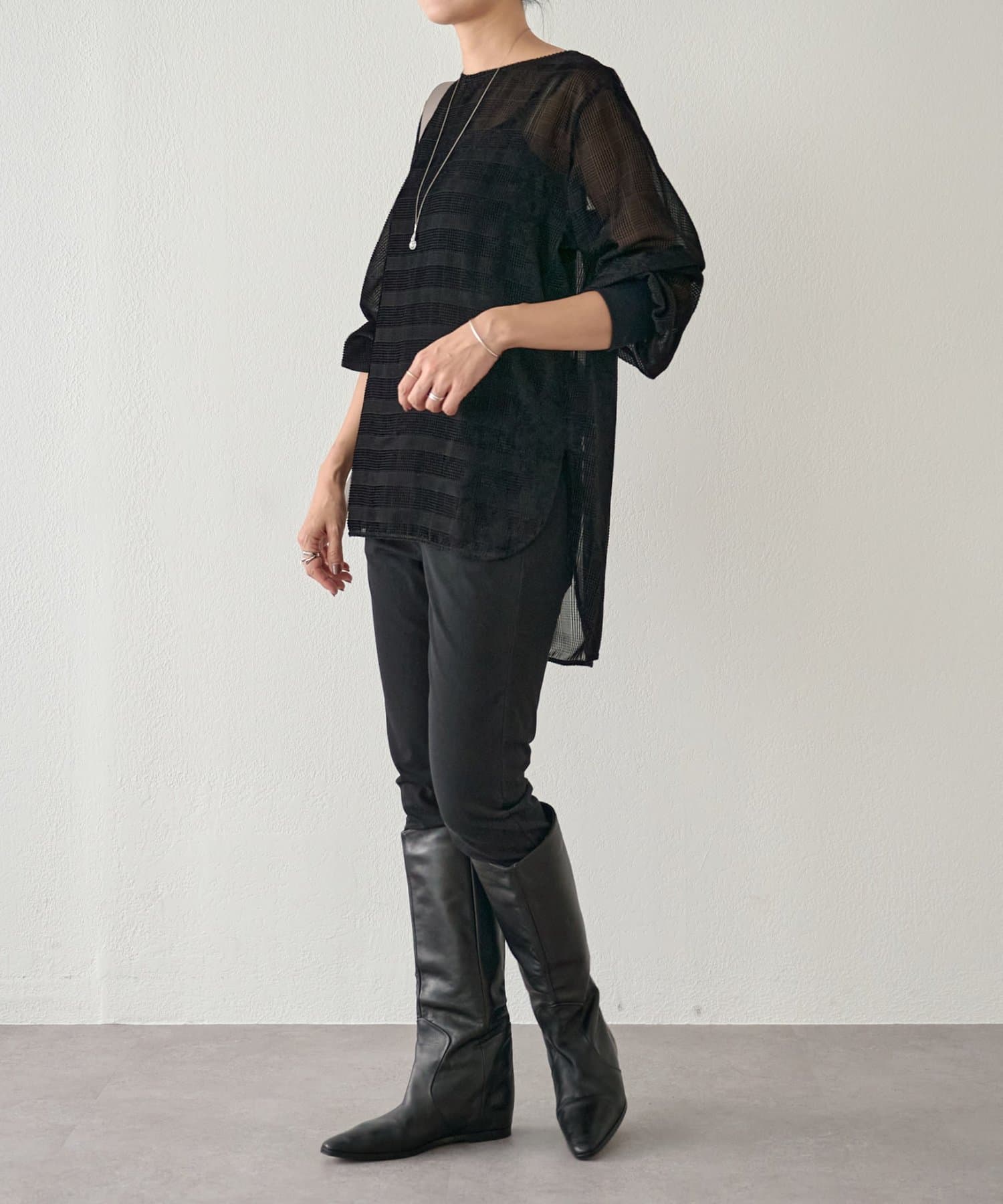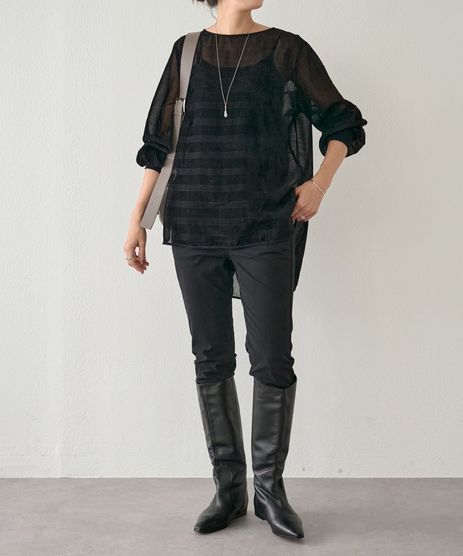 上品な透け感のある軽やかなシアー生地で仕立てられており、秋のレイヤードスタイルにも映える一枚です。