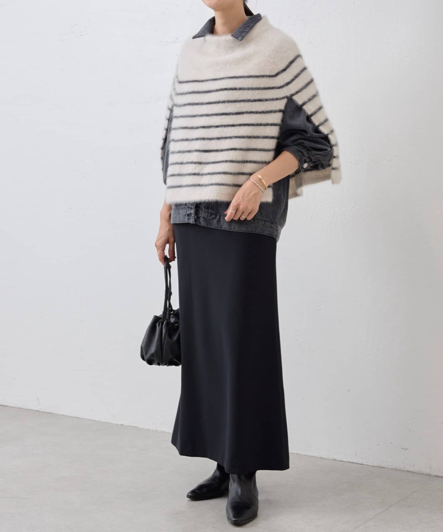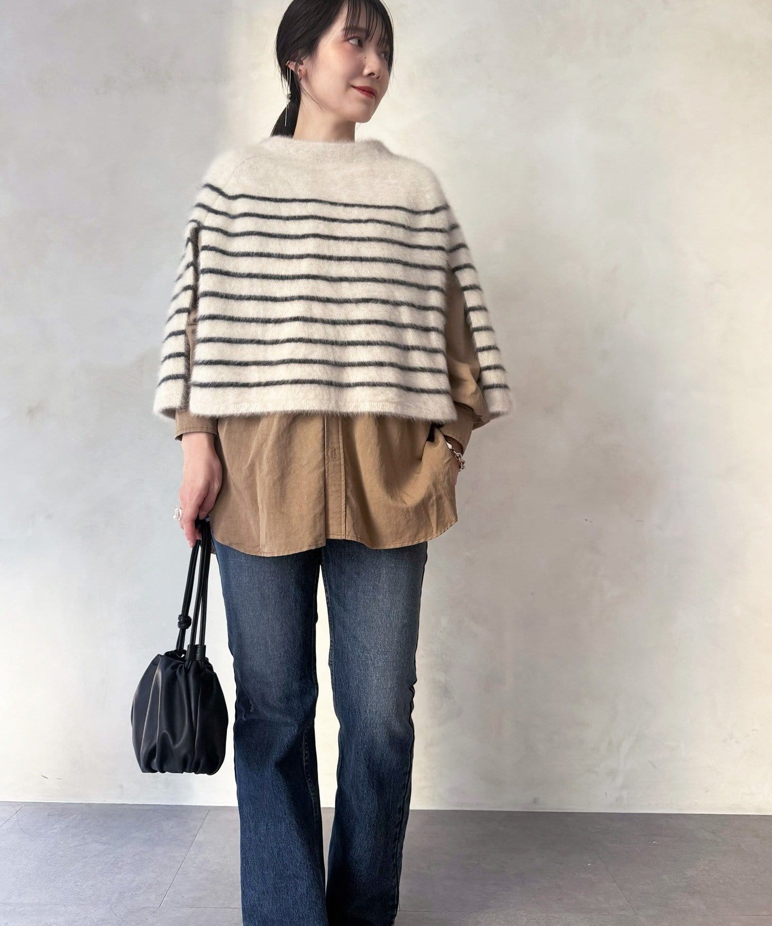 ストールのような手軽さと、ニットならではのぬくもりを備えた、大人のための軽やかポンチョです。
