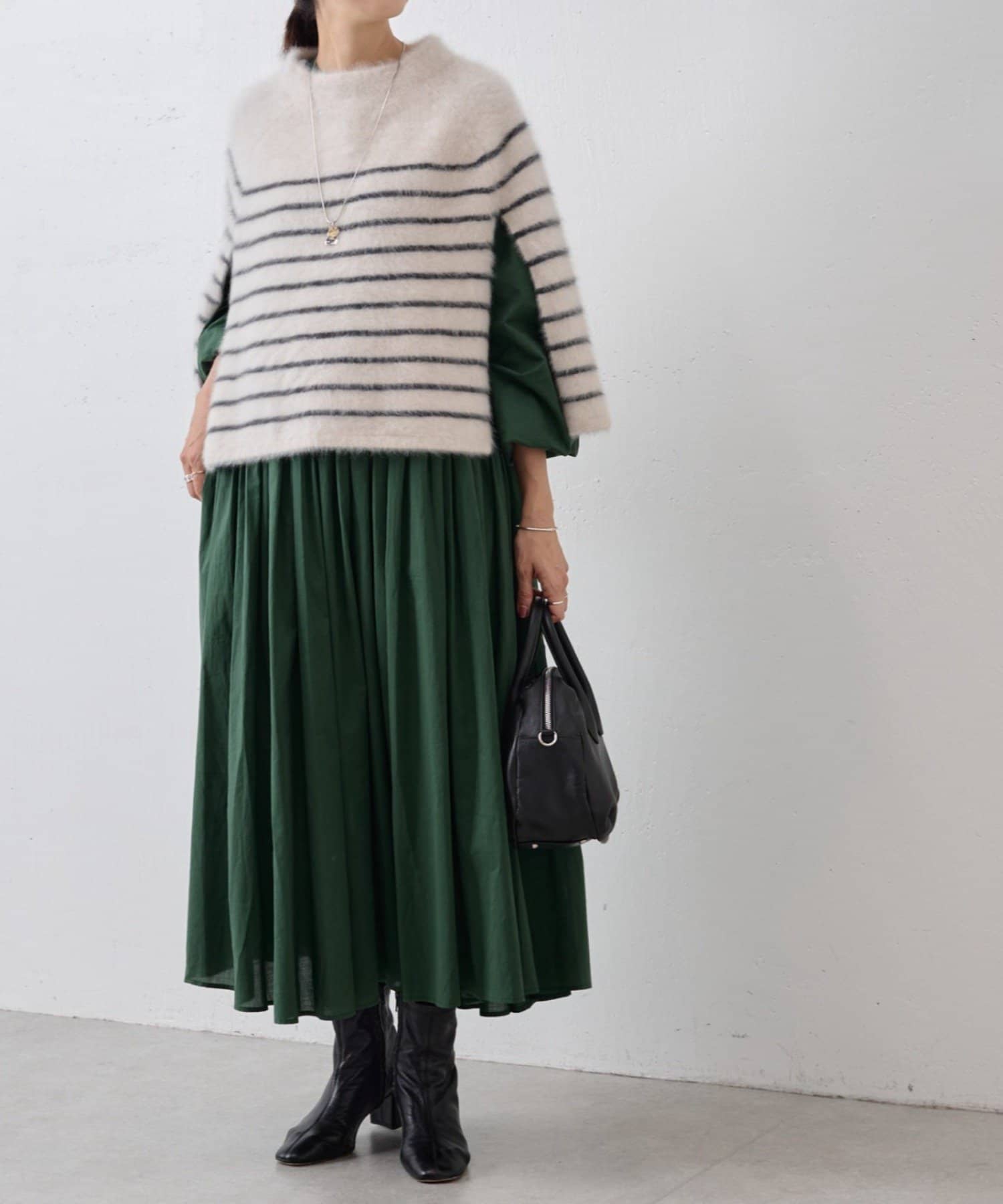 シンプルなトップスやワンピースに合わせれば、ぐっと上品な印象に。