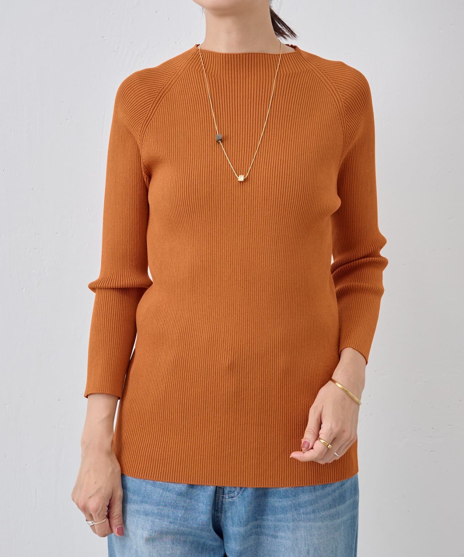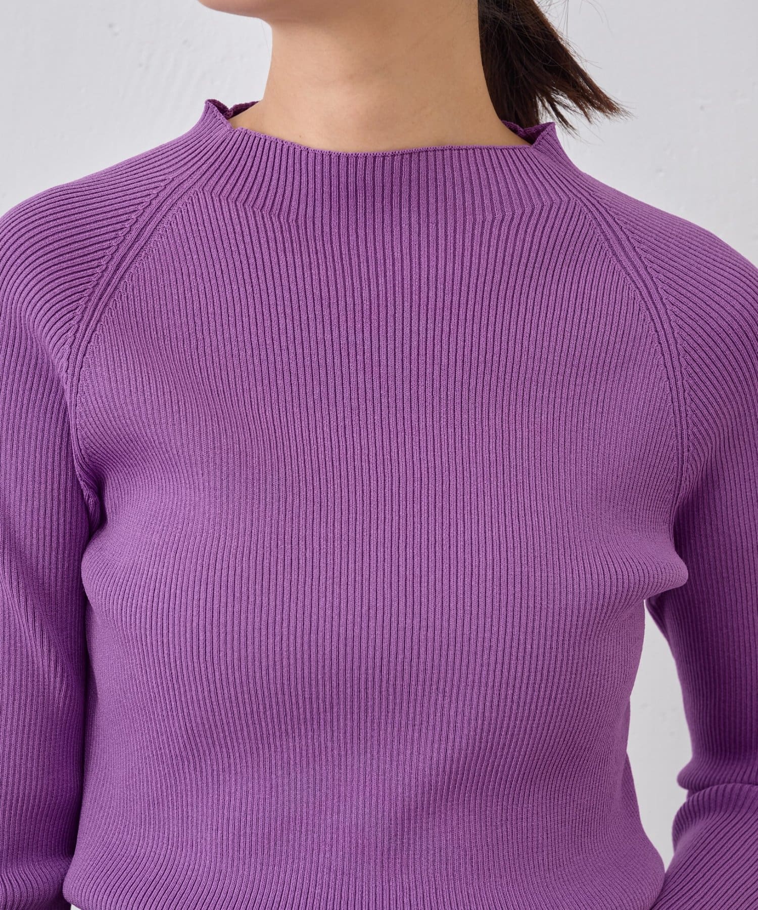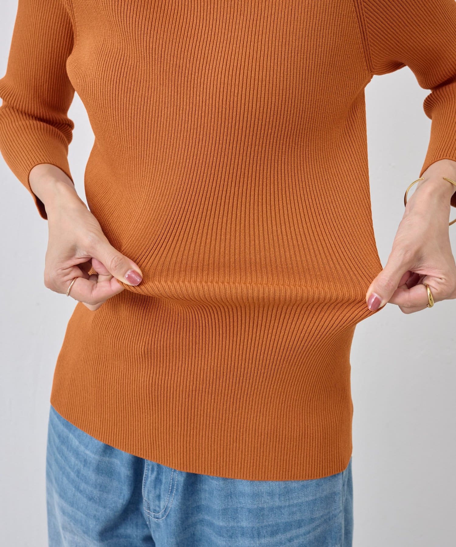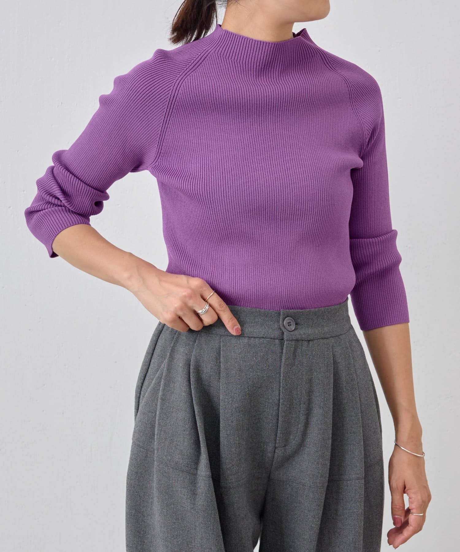 身体にほどよくフィットする細めのリブ編みが、すっきりとしたシルエットを演出するハイネックニット。