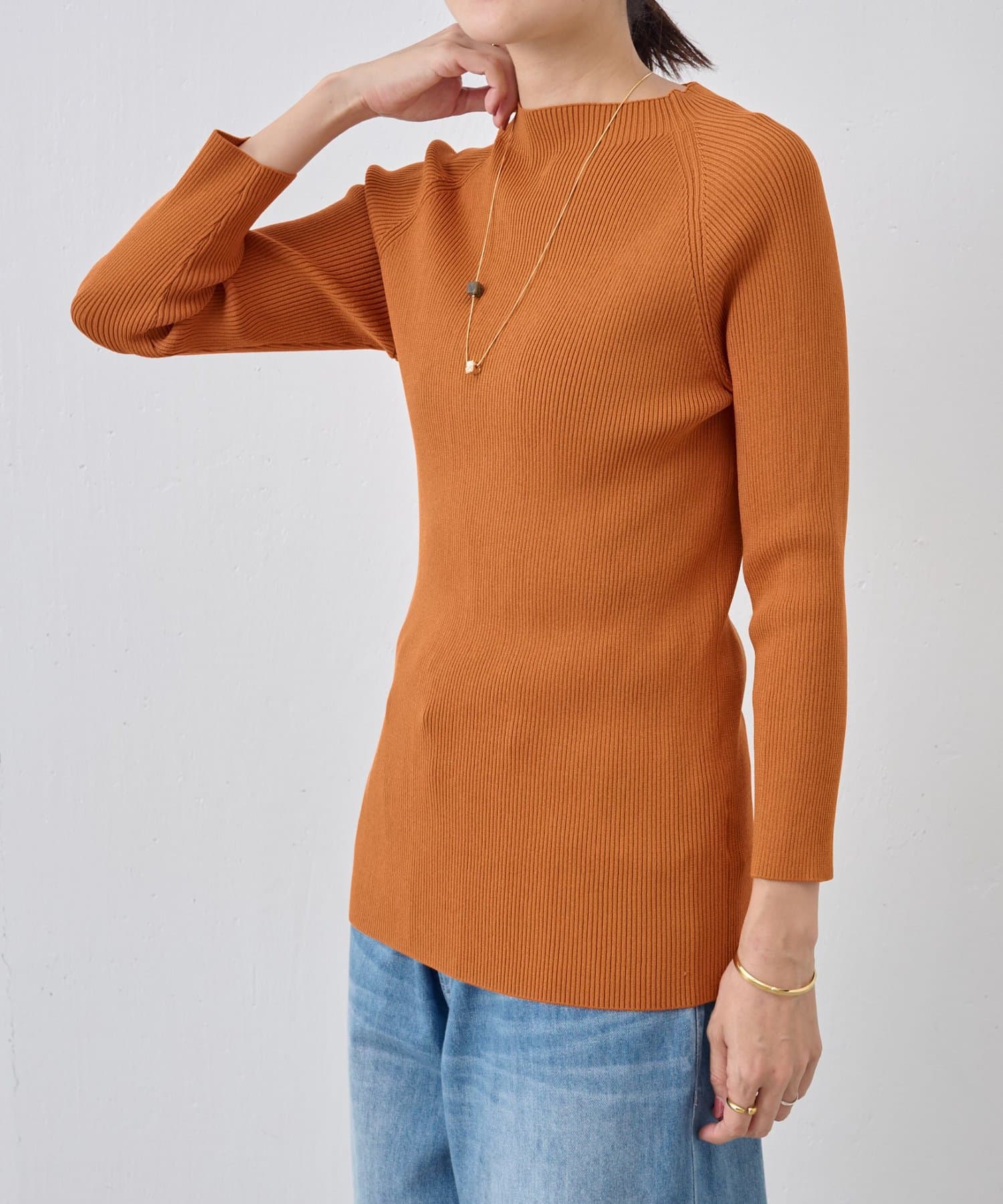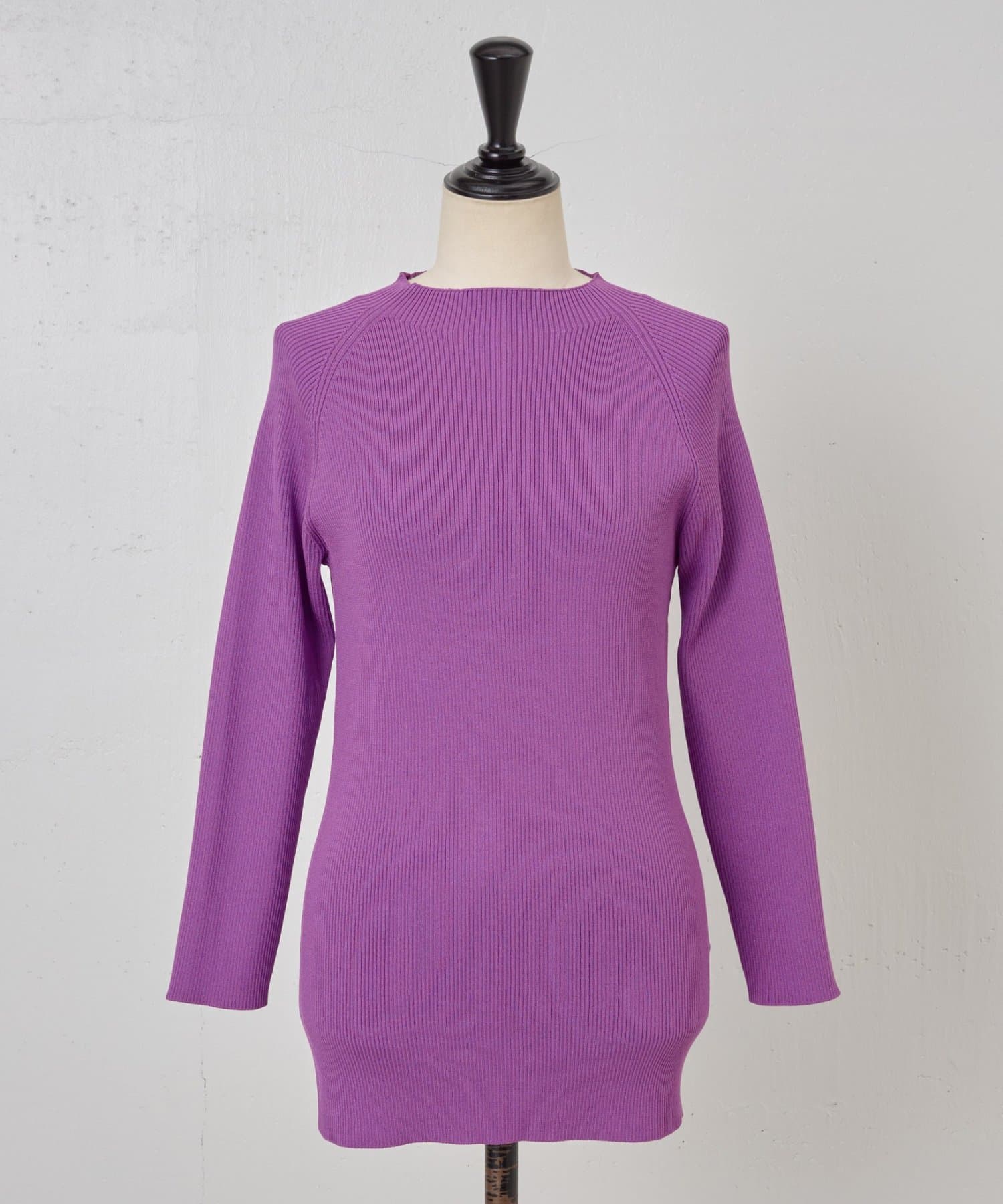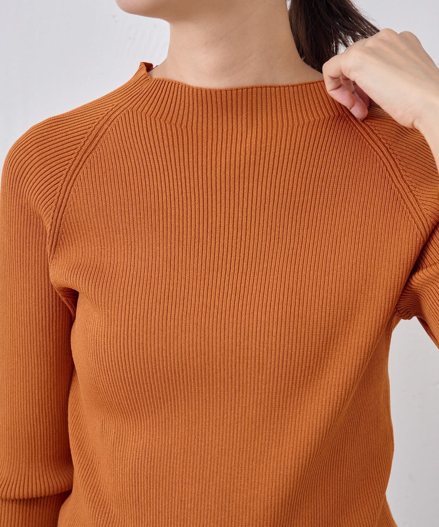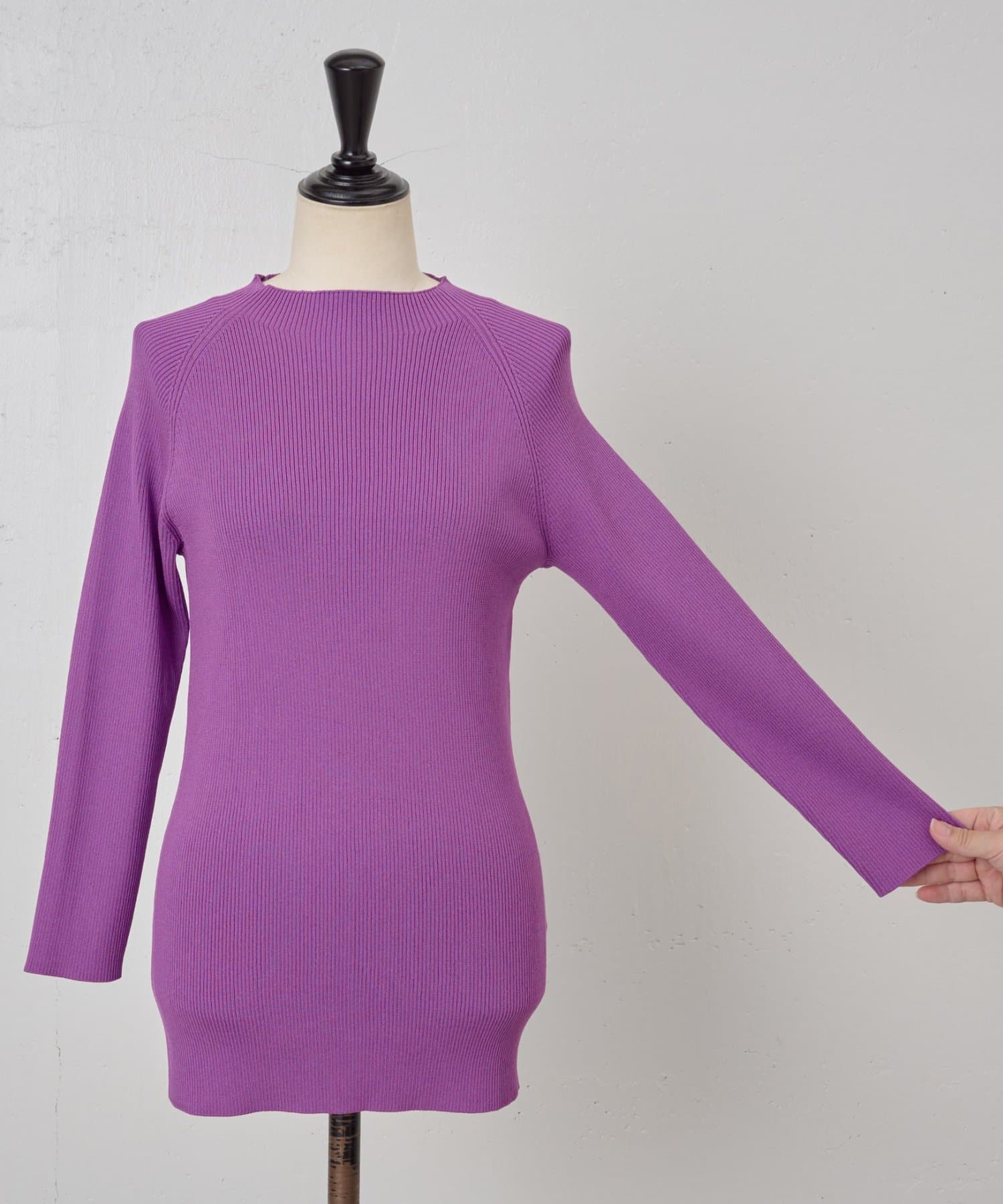 身体にほどよくフィットする細めのリブ編みが、すっきりとしたシルエットを演出するハイネックニット。