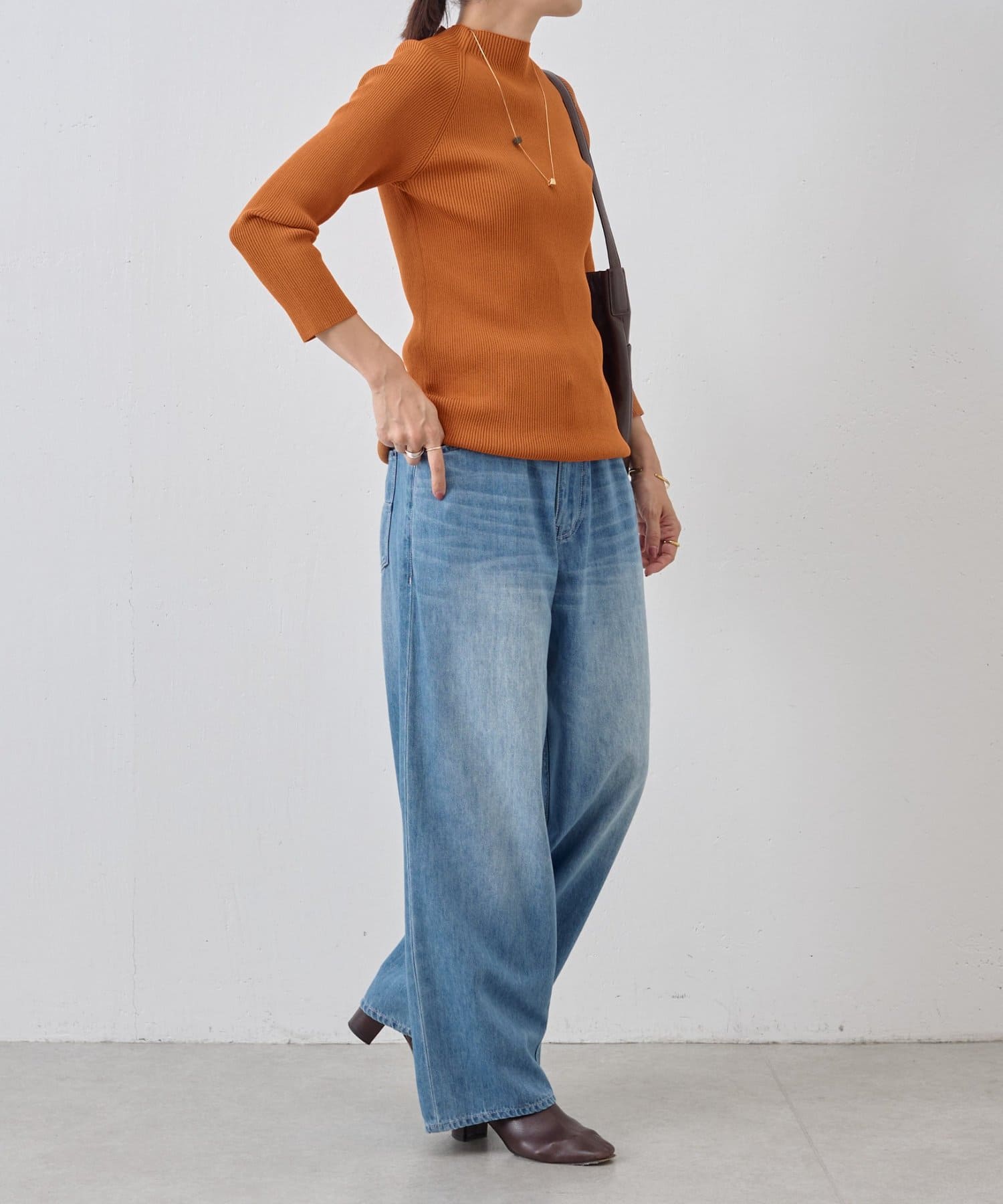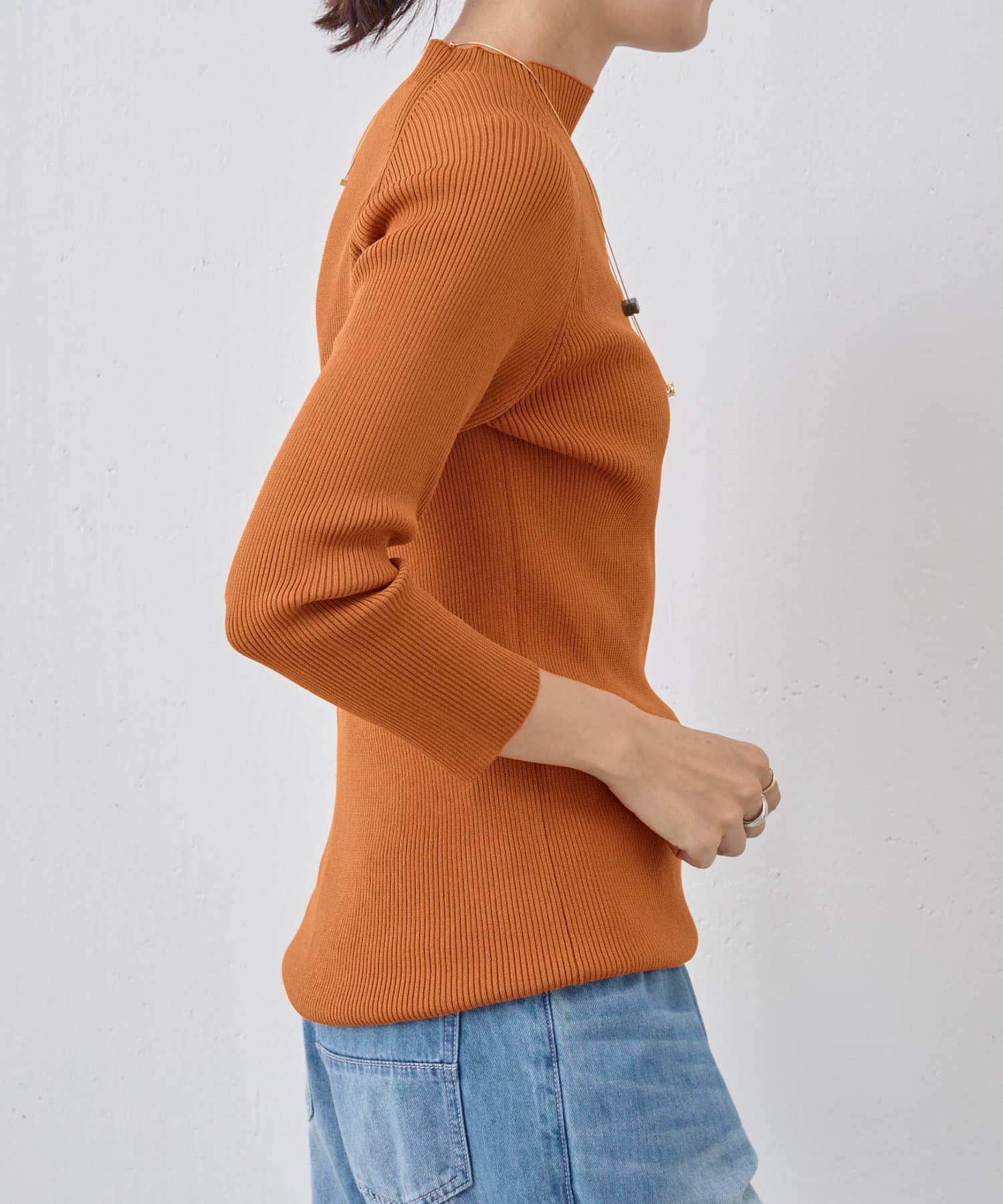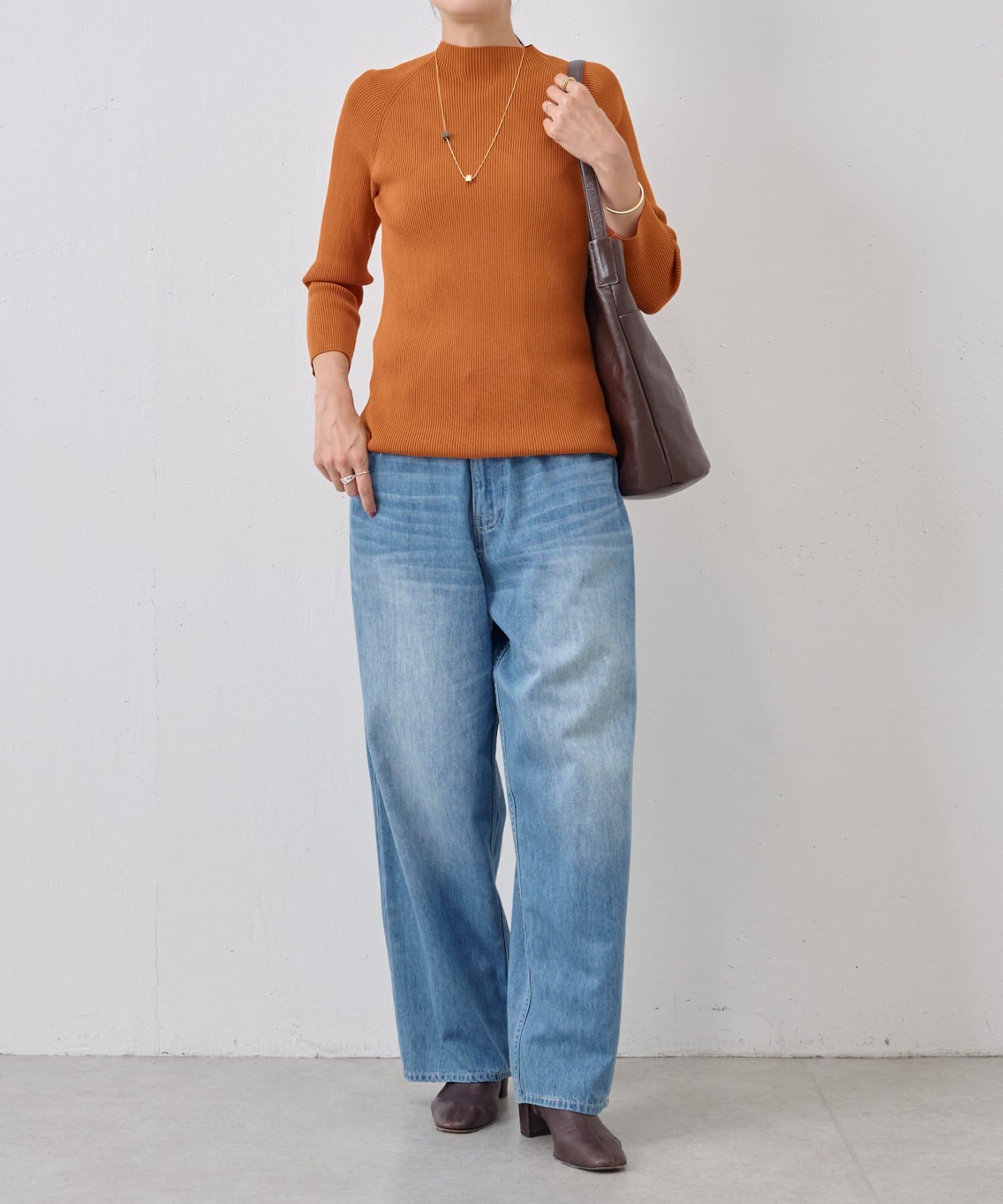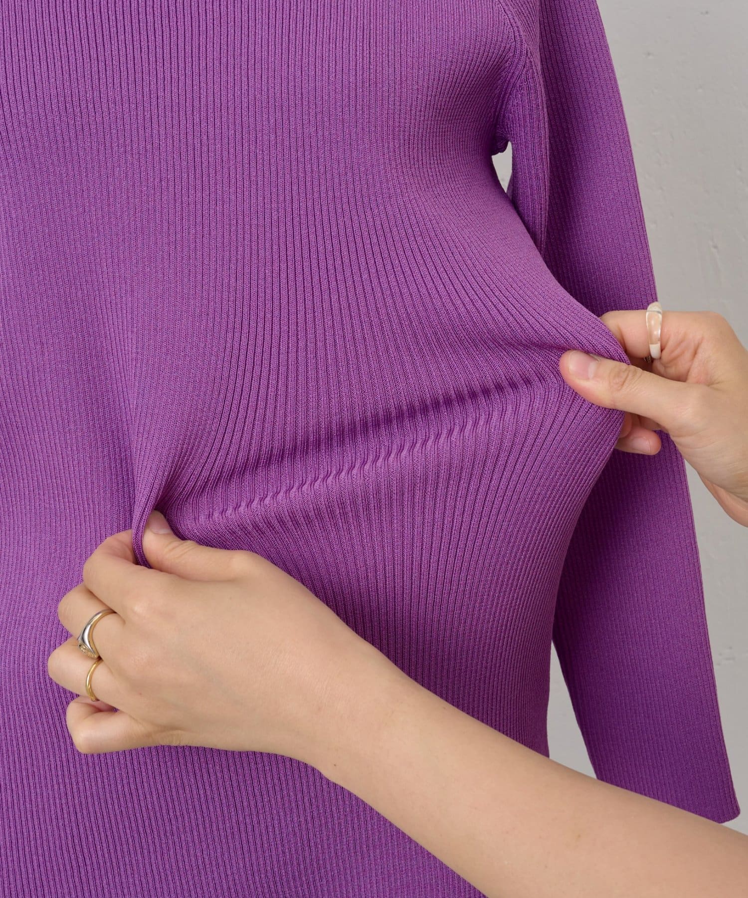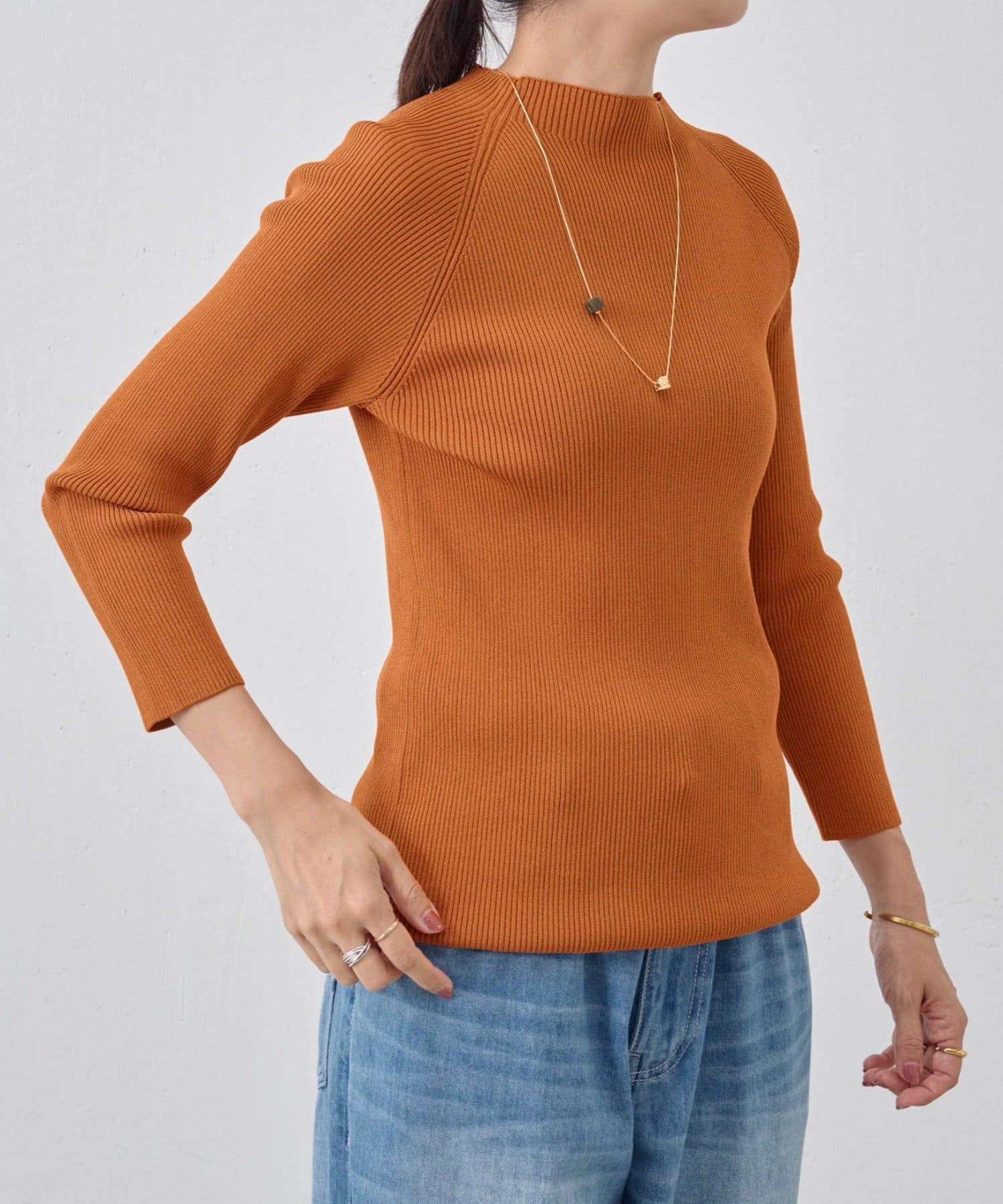 身体にほどよくフィットする細めのリブ編みが、すっきりとしたシルエットを演出するハイネックニット。