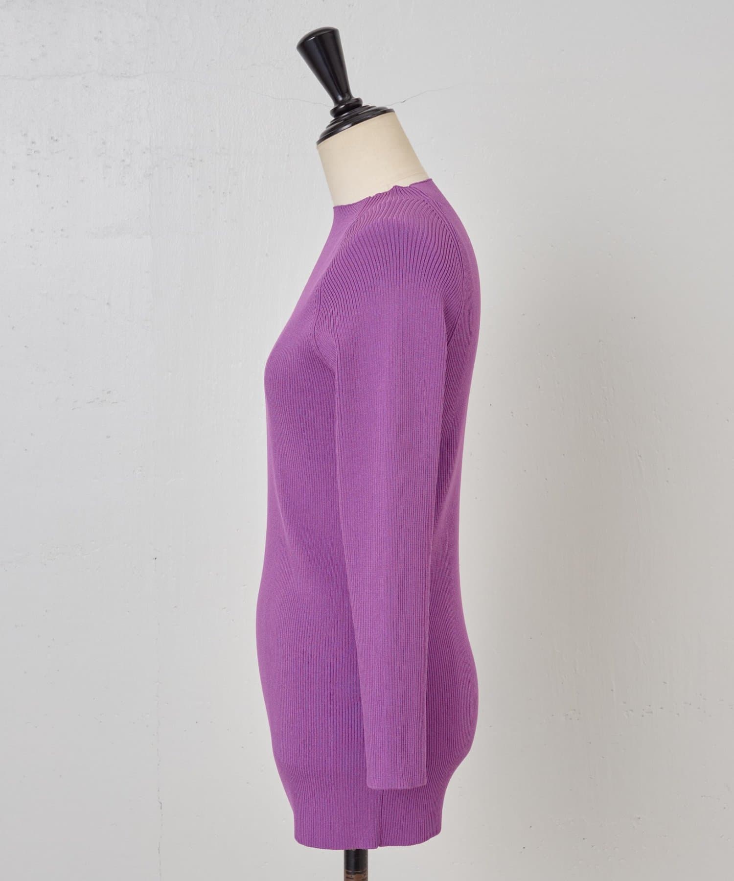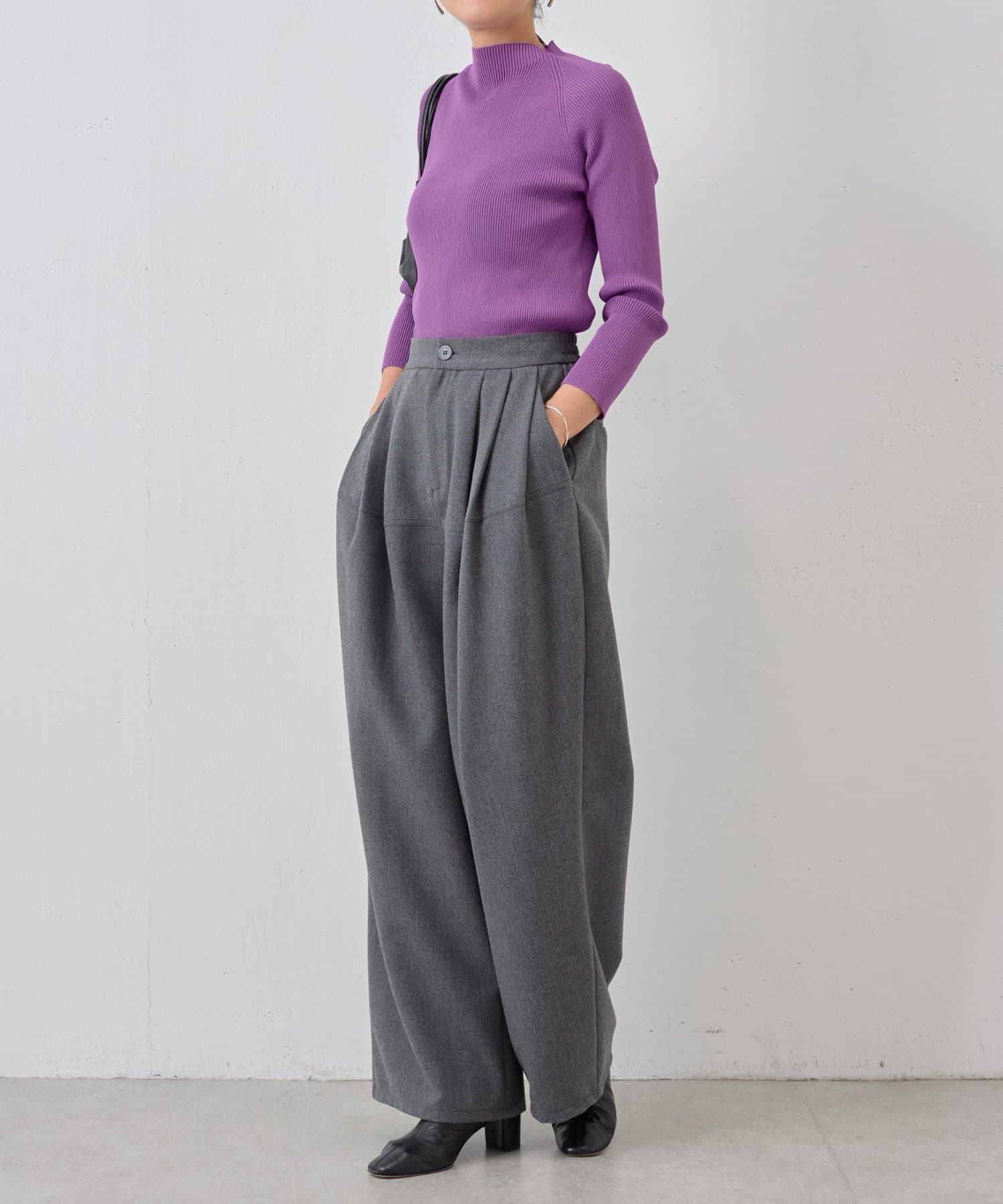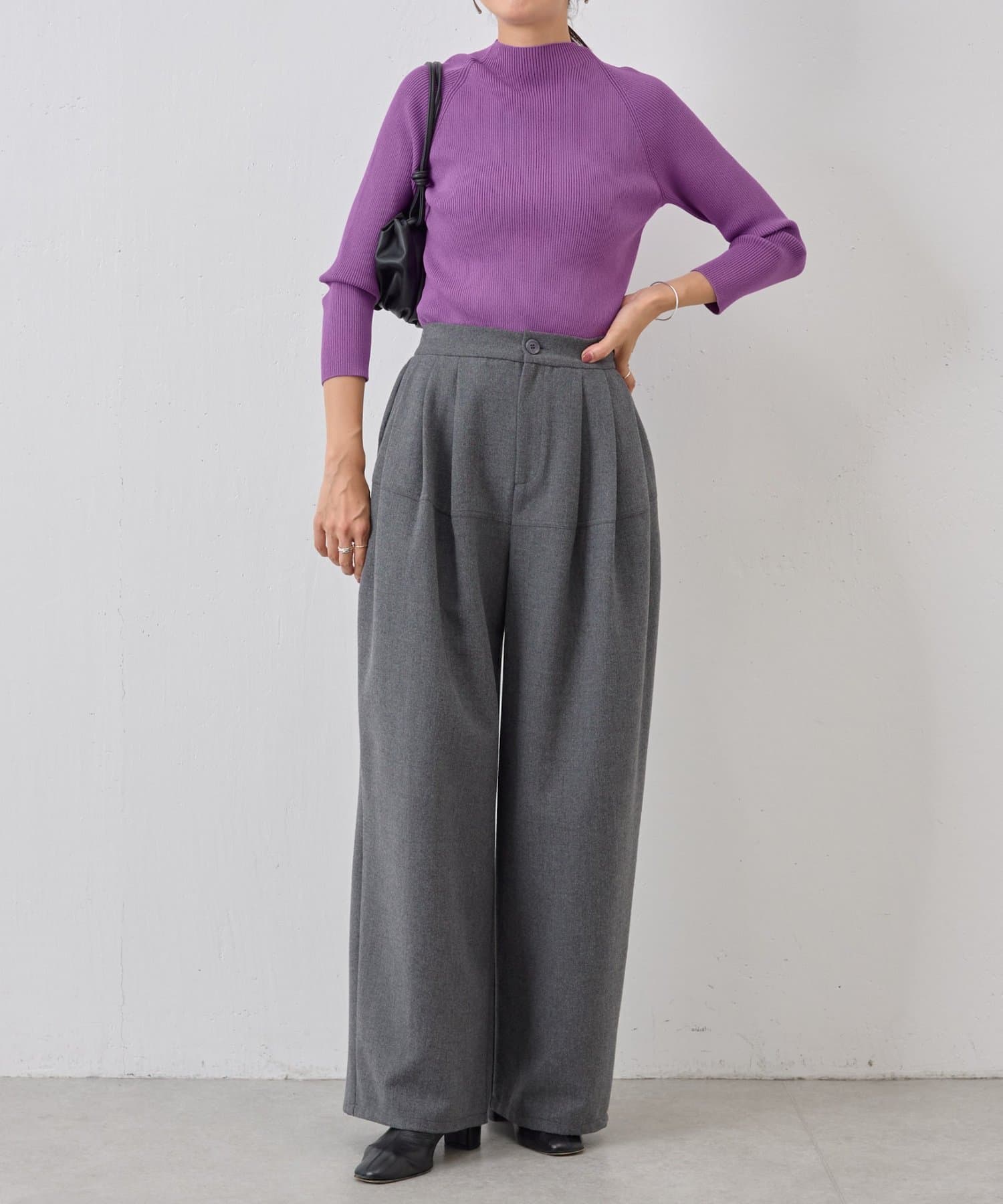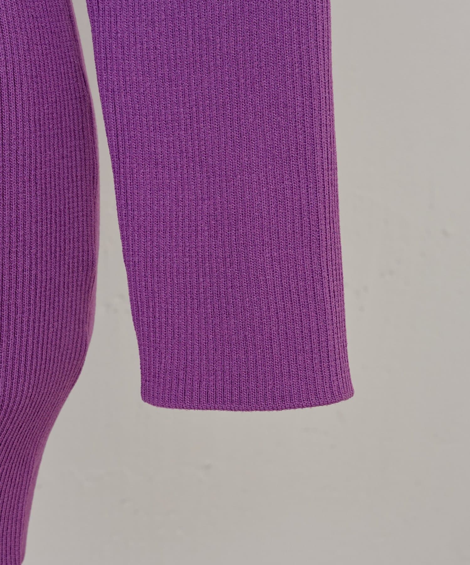 身体にほどよくフィットする細めのリブ編みが、すっきりとしたシルエットを演出するハイネックニット。