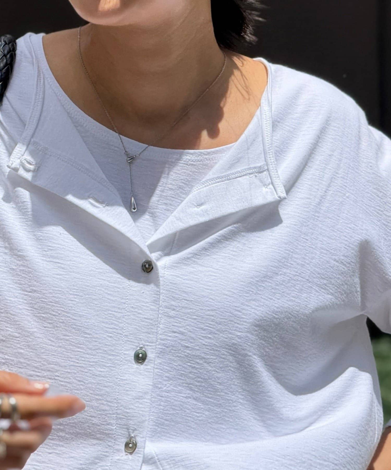 くしゅっとたくし上げた袖や、さっと羽織れるラフさが、大人の余裕を感じさせる仕上がりです。