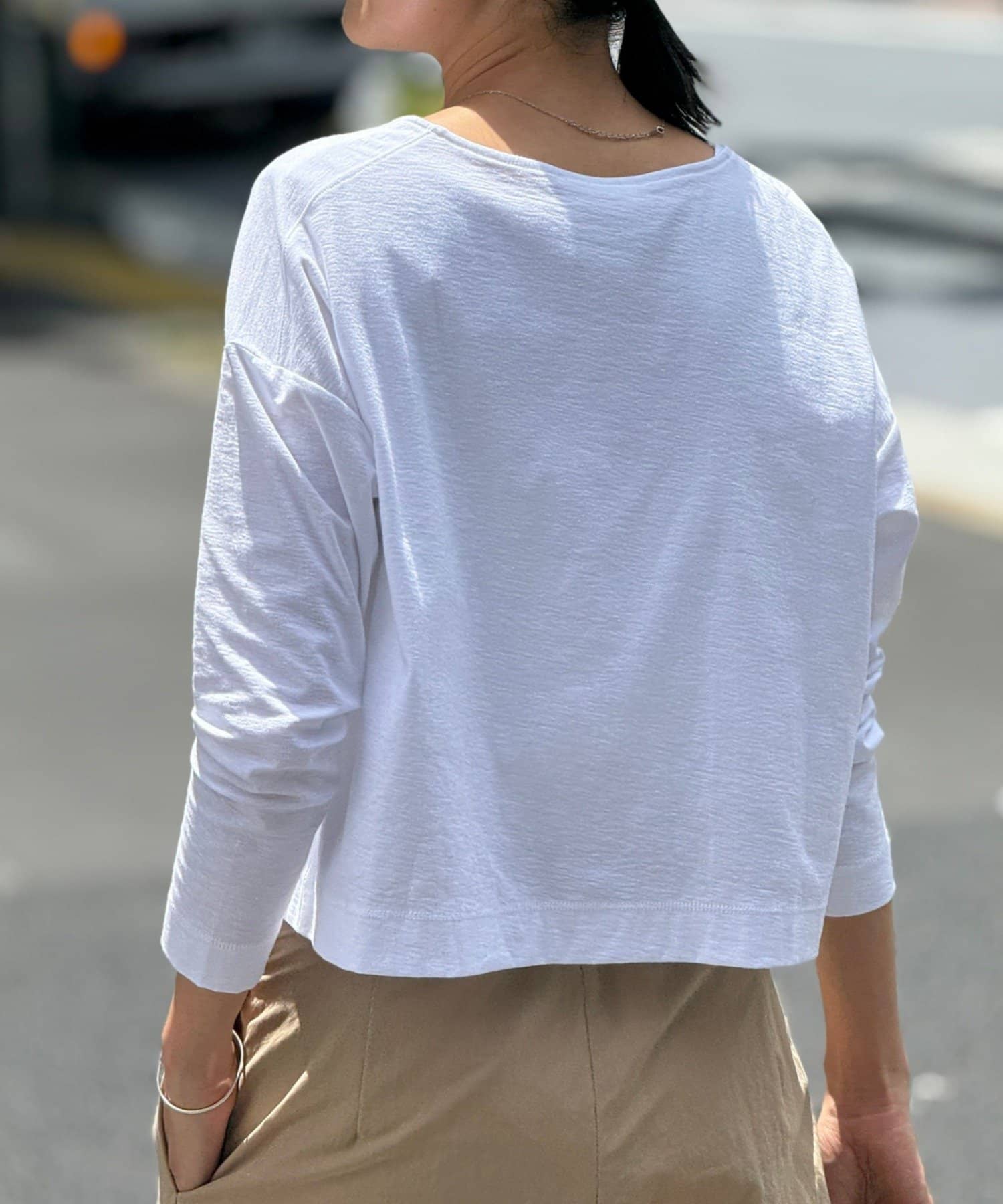 肌にまとわりつきにくく、通気性もあるので、汗ばむ季節にもさらっと快適な着心地です。