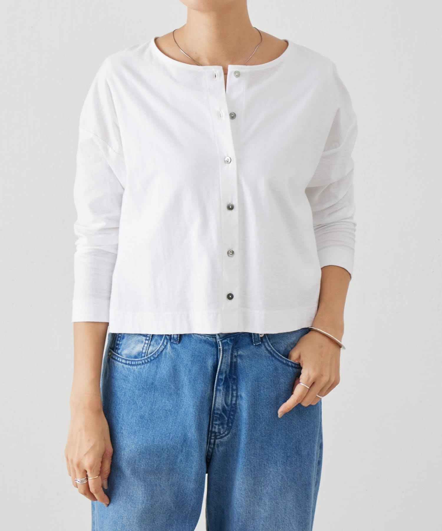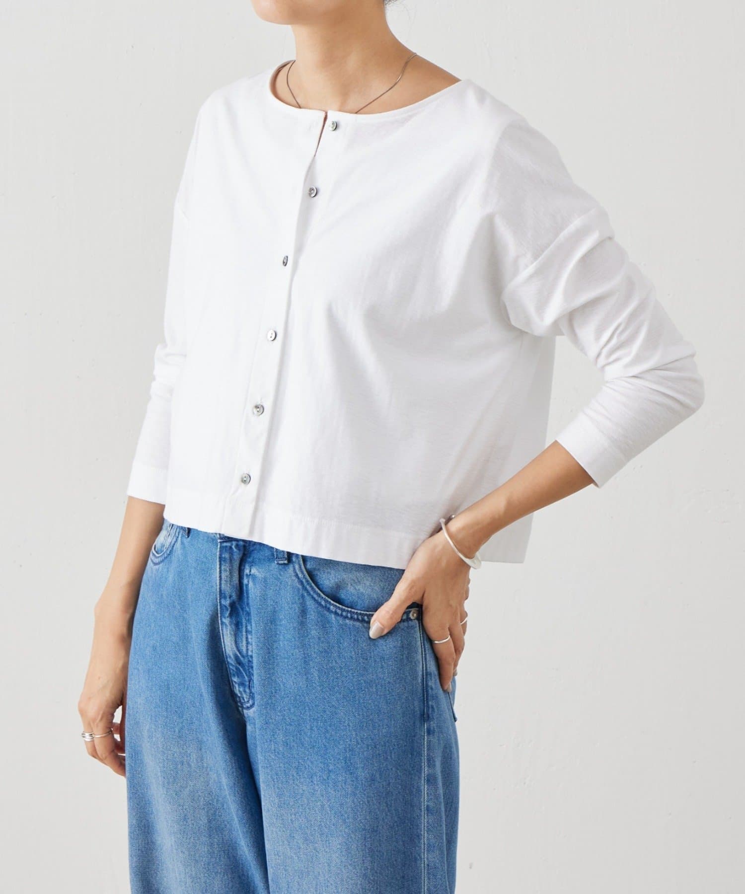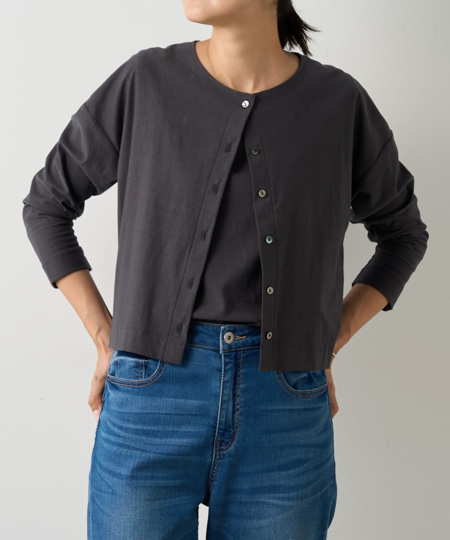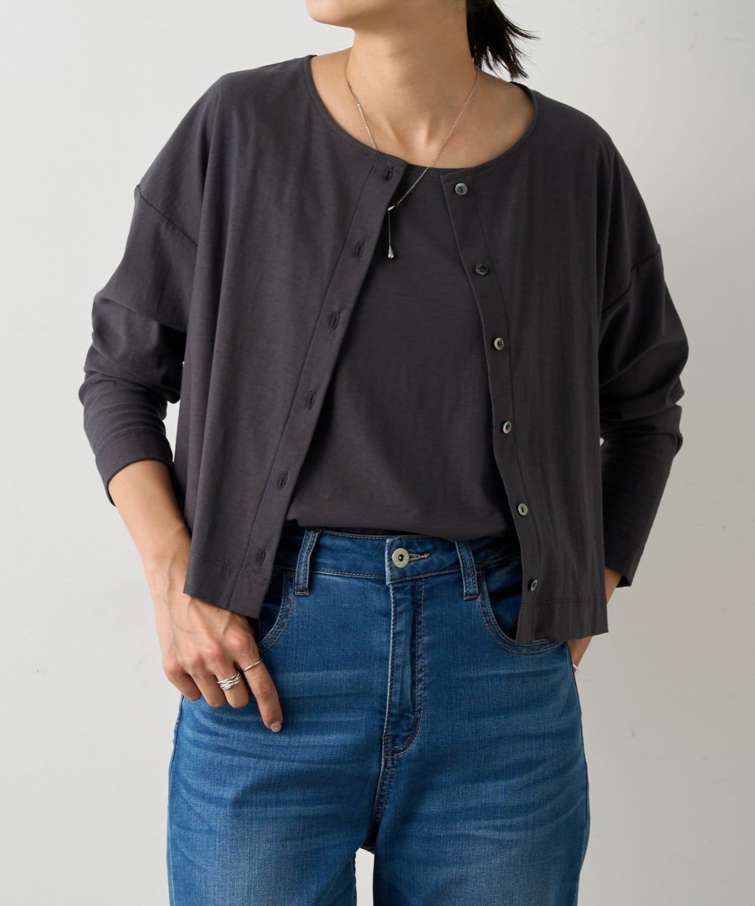 程よいラフさが魅力のコットンスラブ素材で仕立てた、軽やかなショートカーディガン。