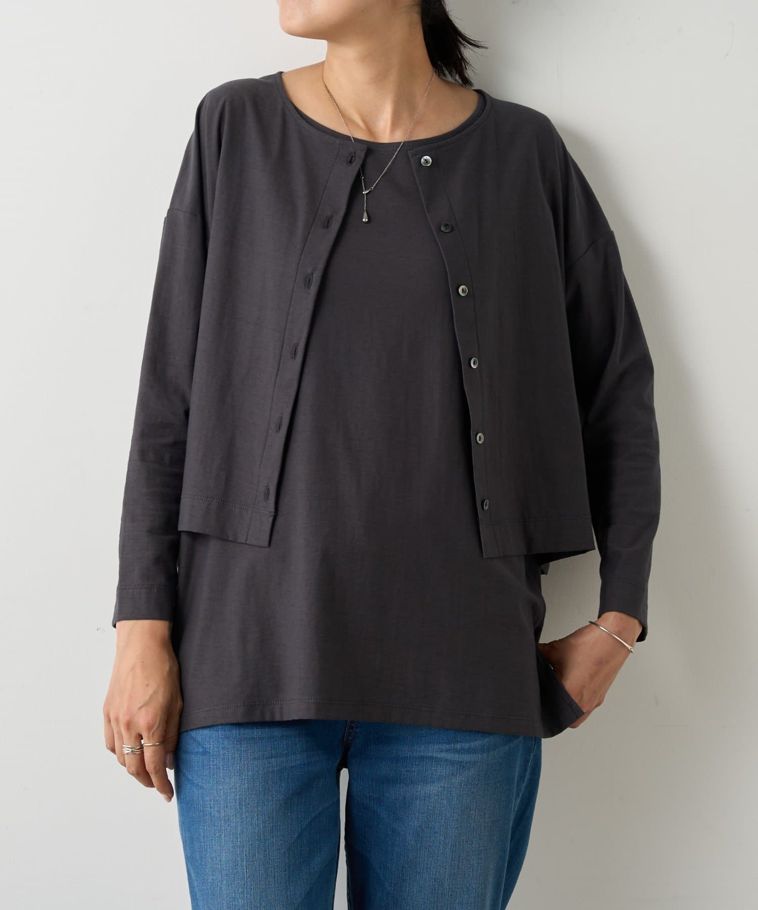 スラブ糸ならではの凹凸のある風合いが、ナチュラルで優しい印象に。