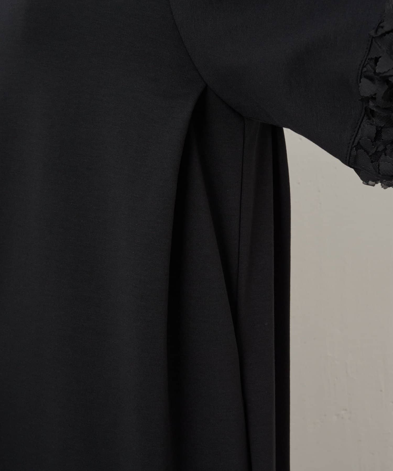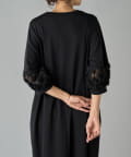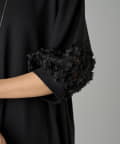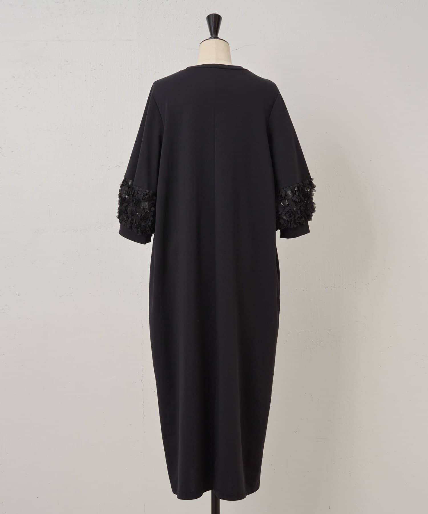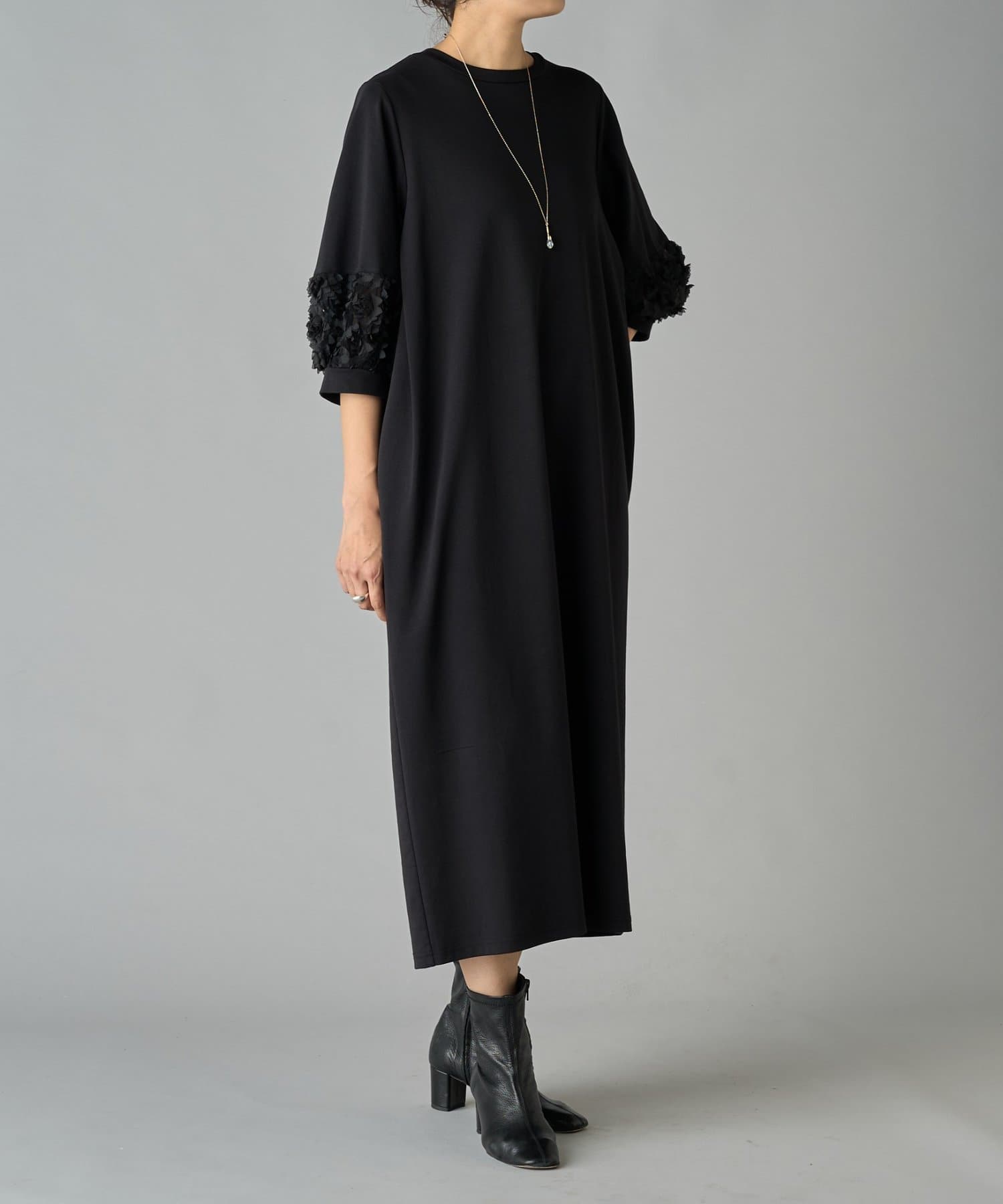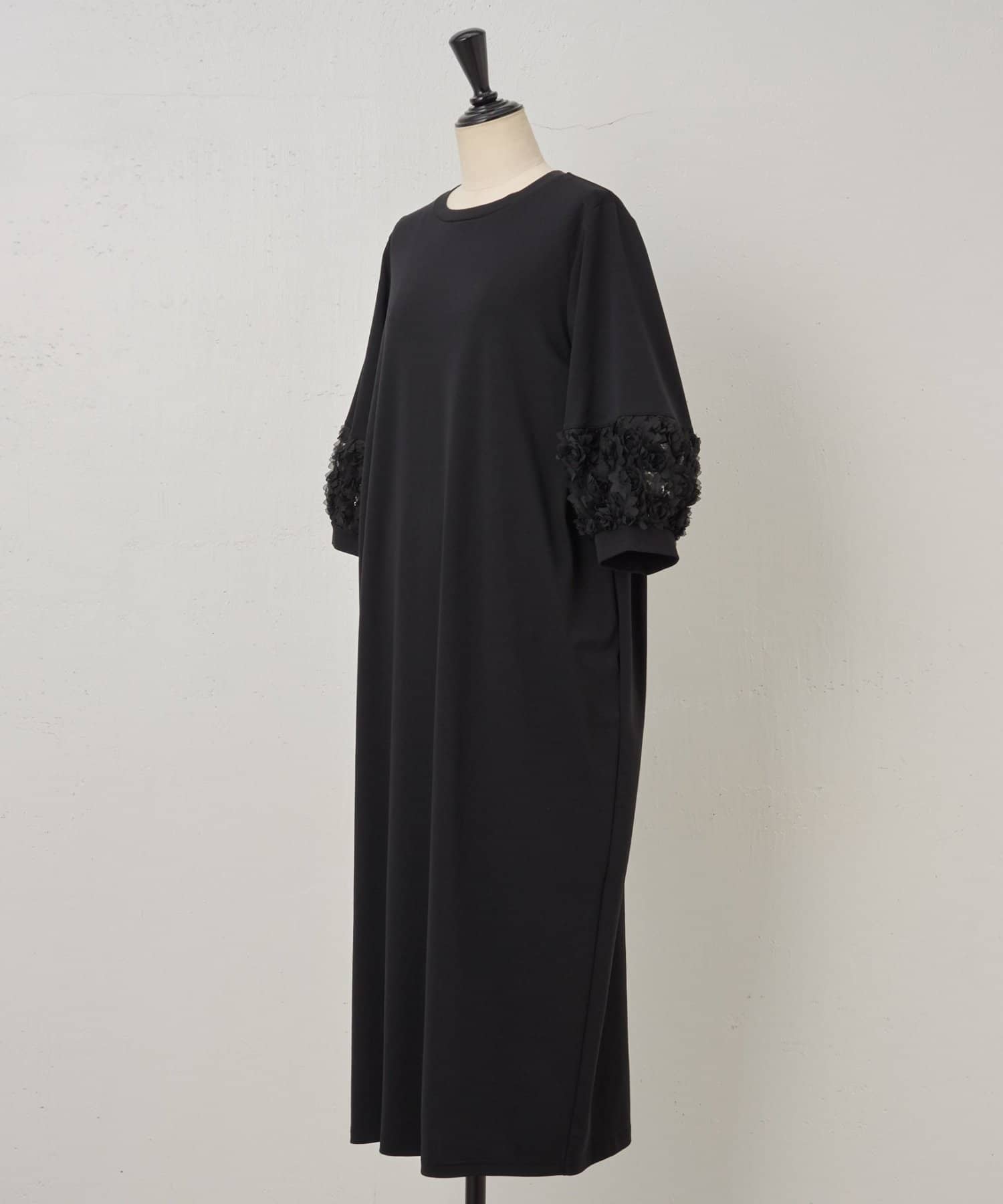 華やかな花モチーフのボリューム袖が目を惹く、エレガントなワンピース。