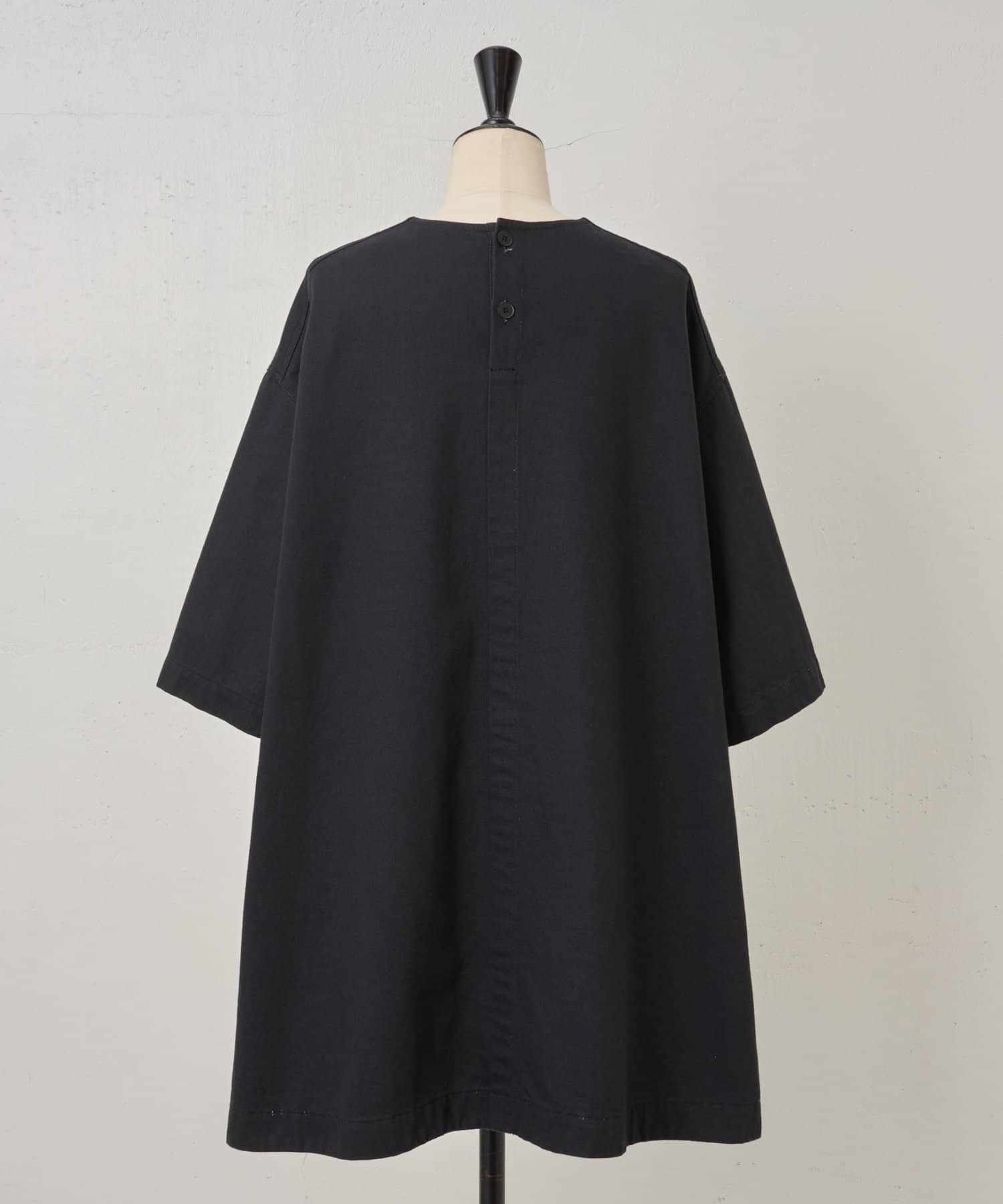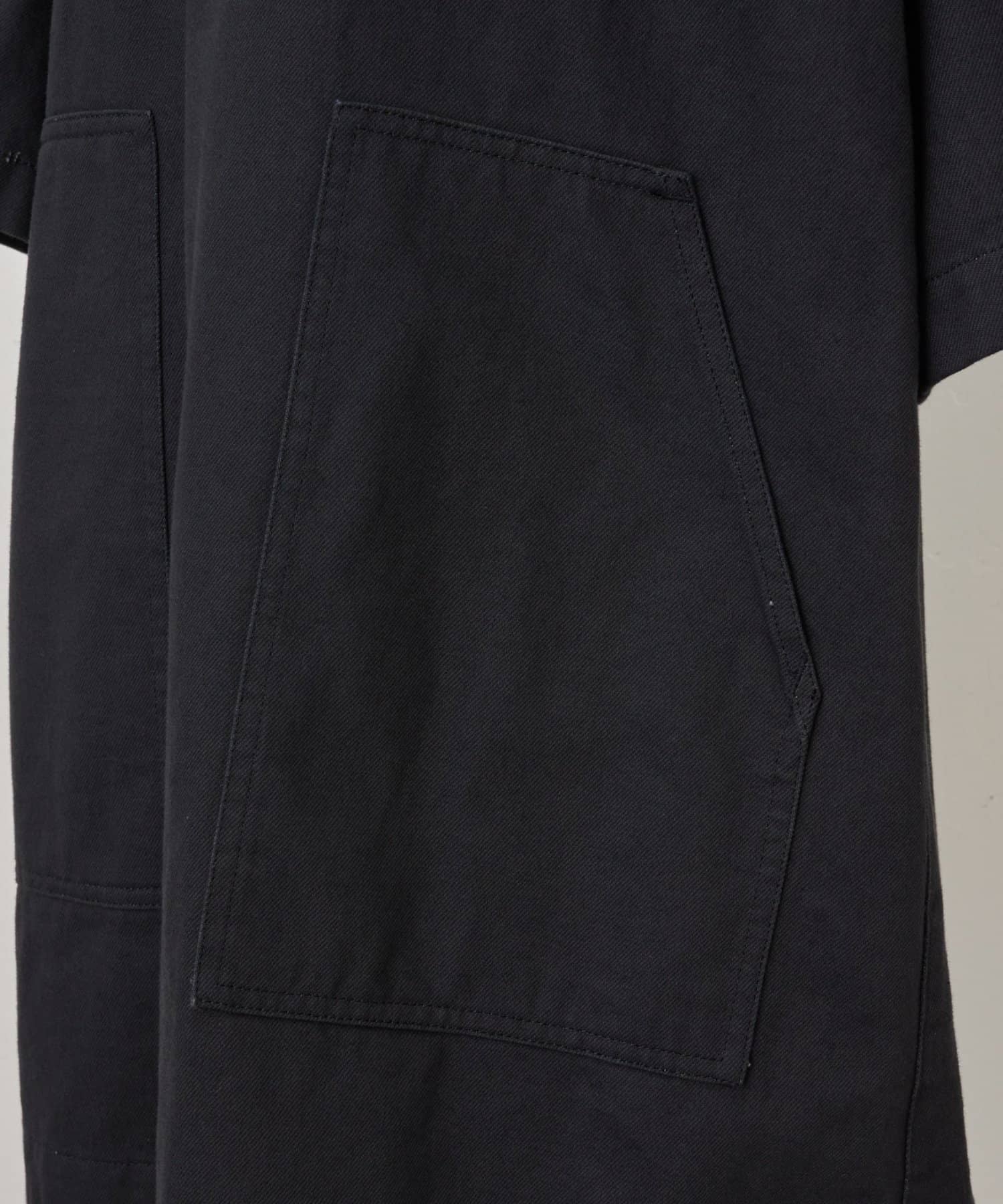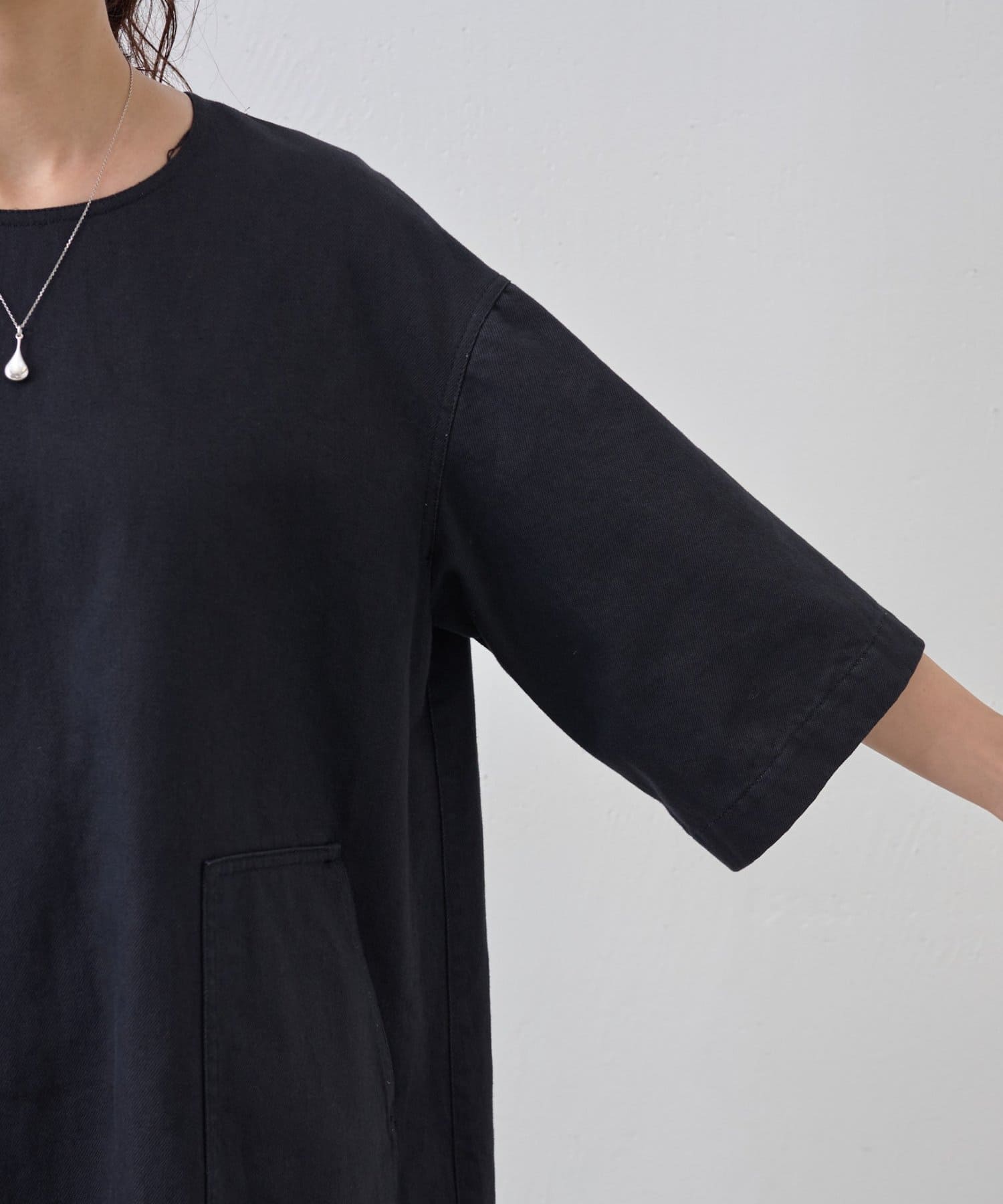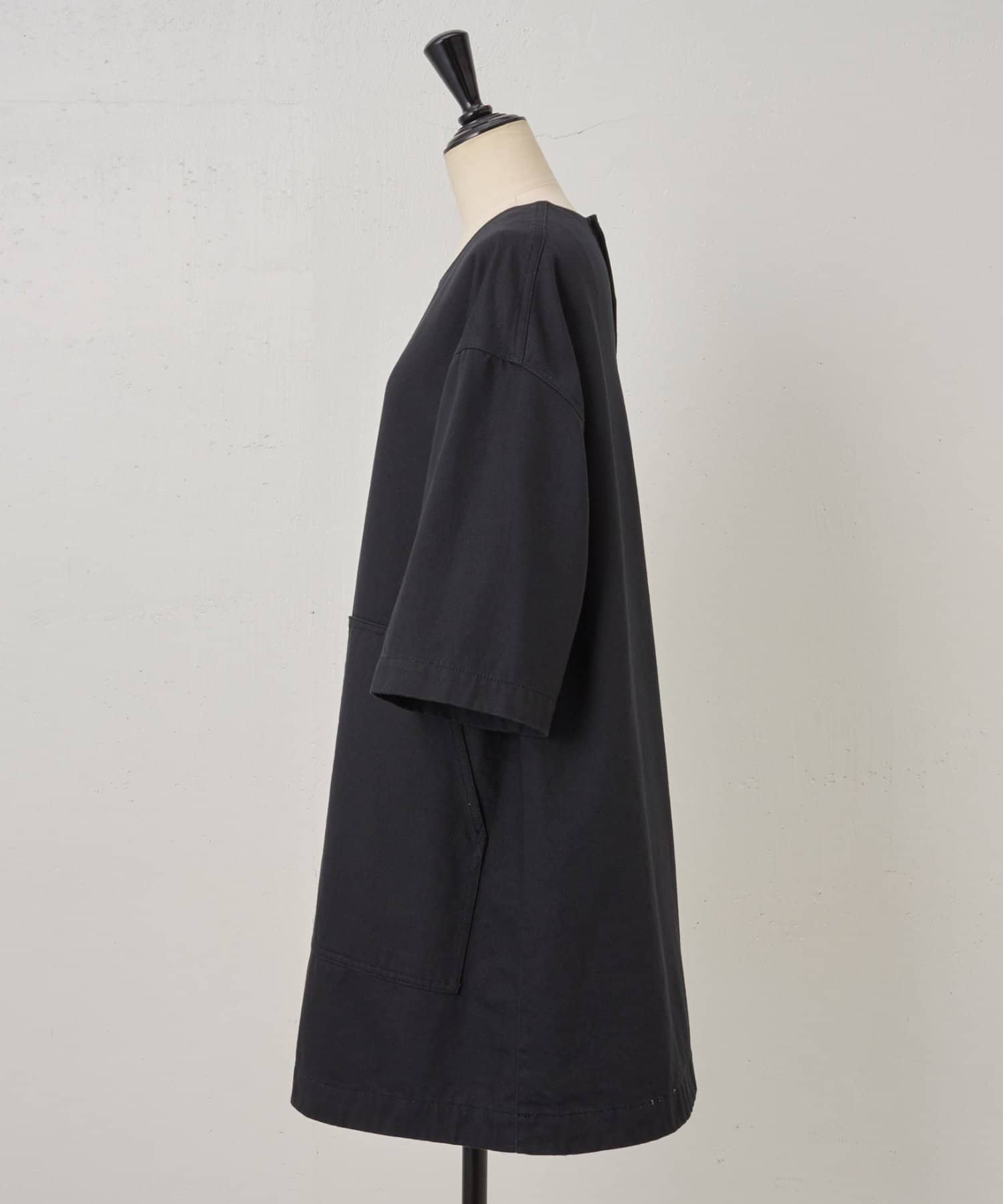 帆布風の生地に、大きなポケットがアクセントになったミニワンピース。