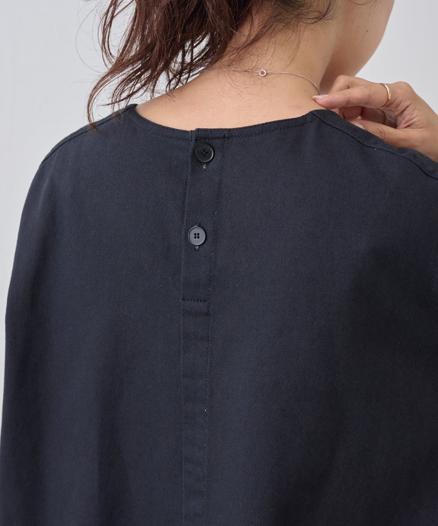首元は後ろにボタンが2つ付いており、開きすぎず上品な印象に仕上がっています。