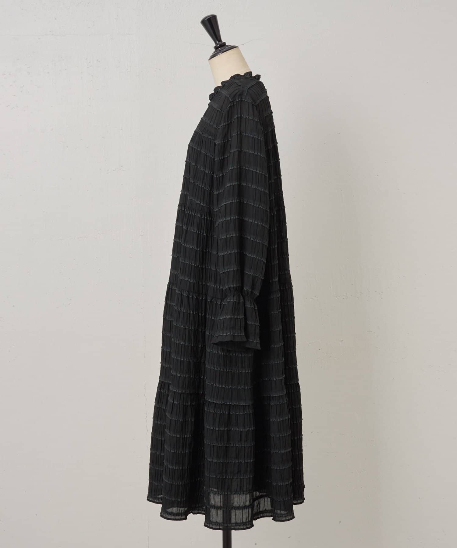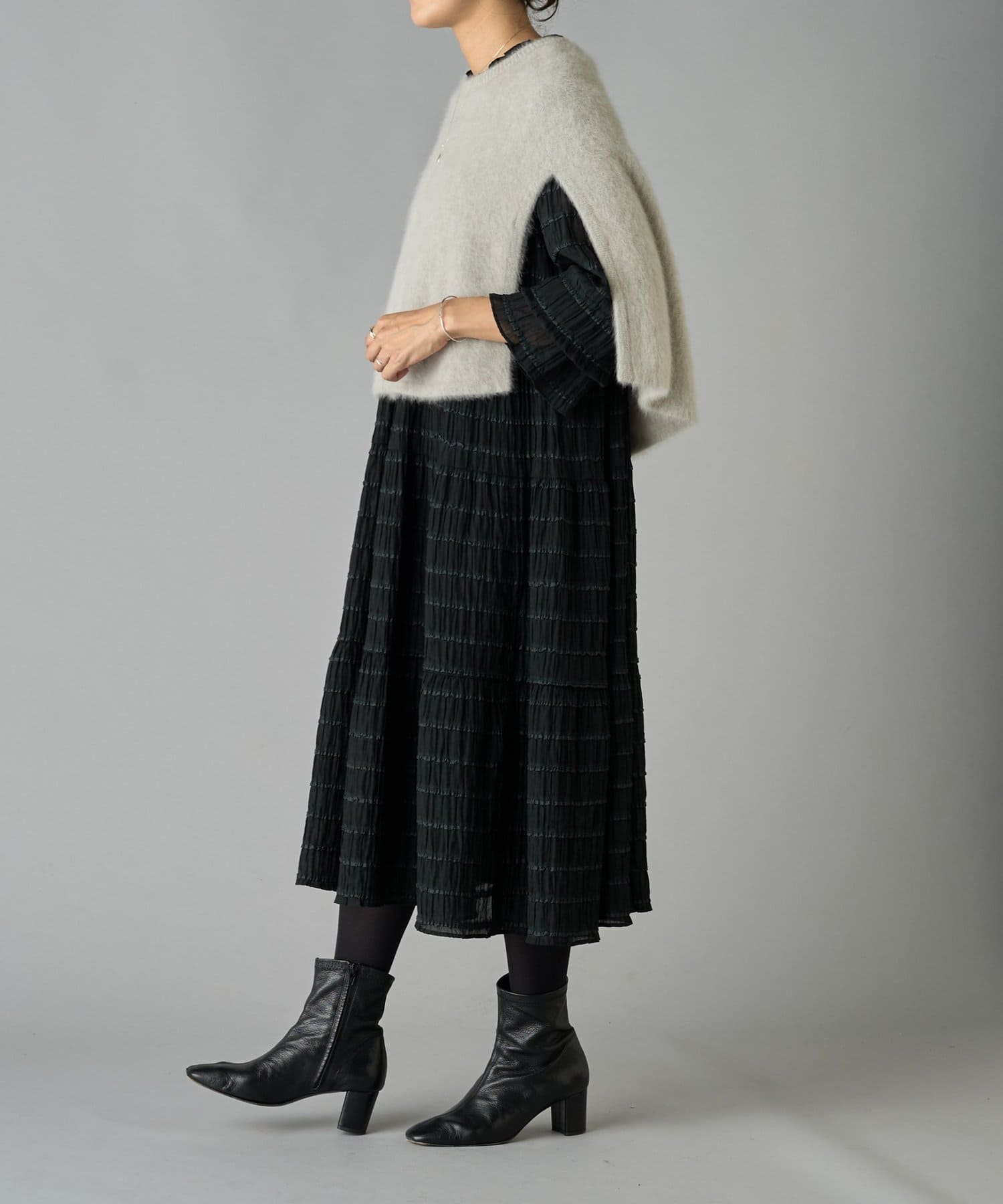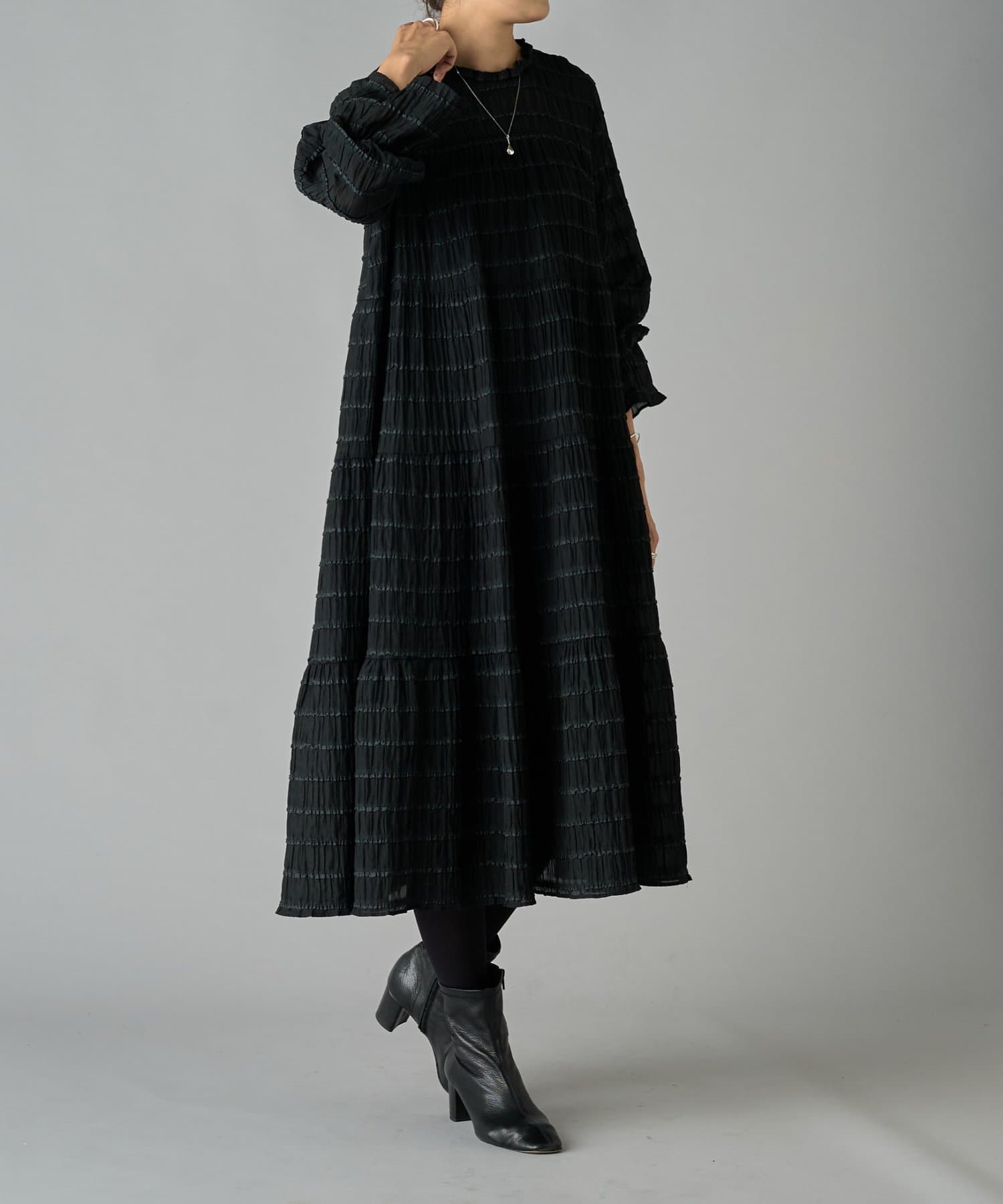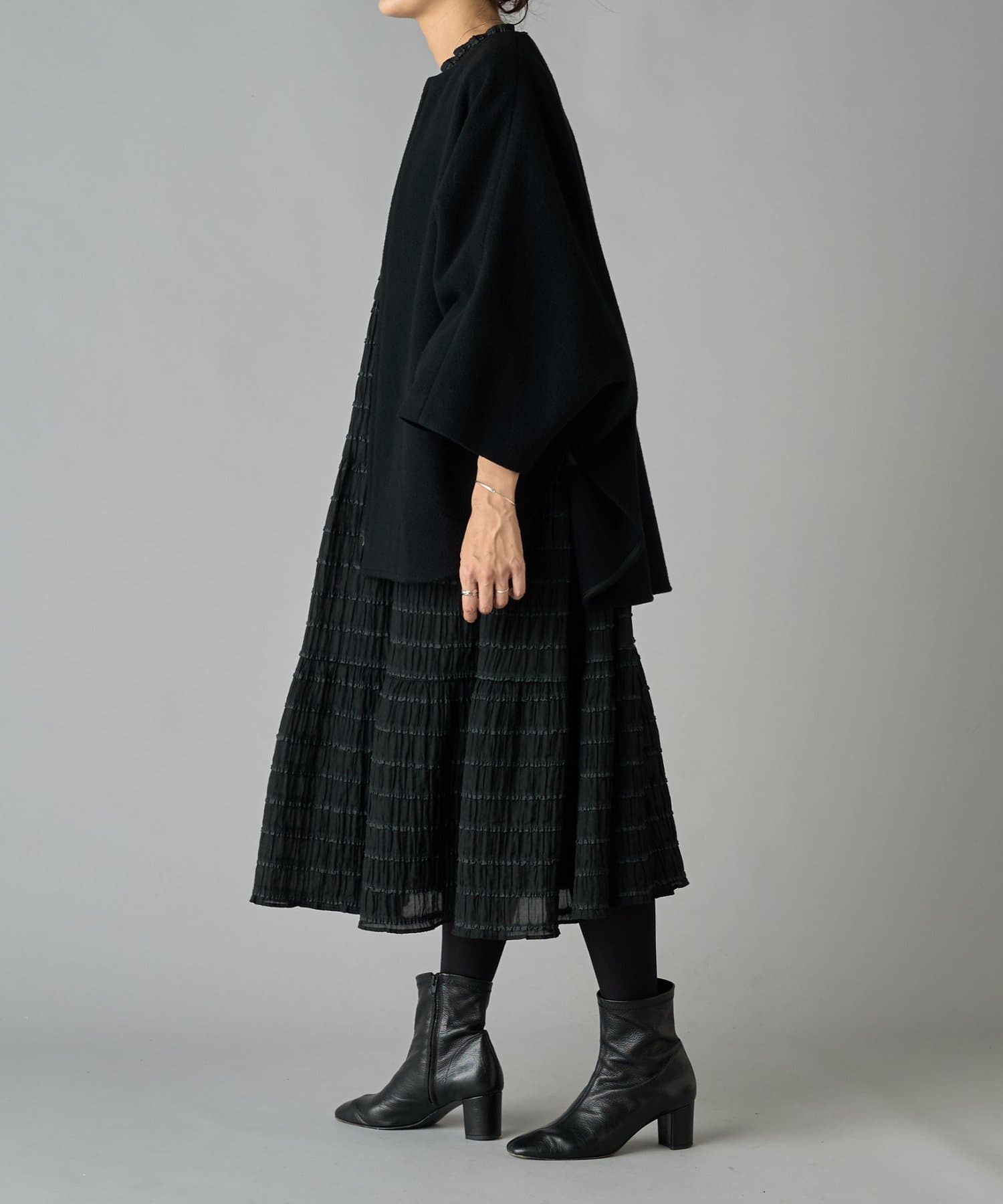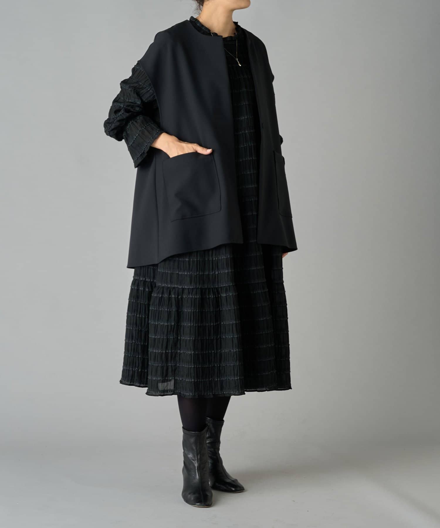 等間隔に異素材を縫い込んだ立体感のある生地で、1枚で華やかな印象に仕上がります。