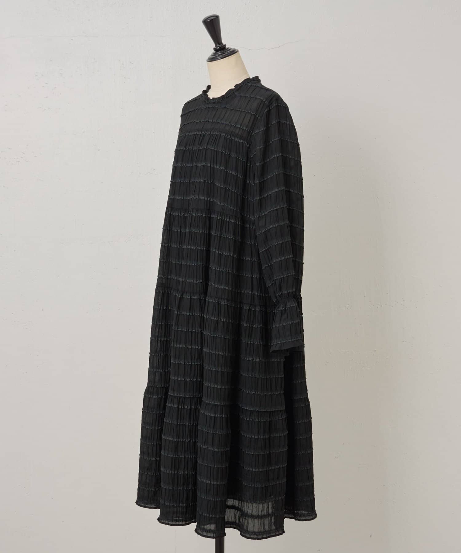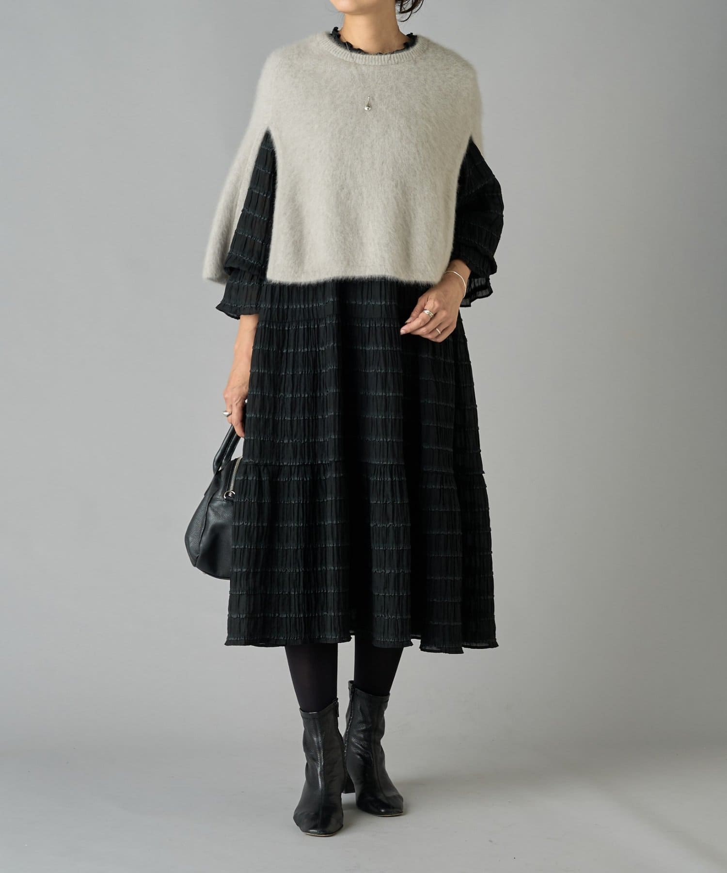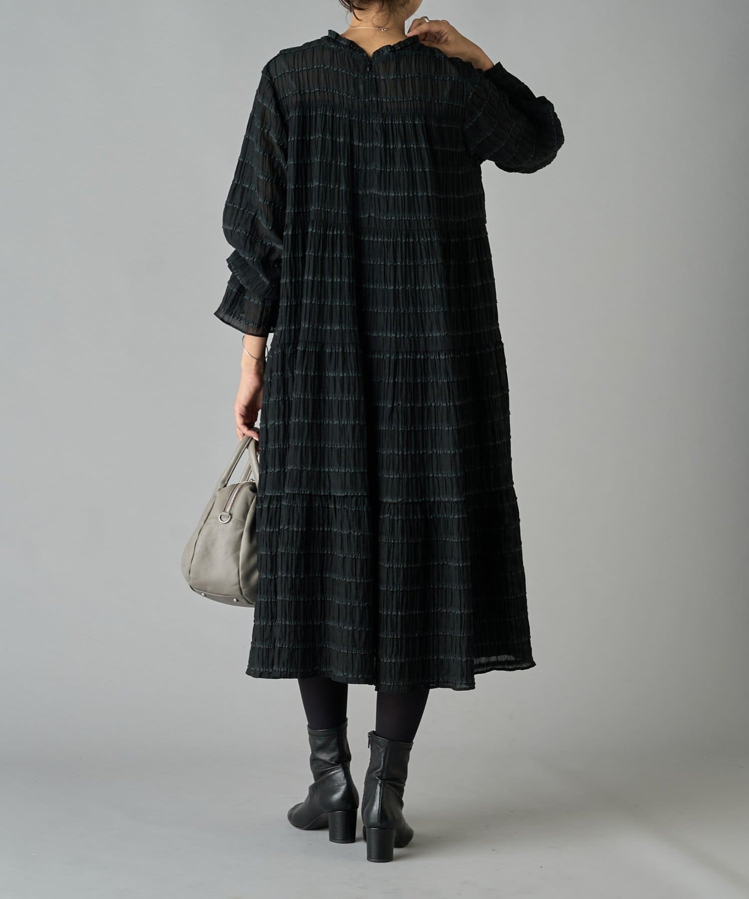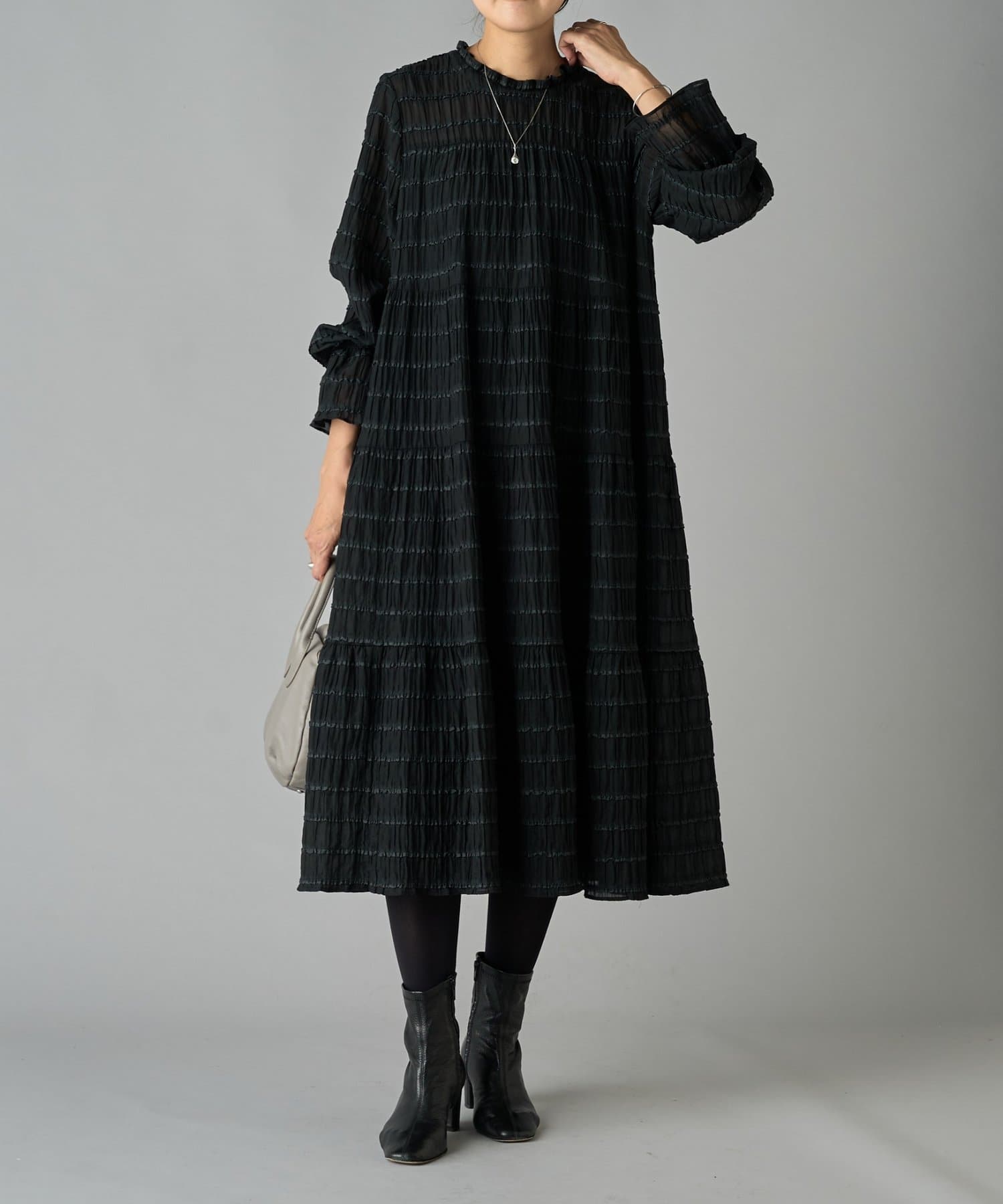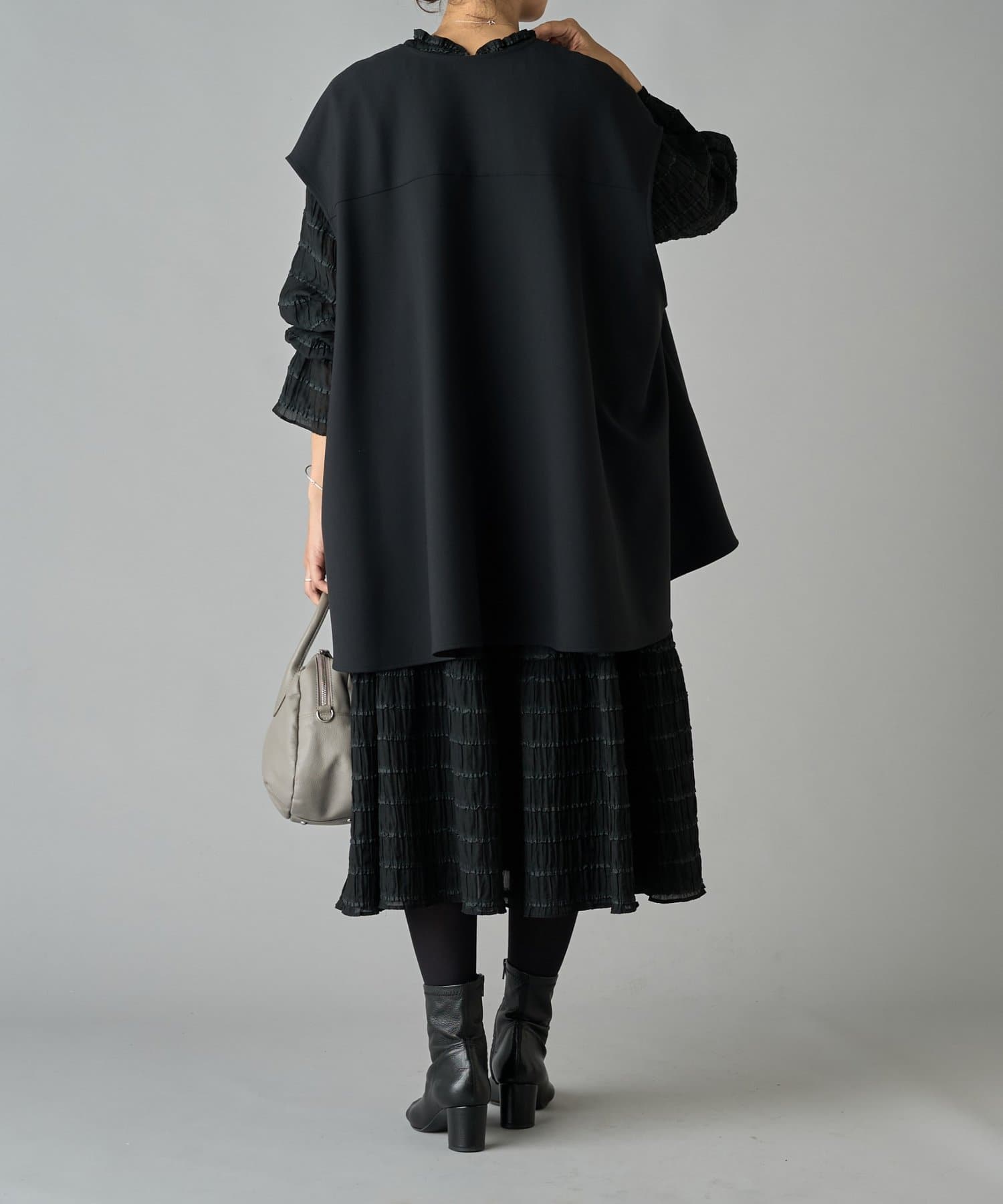 等間隔に異素材を縫い込んだ立体感のある生地で、1枚で華やかな印象に仕上がります。
