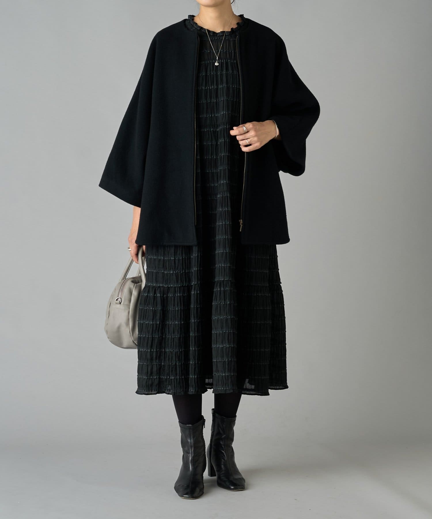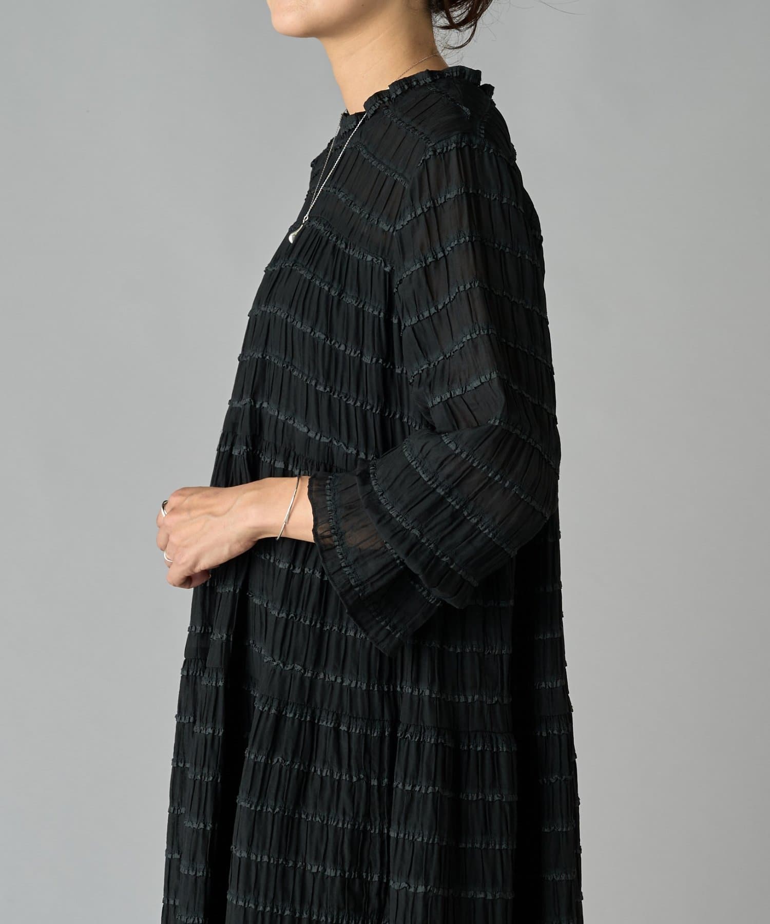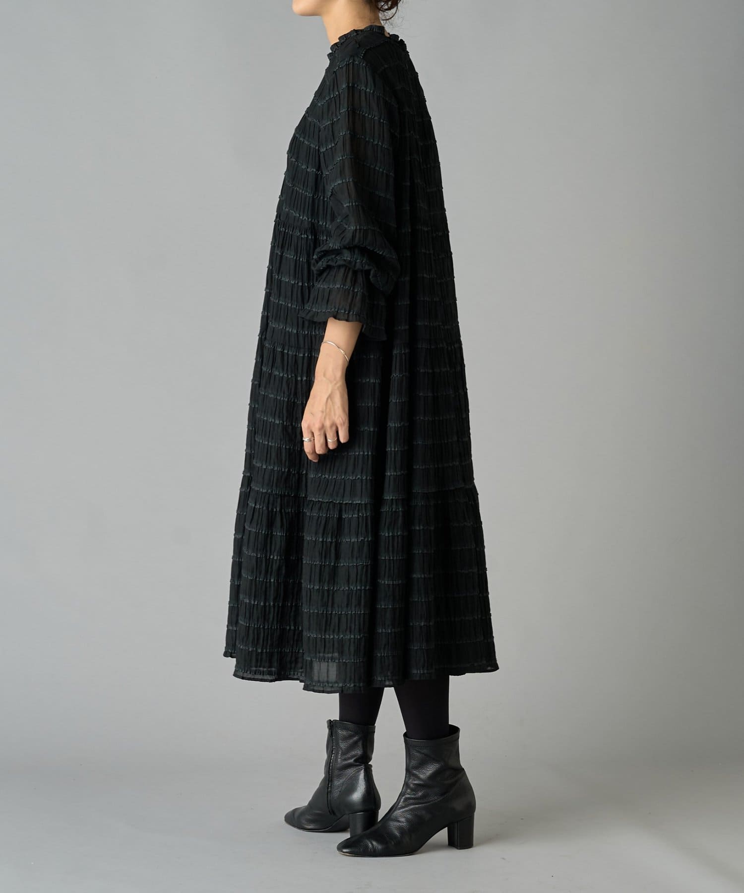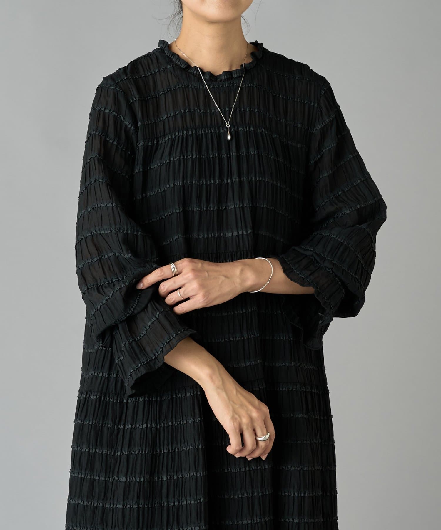 等間隔に異素材を縫い込んだ立体感のある生地で、1枚で華やかな印象に仕上がります。