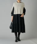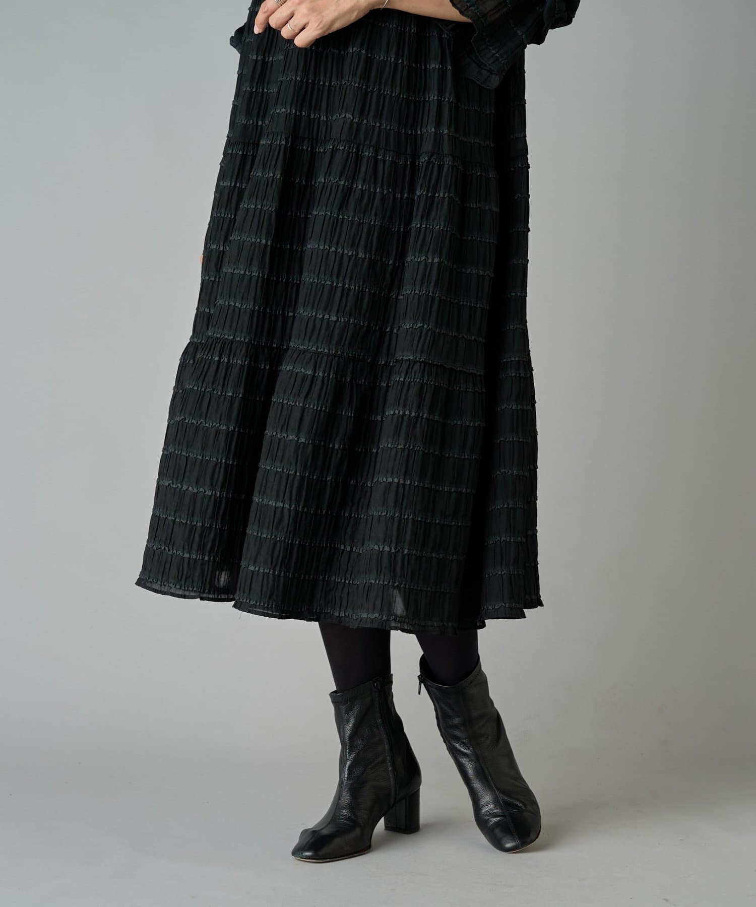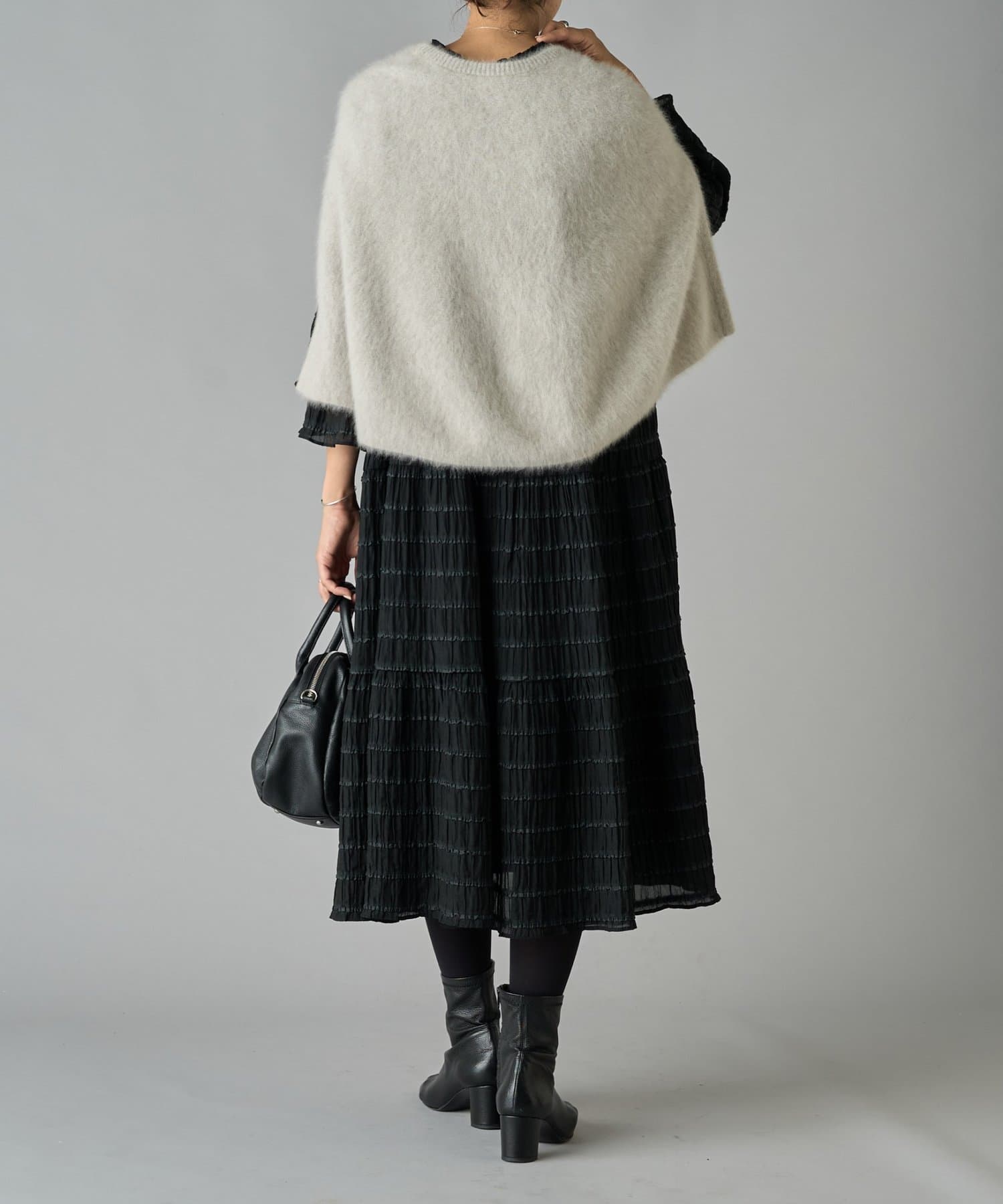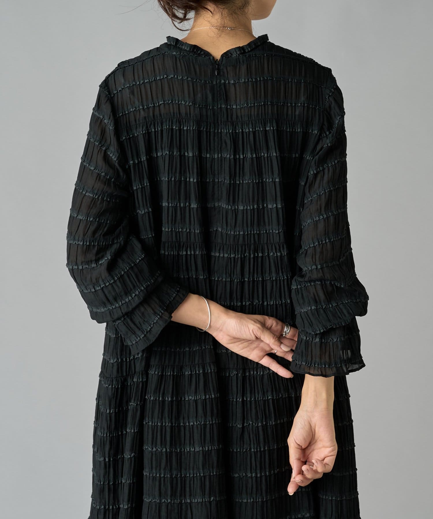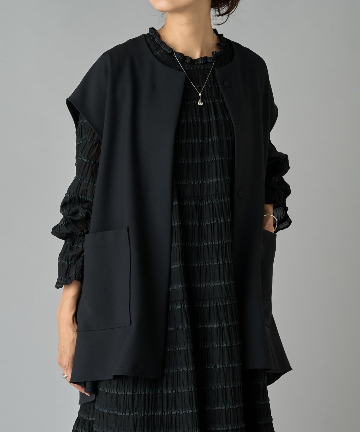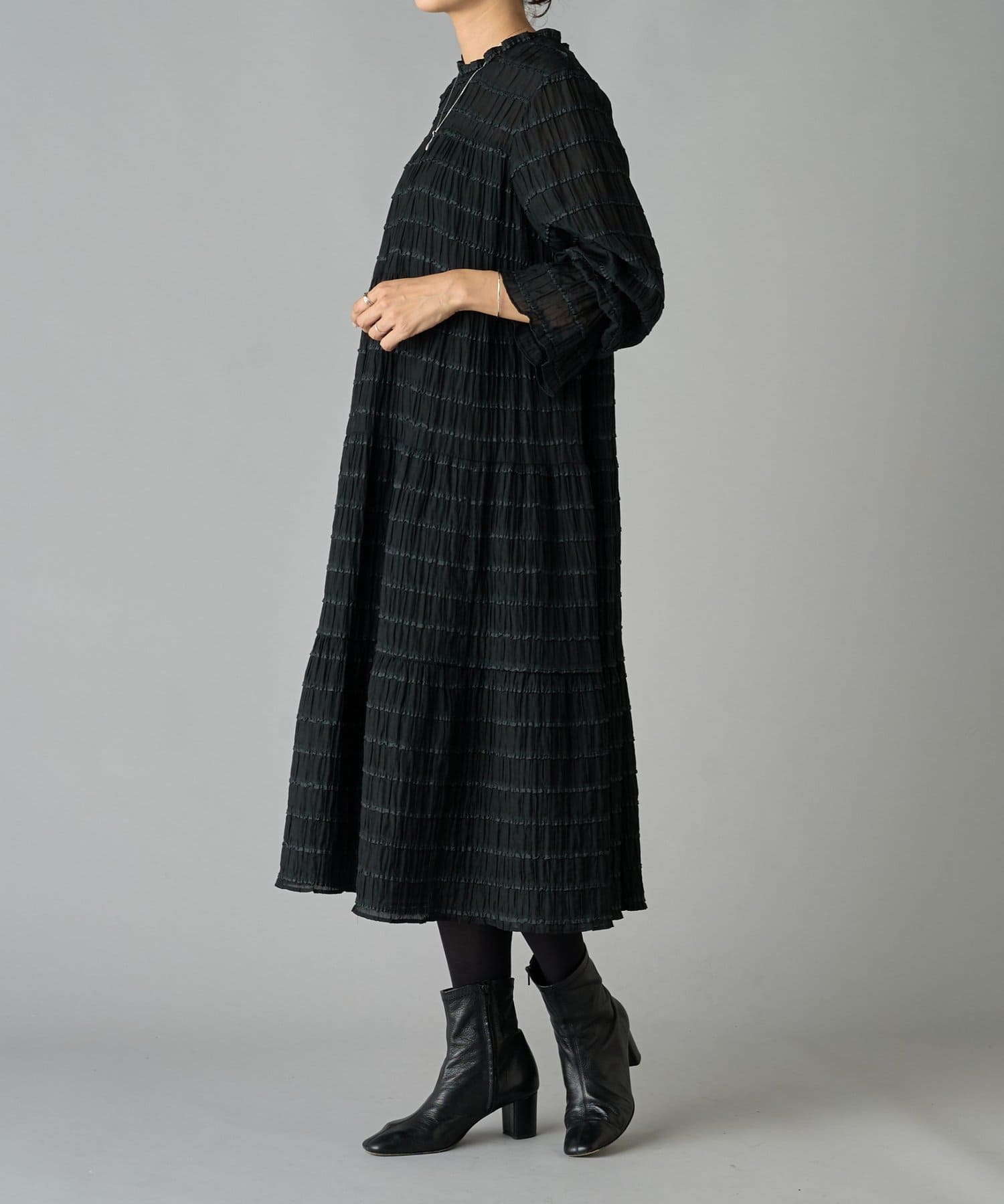 等間隔に異素材を縫い込んだ立体感のある生地で、1枚で華やかな印象に仕上がります。