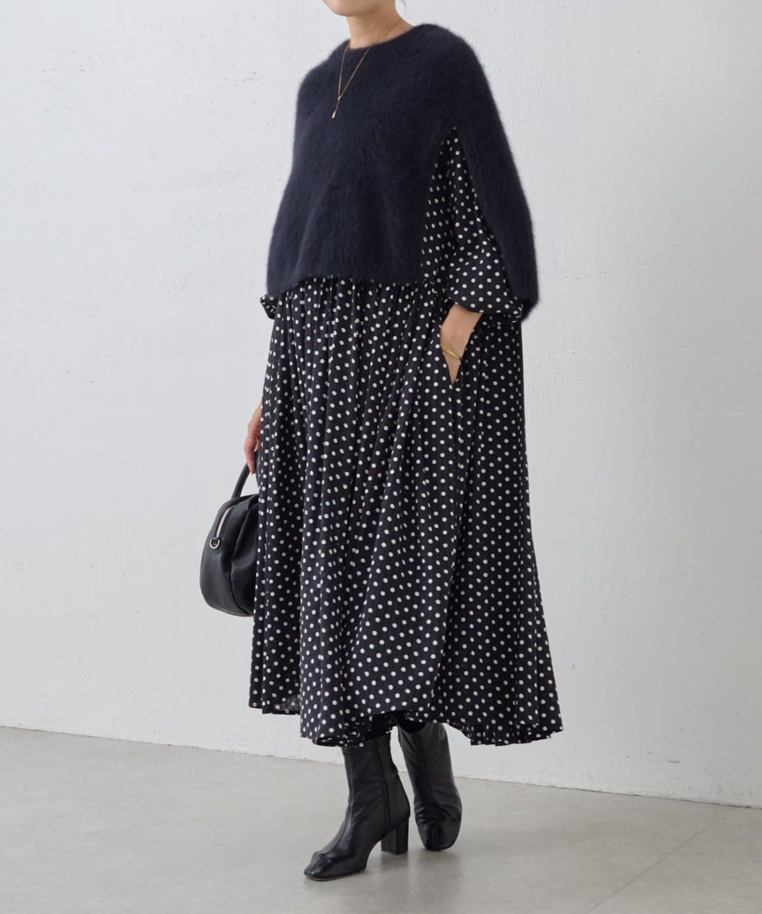 カーディガンやポンチョを重ね着したりなど、アイテムや季節に合わせて様々な着こなしが叶います。