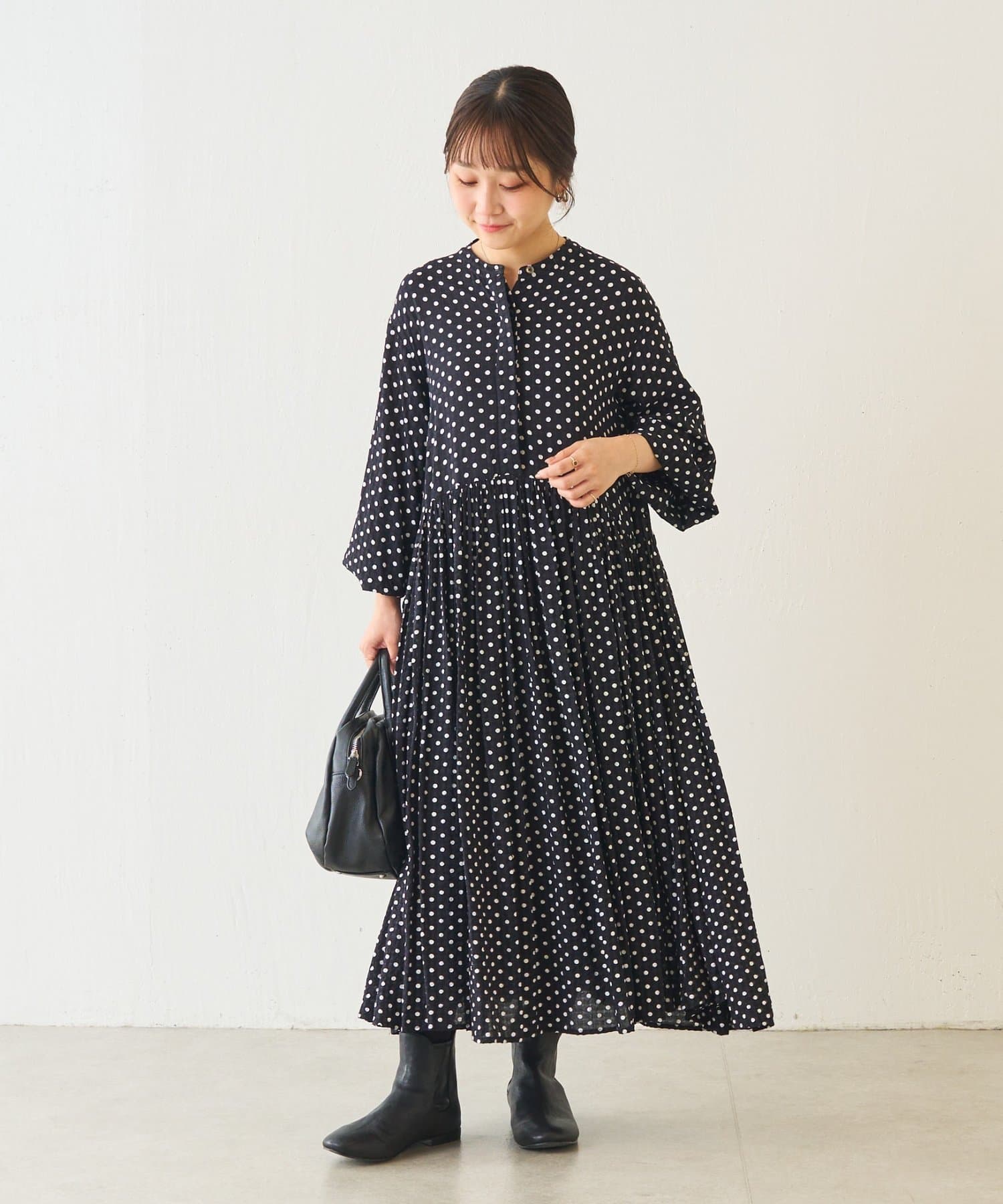 購入場所:店舗普通体型で、0と1を試着しようとしましたが、0を試着しただけで、丈の長さがいいなと決めました。ドット柄ですが、生地もプリントも素敵でお出かけの時にたくさん着たいと思います。