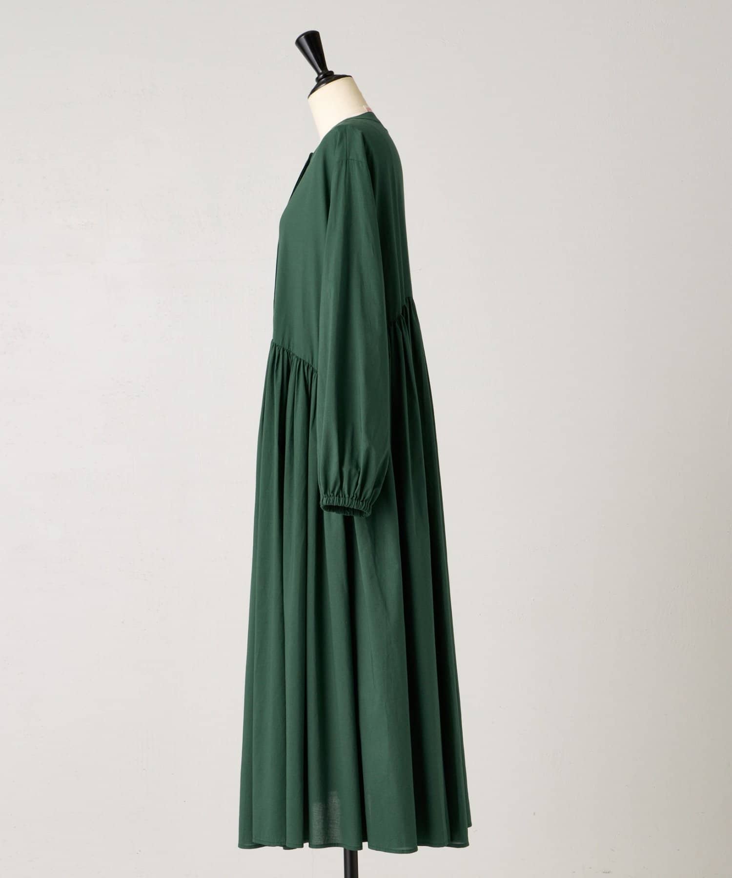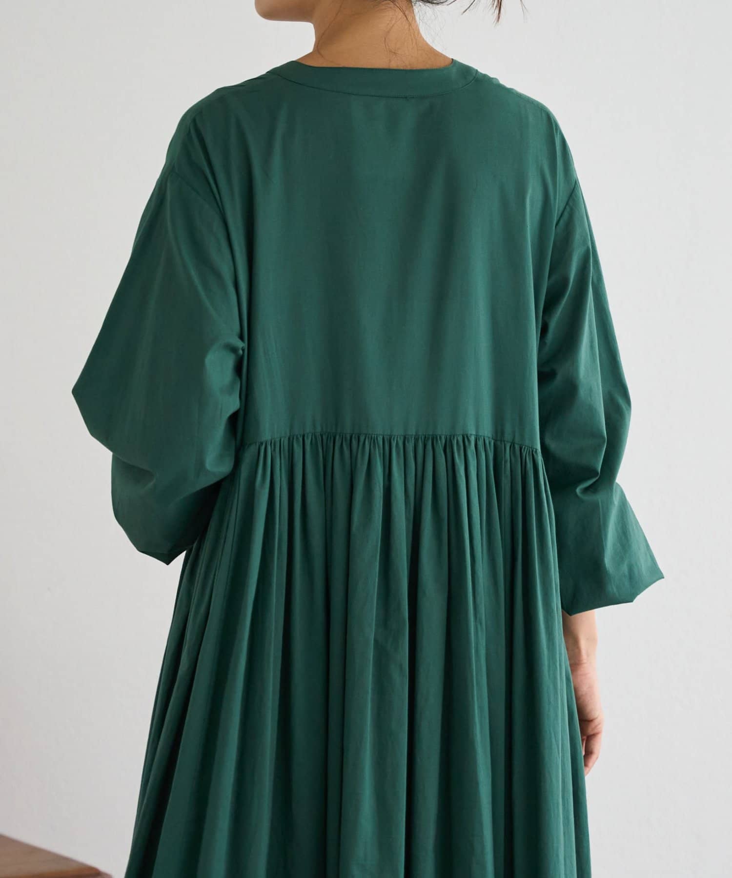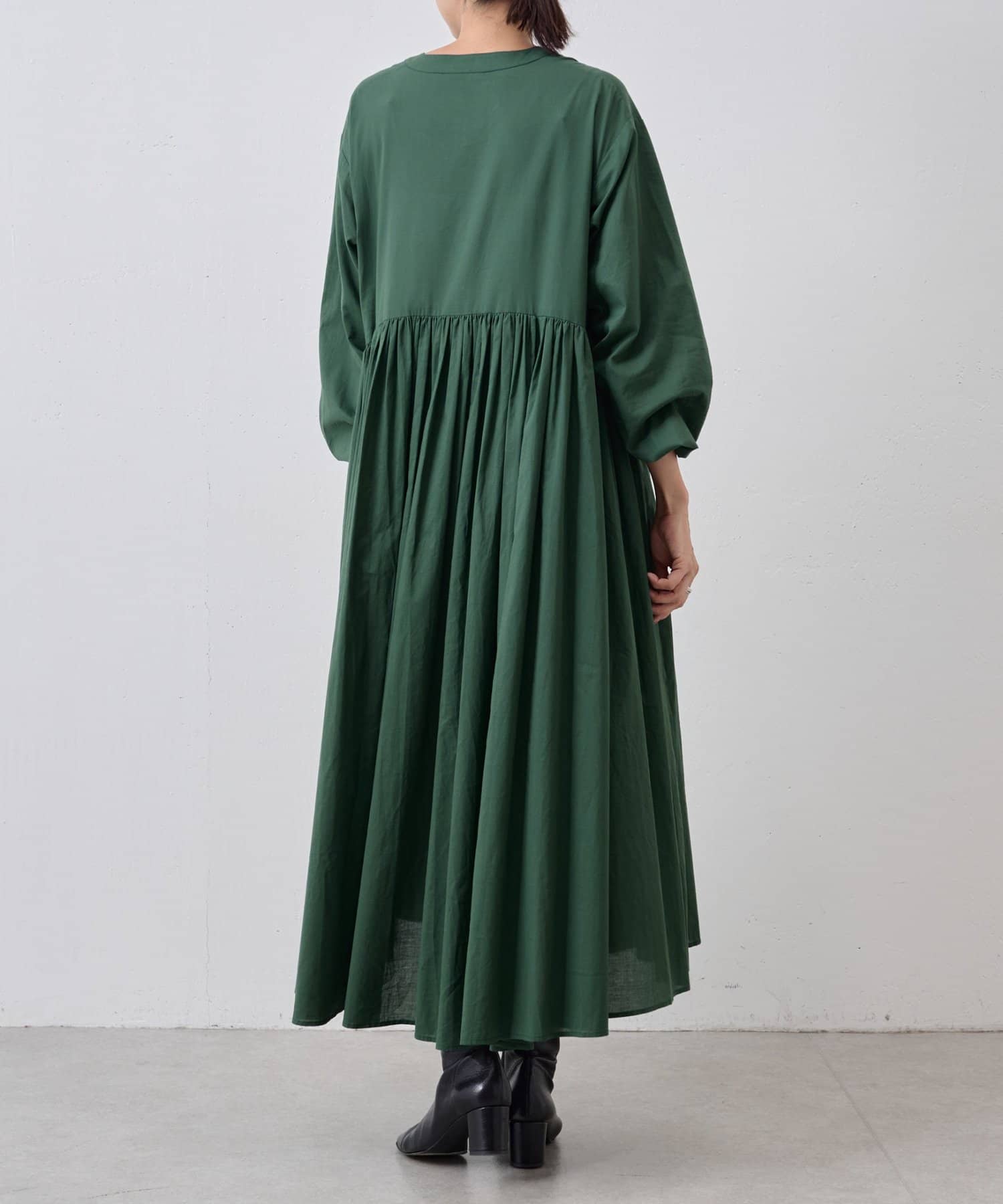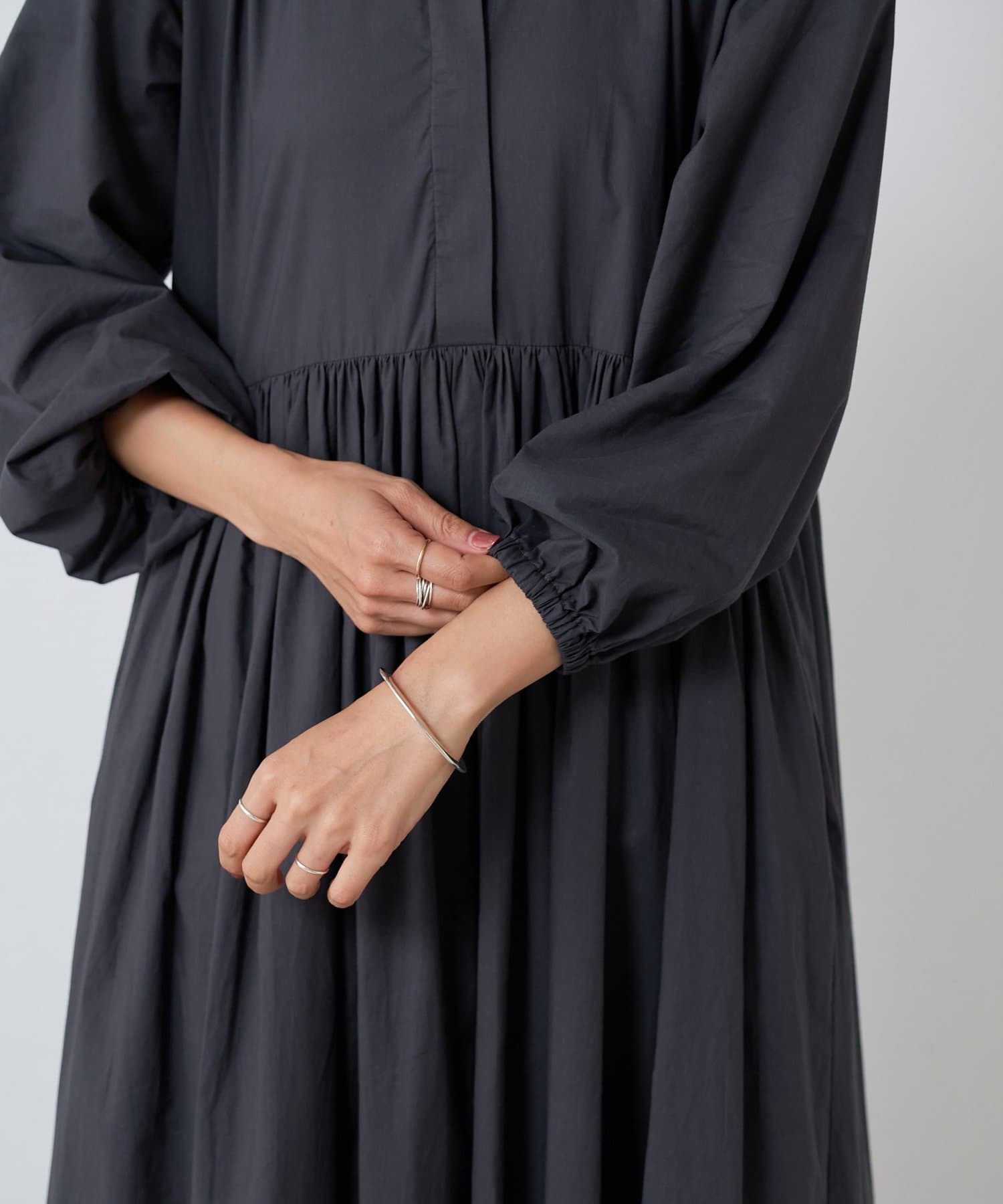 ・こちらの商品は、裾にたっぷりと生地を用いた分量感がデザインポイントになります。多量の生地を使用しており、重力と相まって他の製品・デザインより伸びやすい傾向にある為、着丈等サイズは2%前後を許容範囲とさせて頂きます。