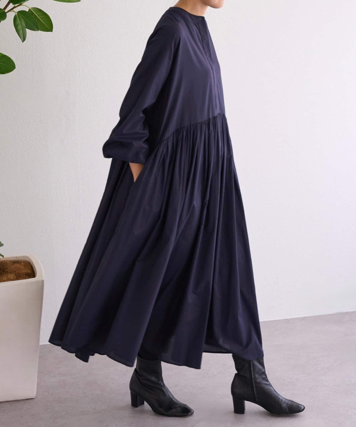 贅沢に生地を使ったギャザーワンピース。