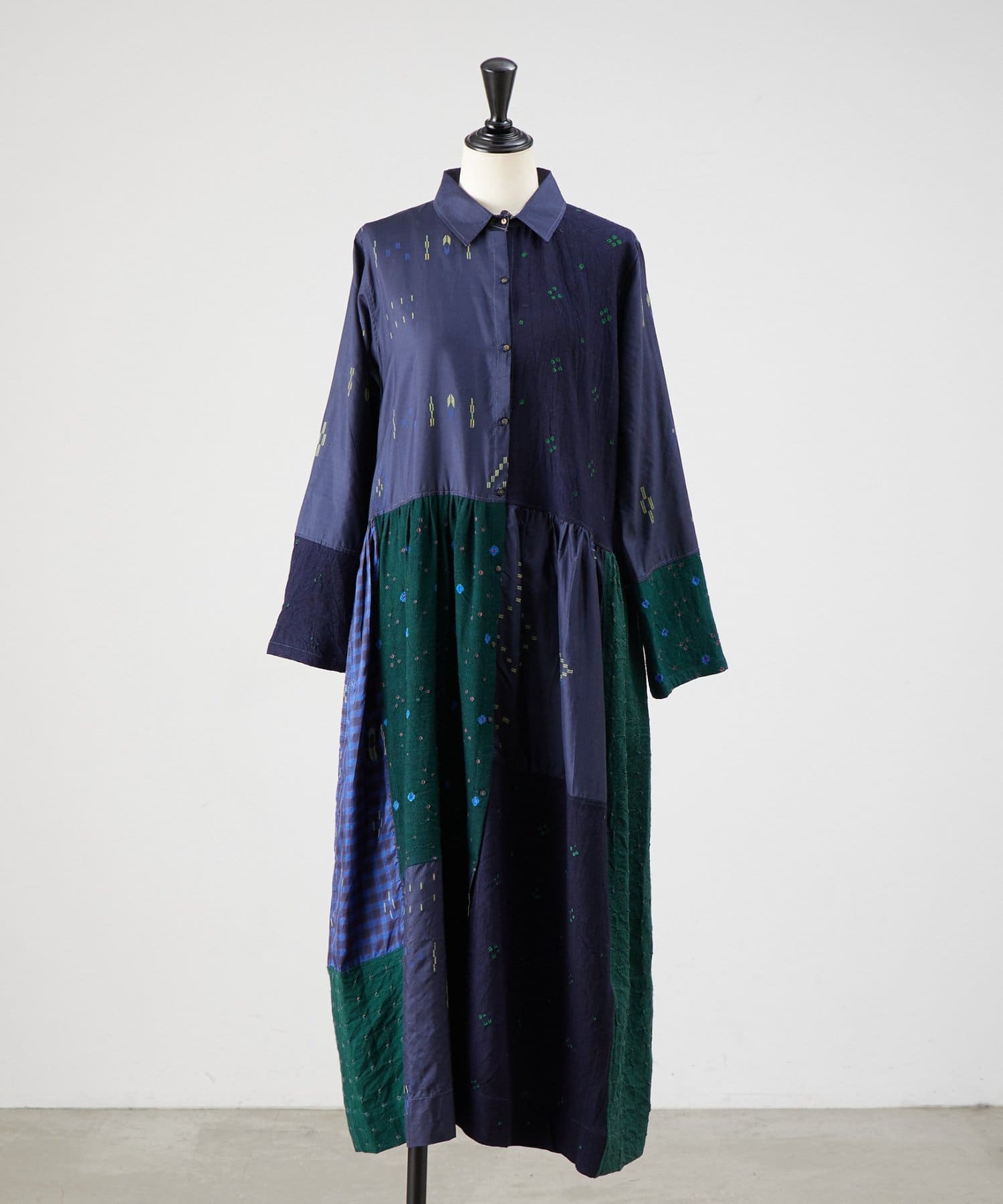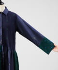 フロント部分はボタン仕様の前開きで、衿の付いたシャツワンピースに。