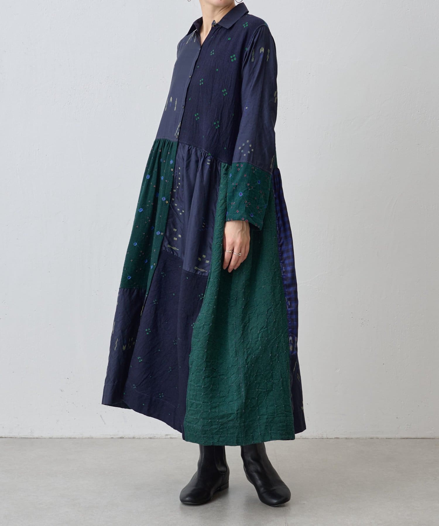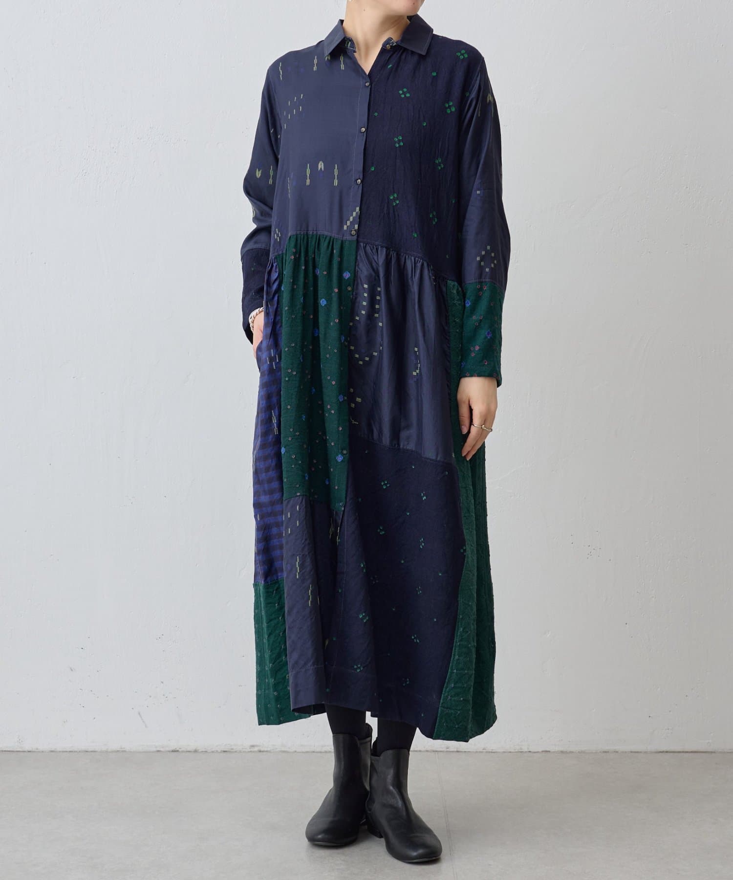 《INJIRI》シルク&ウールシャツワンピース