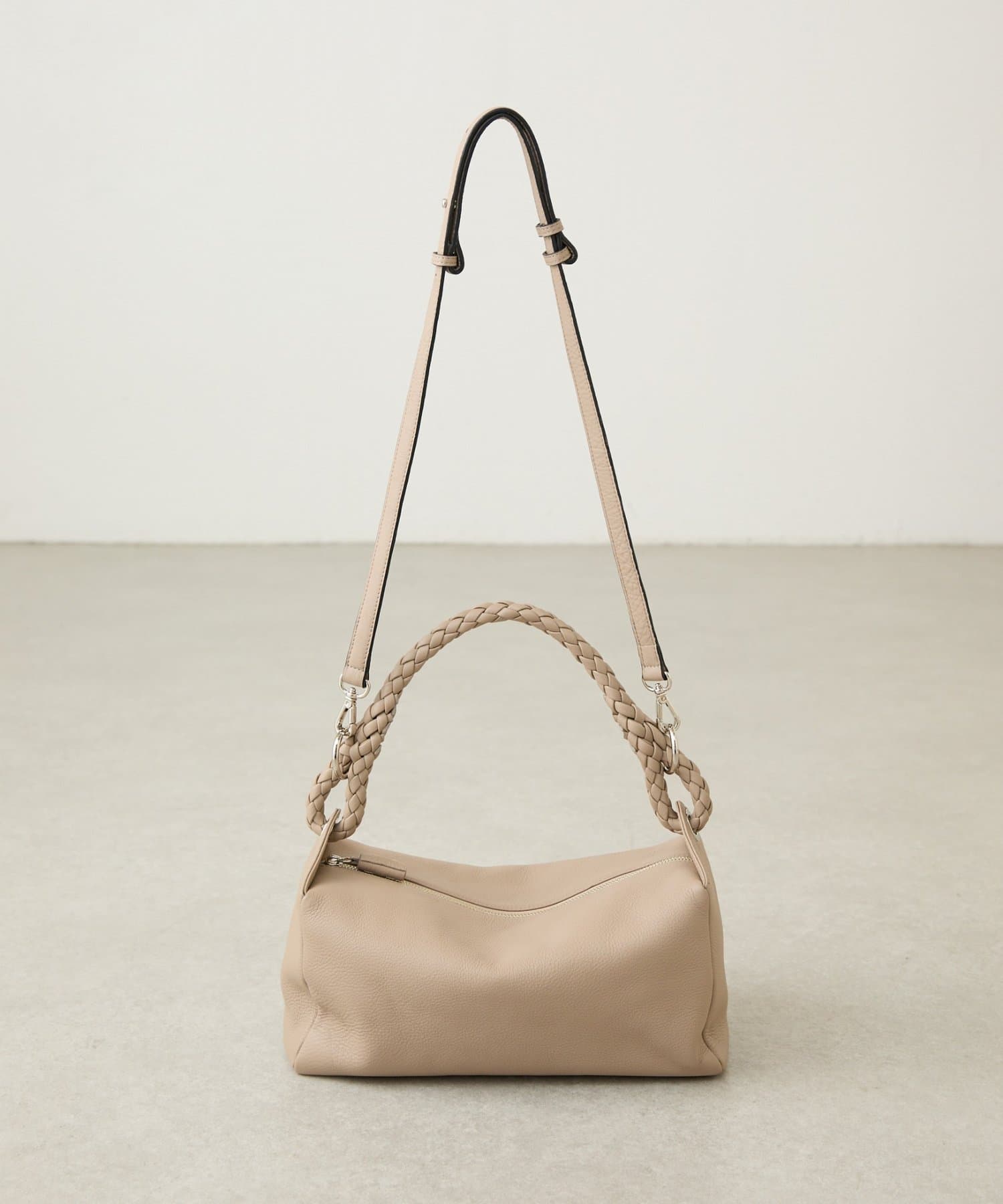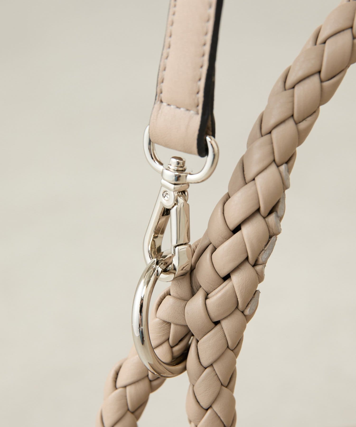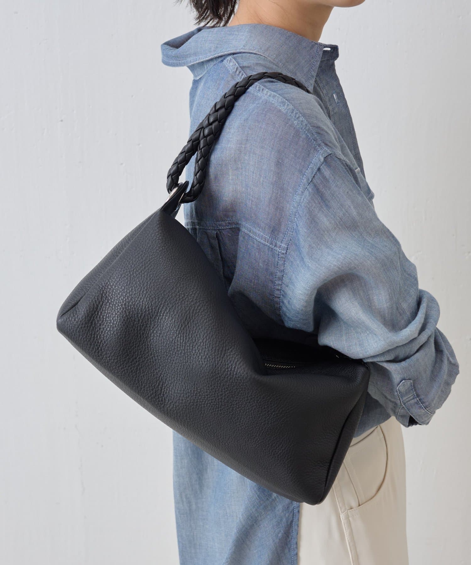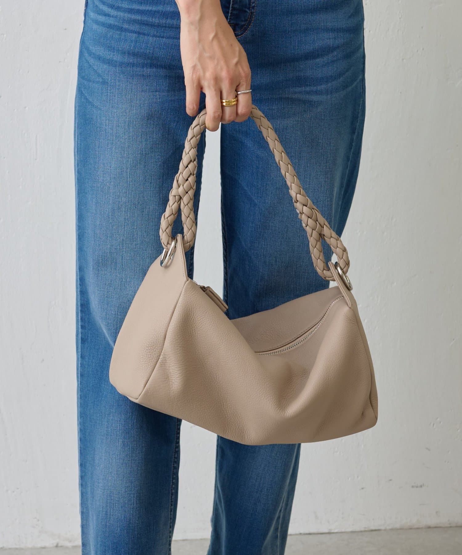 ロープのように編み込まれたレザーハンドルが印象的なショルダーBAG