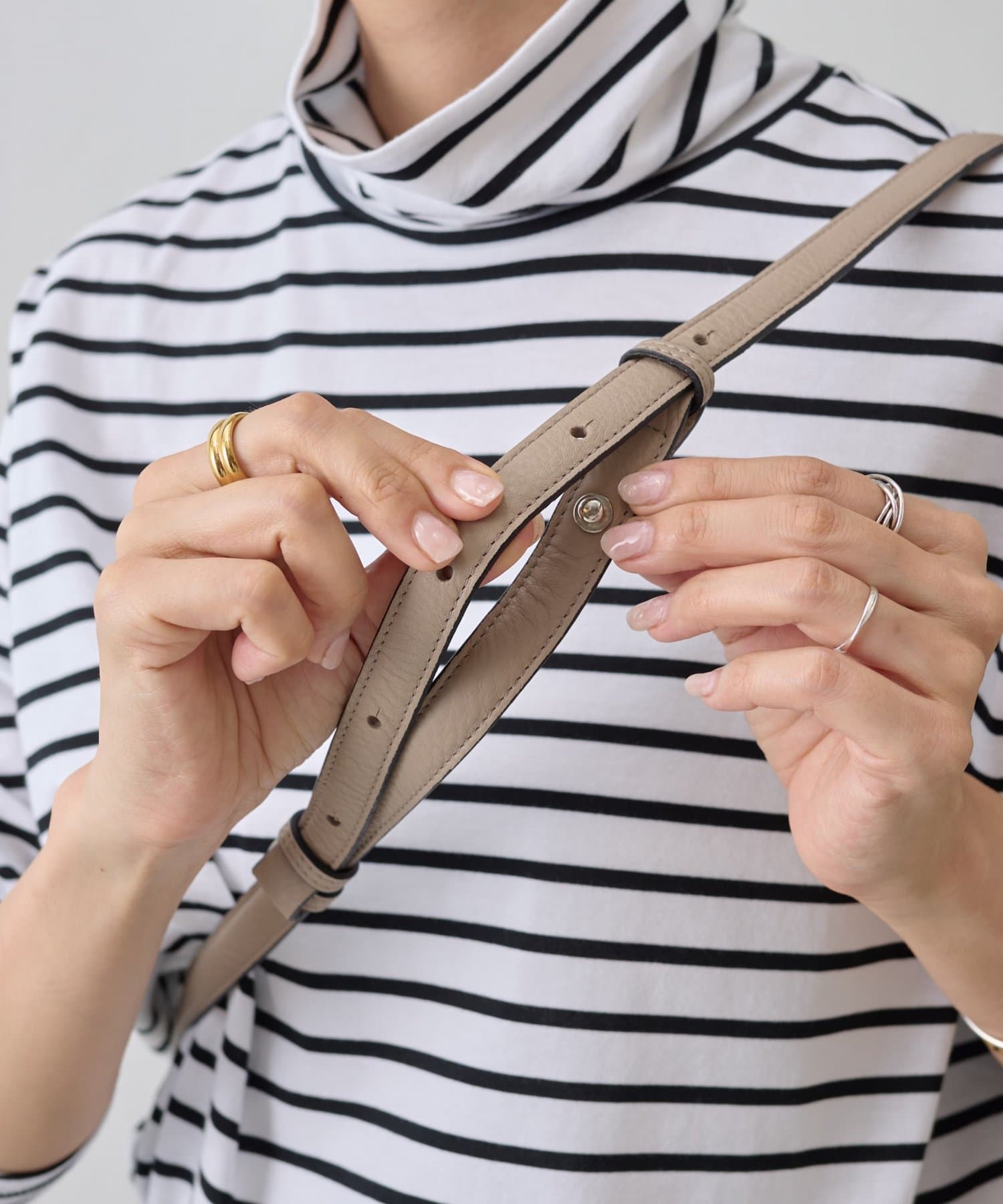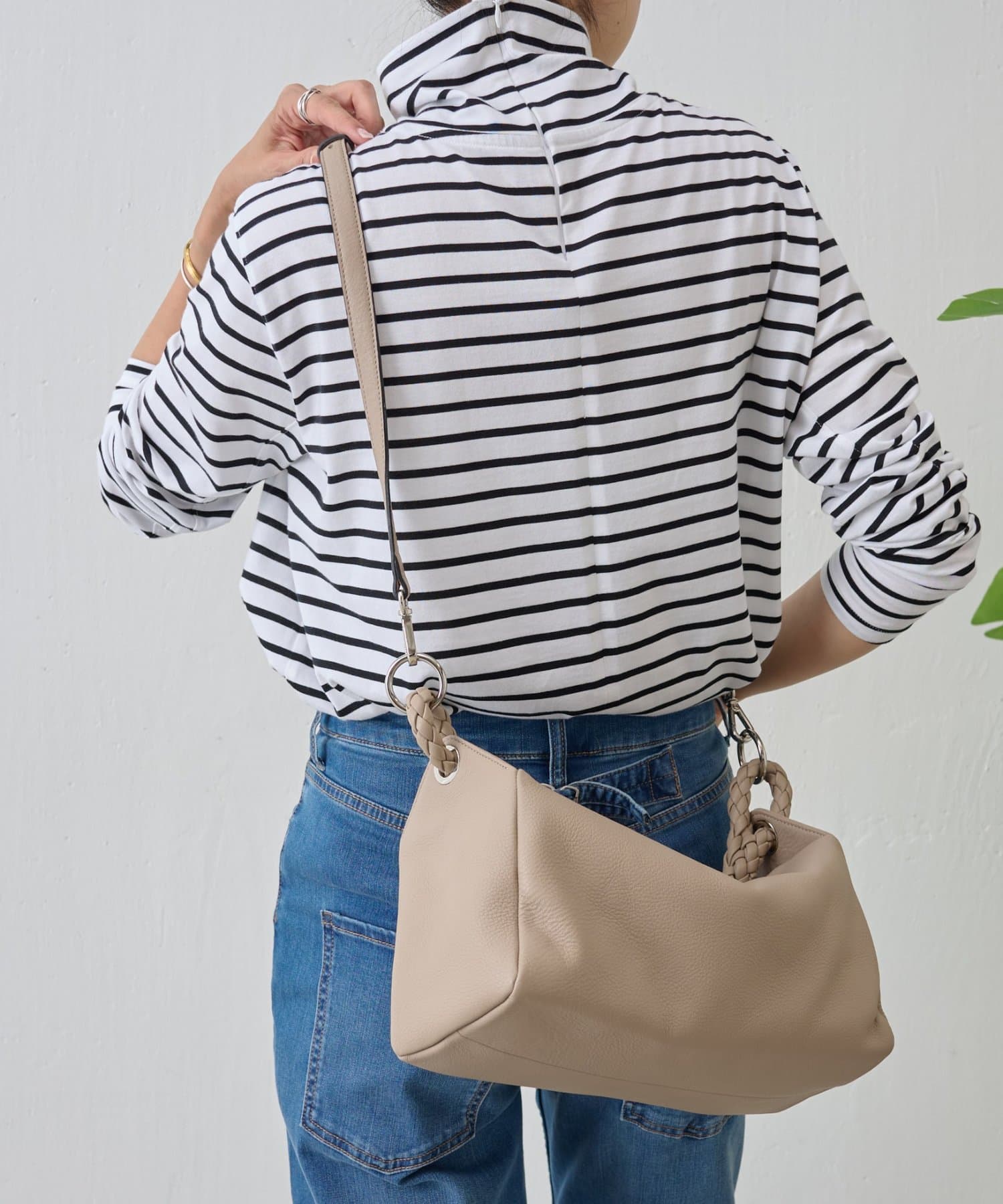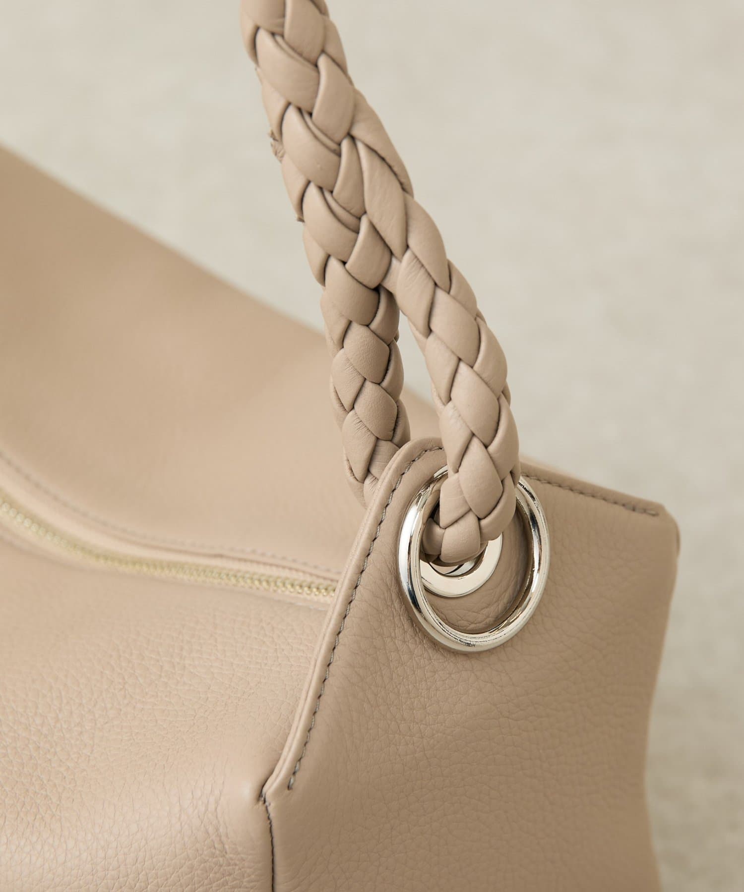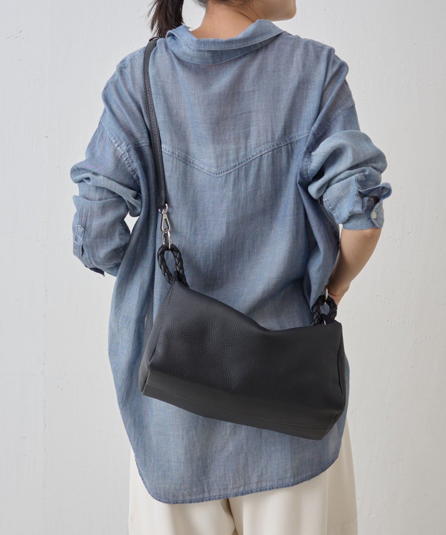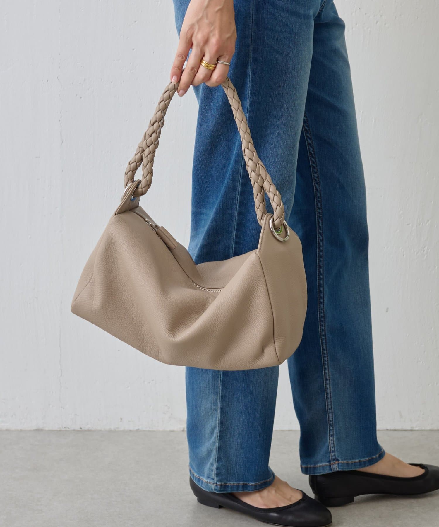 ロープのように編み込まれたレザーハンドルが印象的なショルダーBAG