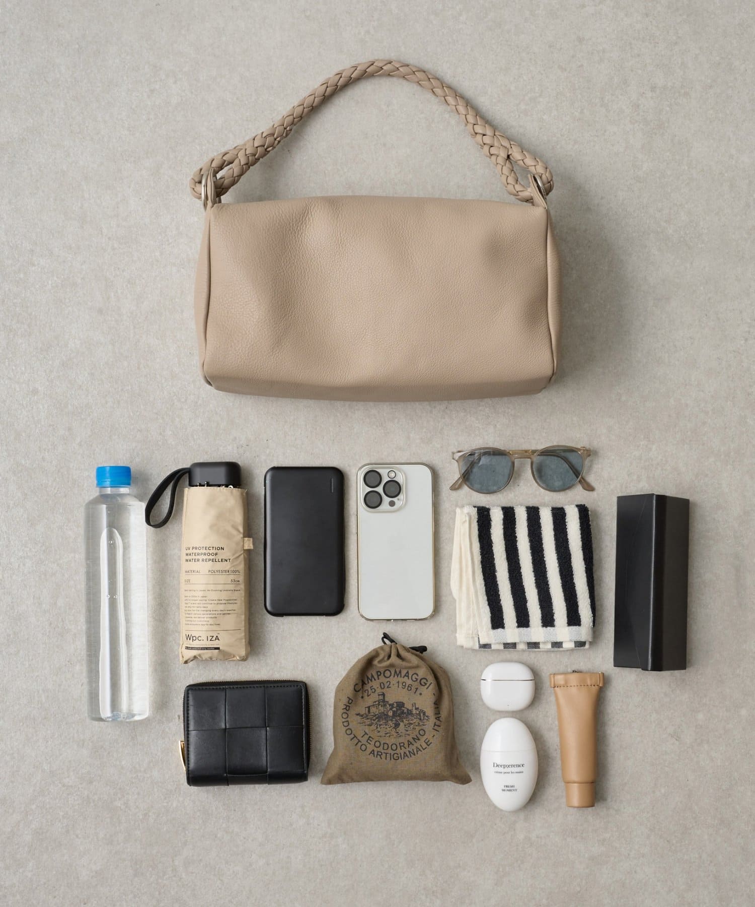 ペットボトルや折り畳み傘がすっぽりと入るサイズ感でマチもしっかりあり、