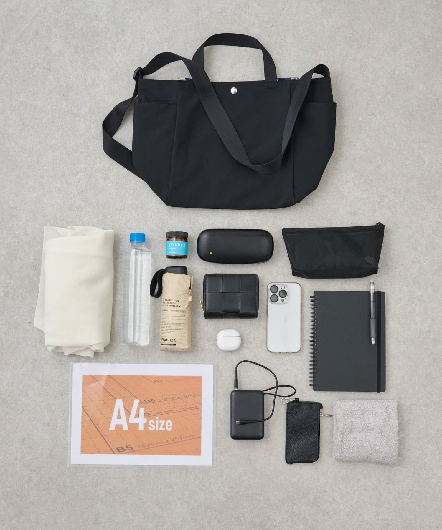 貴重品を入れられるファスナー付きポケットや、小物の整理に便利なオープンポケットが複数あり、機能的にも優れたアイテム。
