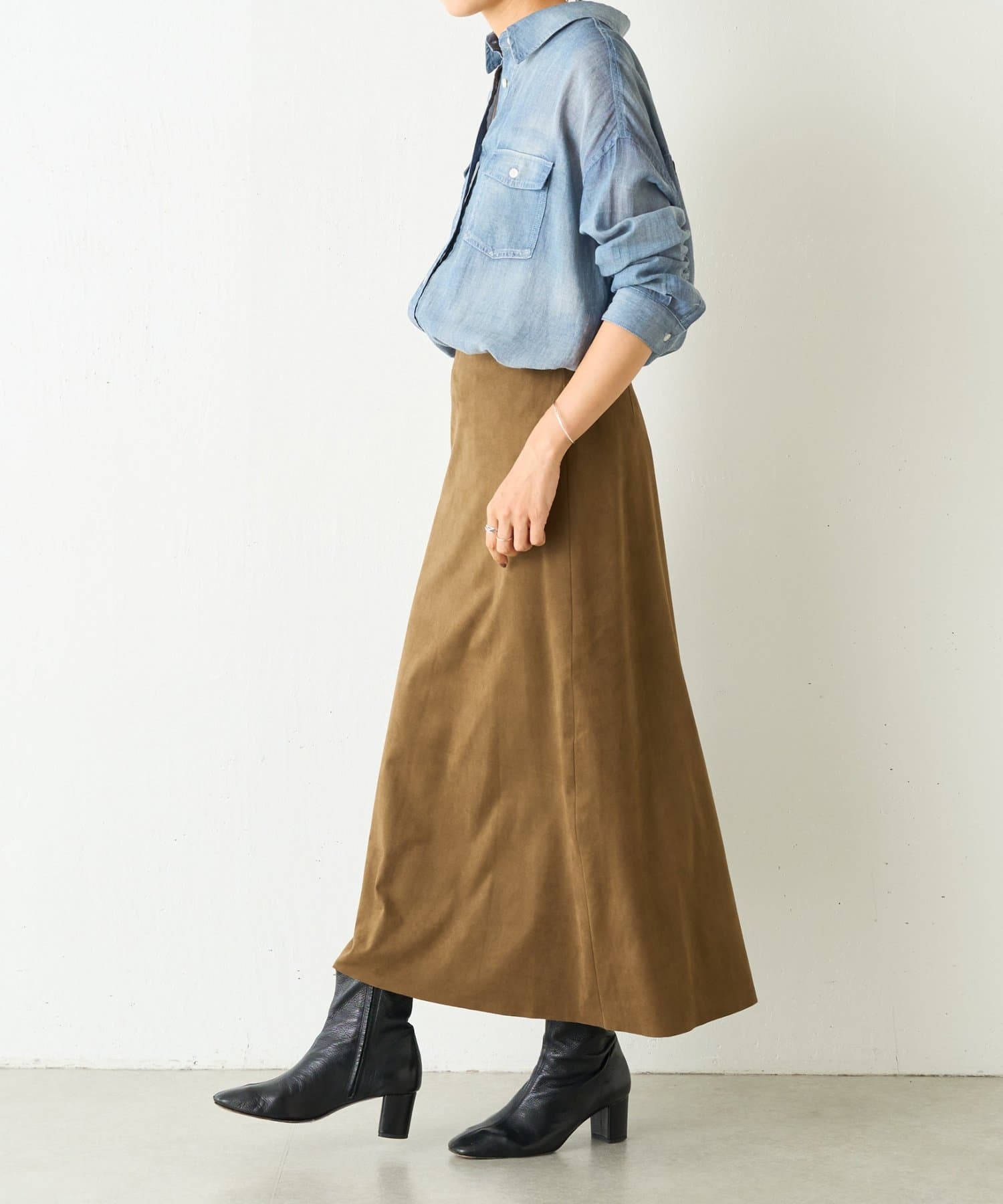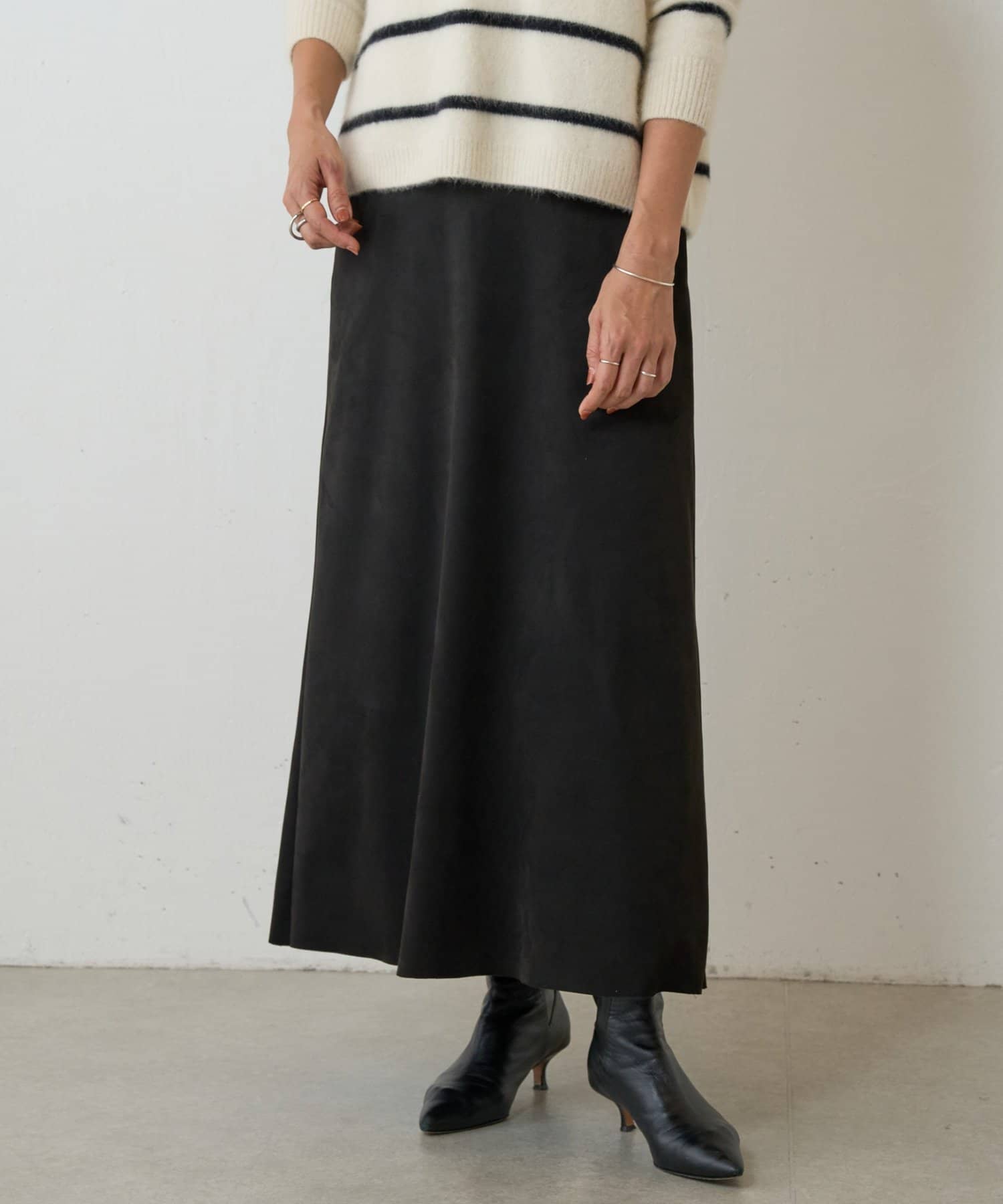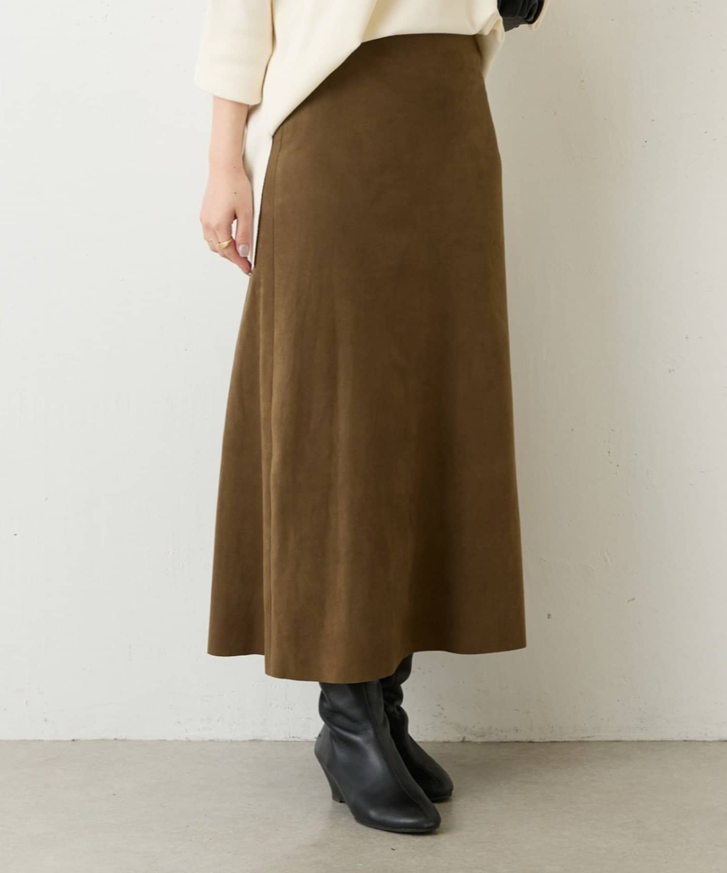 流れるような美しいマーメイドシルエットが魅力のバックテールスカートにスエード調素材が登場。