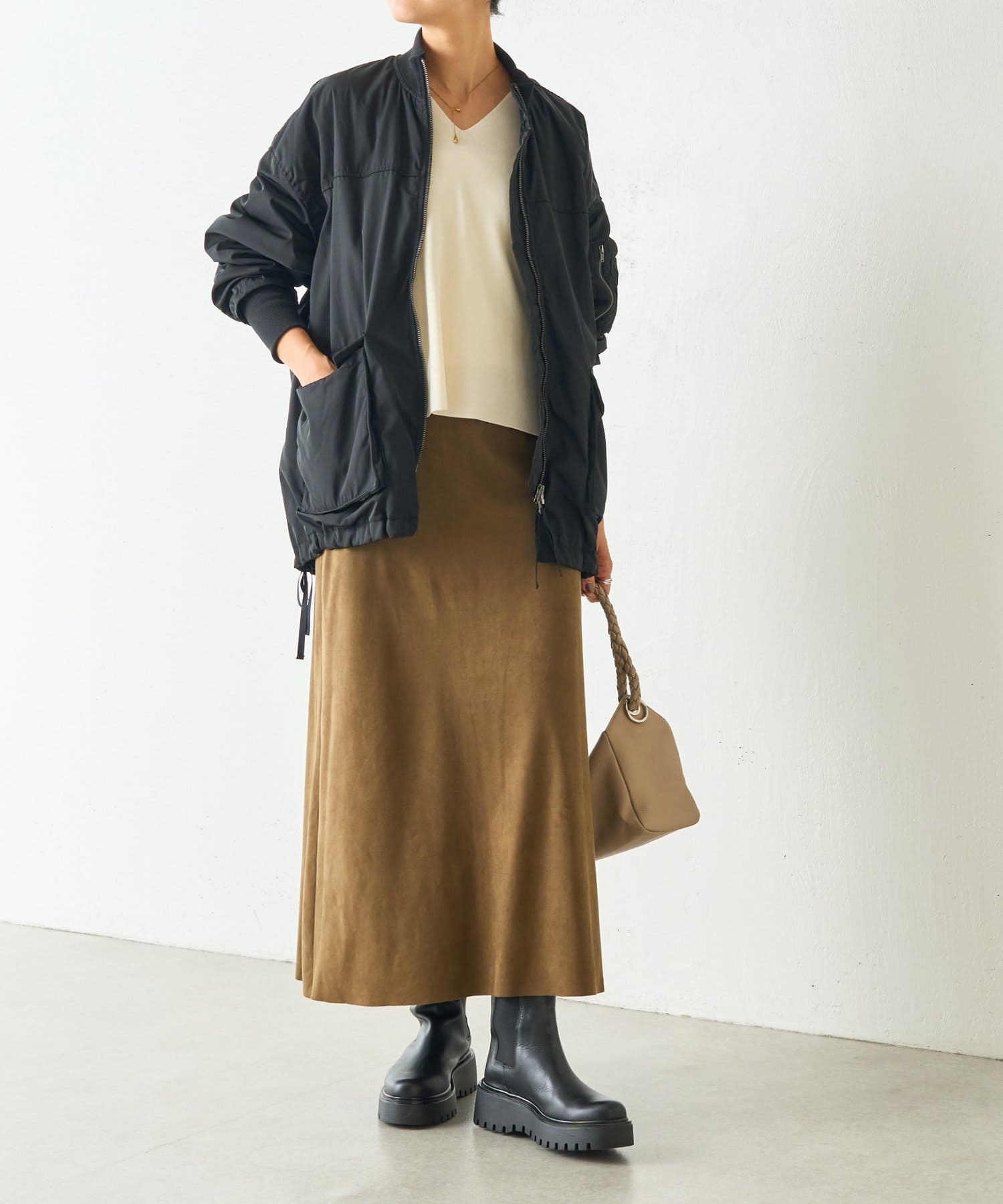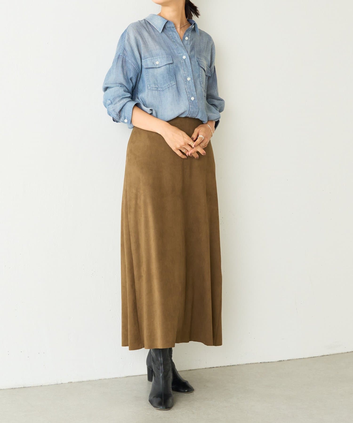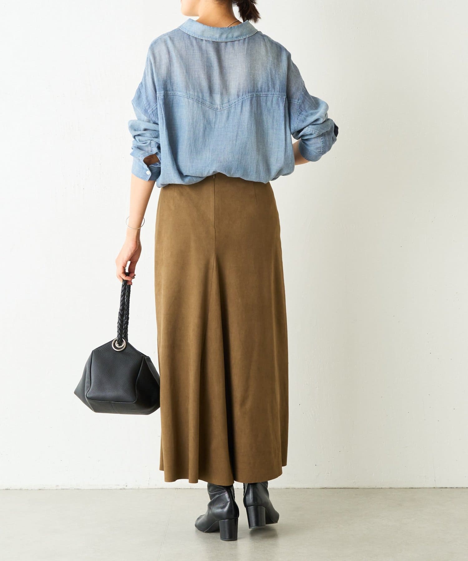 流れるような美しいマーメイドシルエットが魅力のバックテールスカートにスエード調素材が登場。