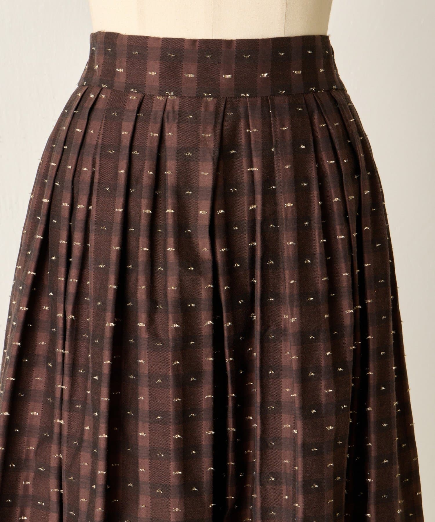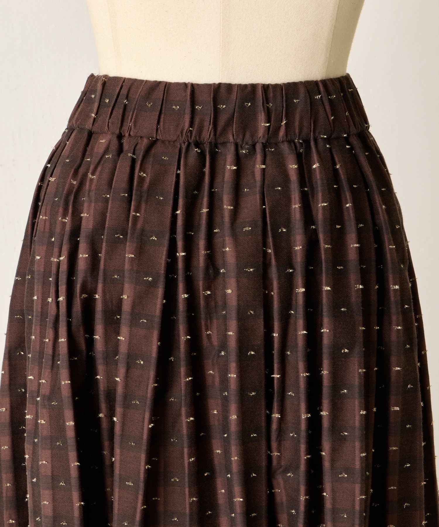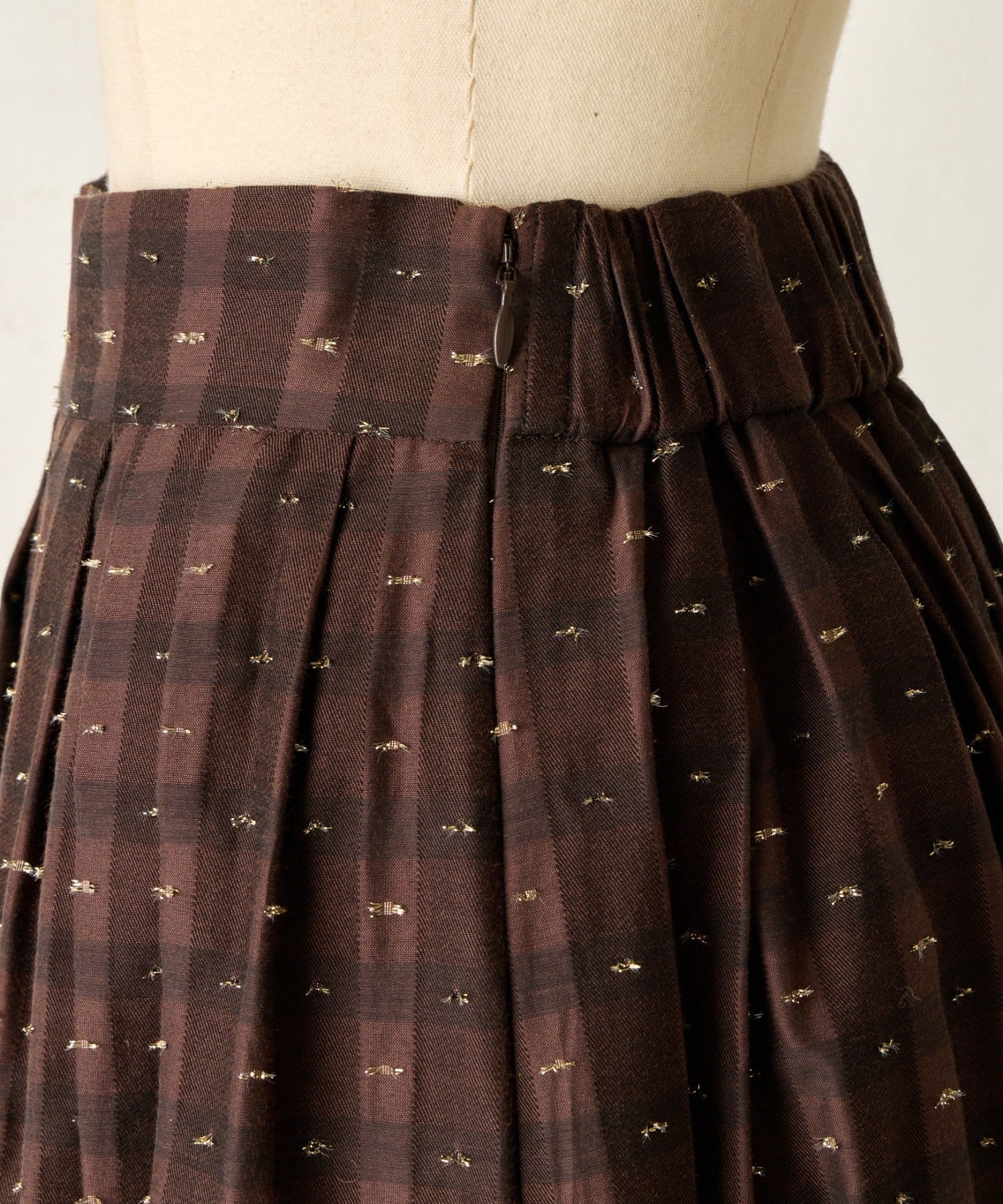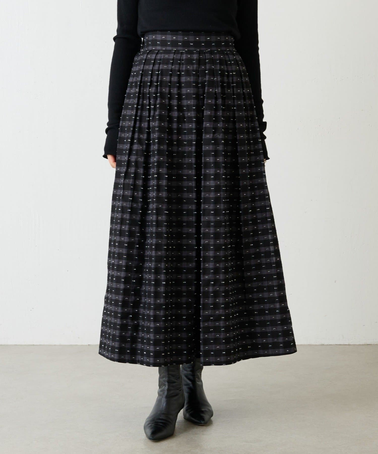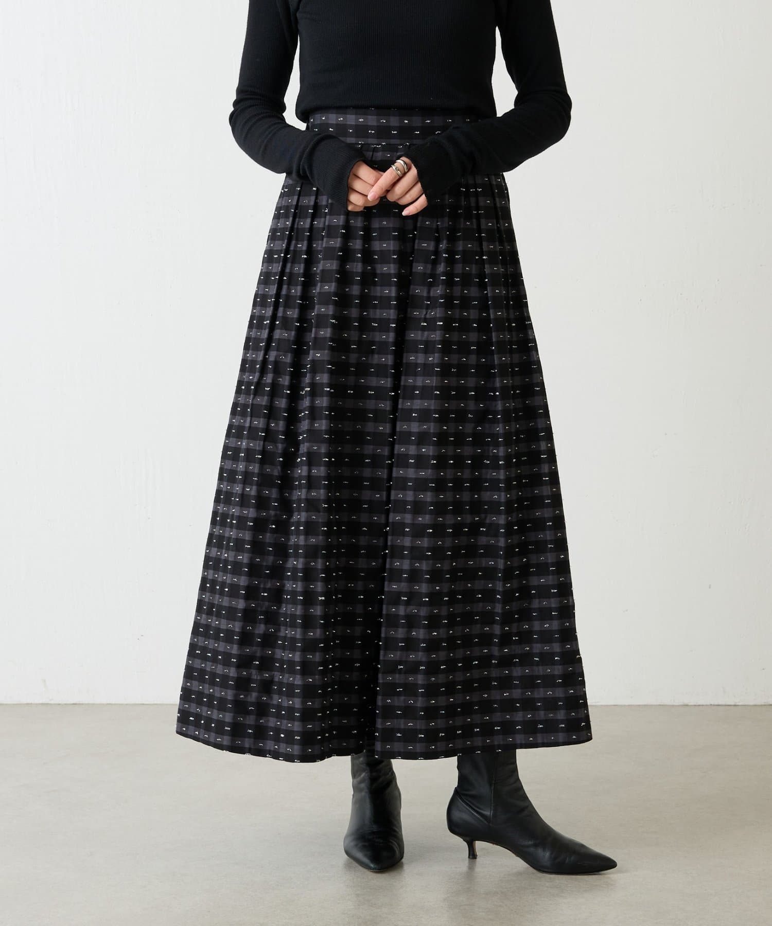 繊細な先染めチェックに、さりげないラメ糸が上品なタックスカート。