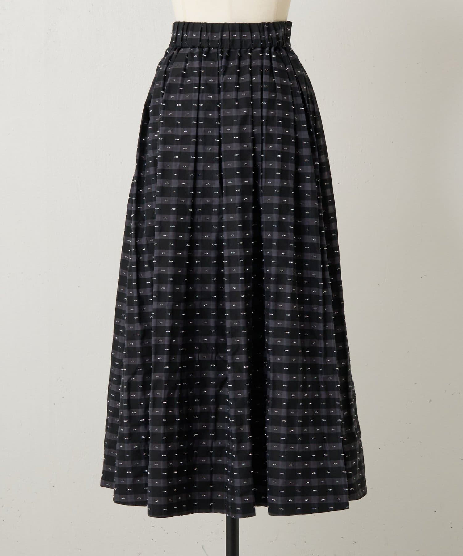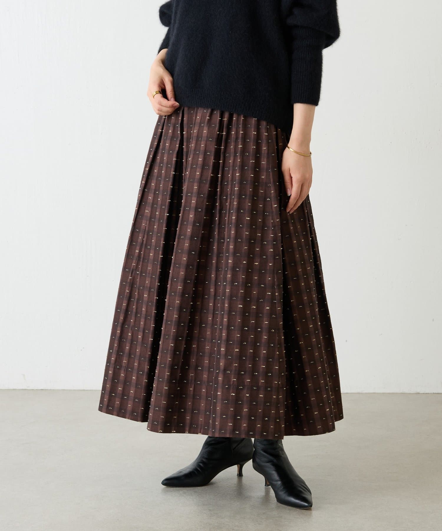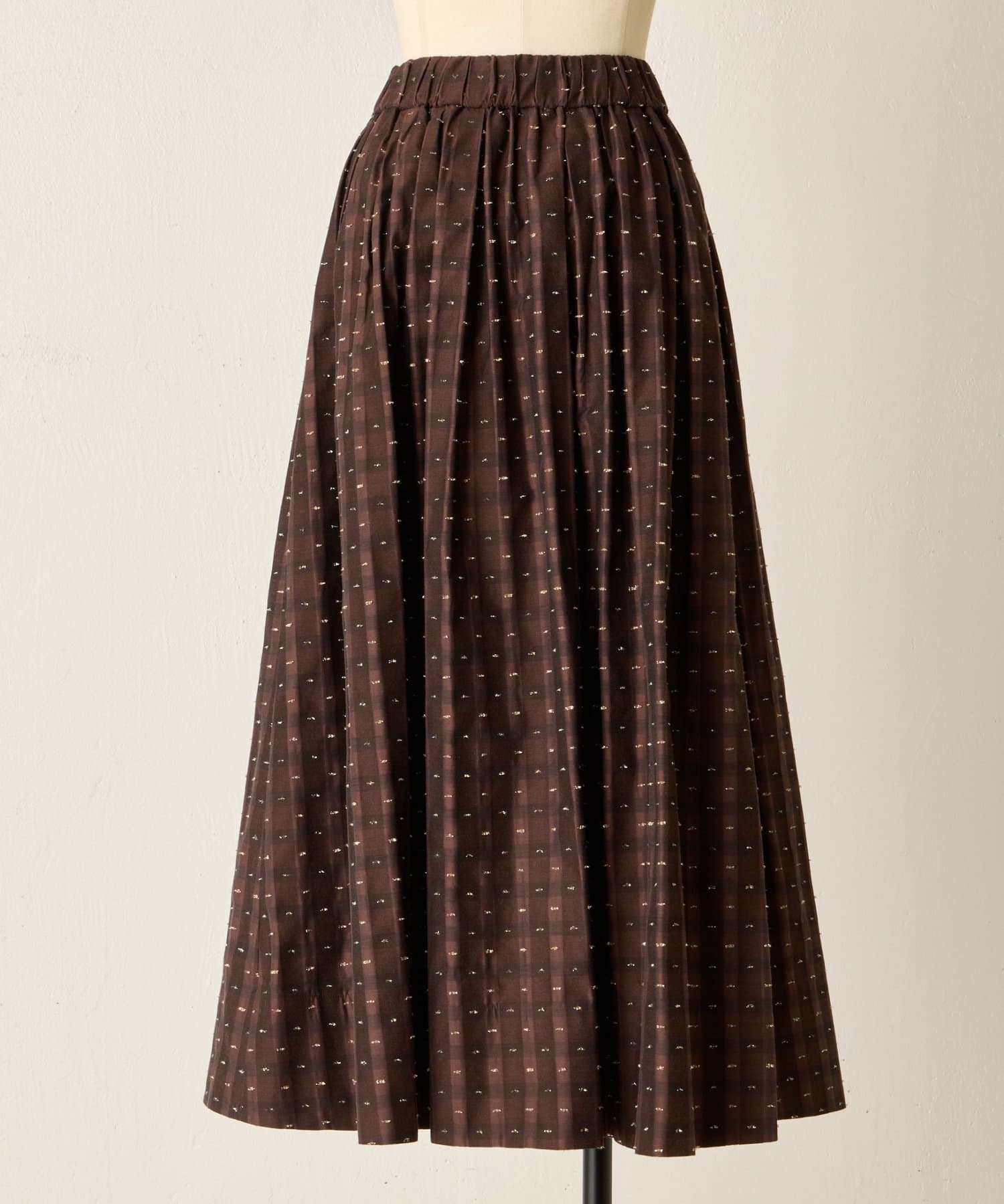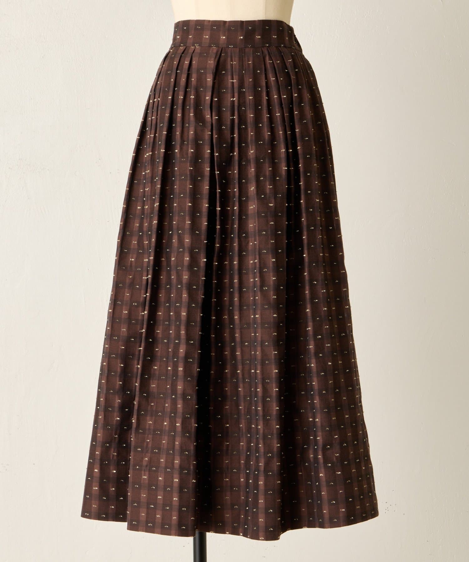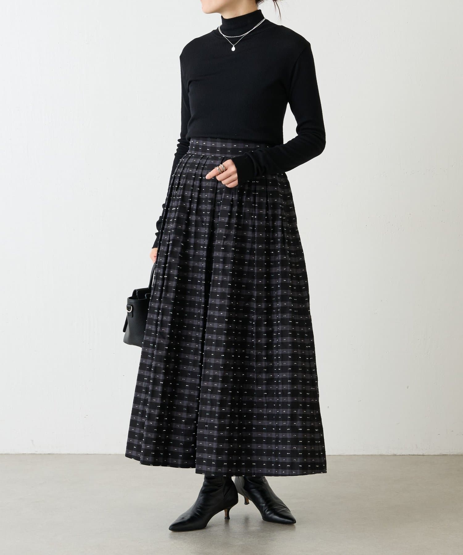 繊細な先染めチェックに、さりげないラメ糸が上品なタックスカート。