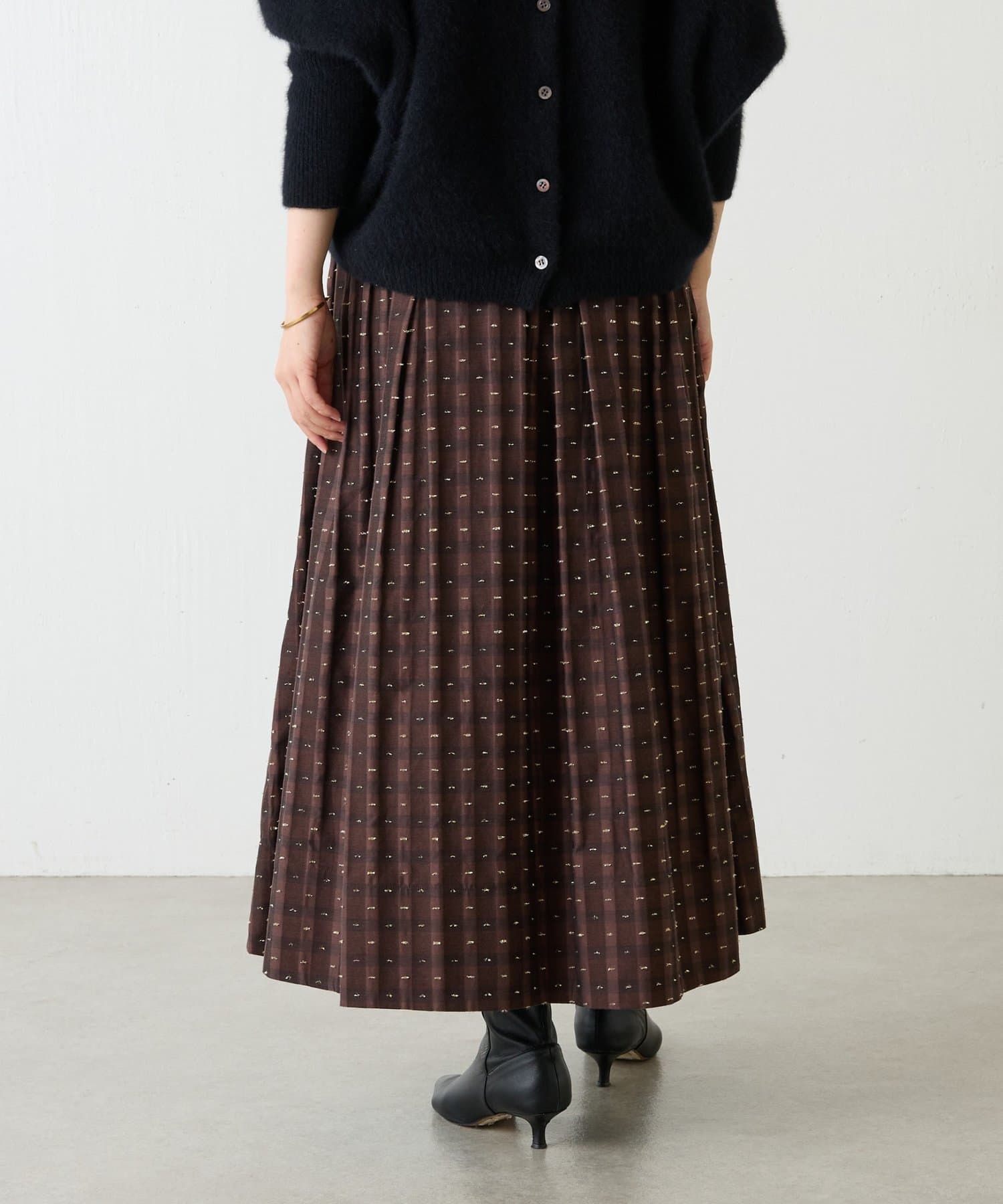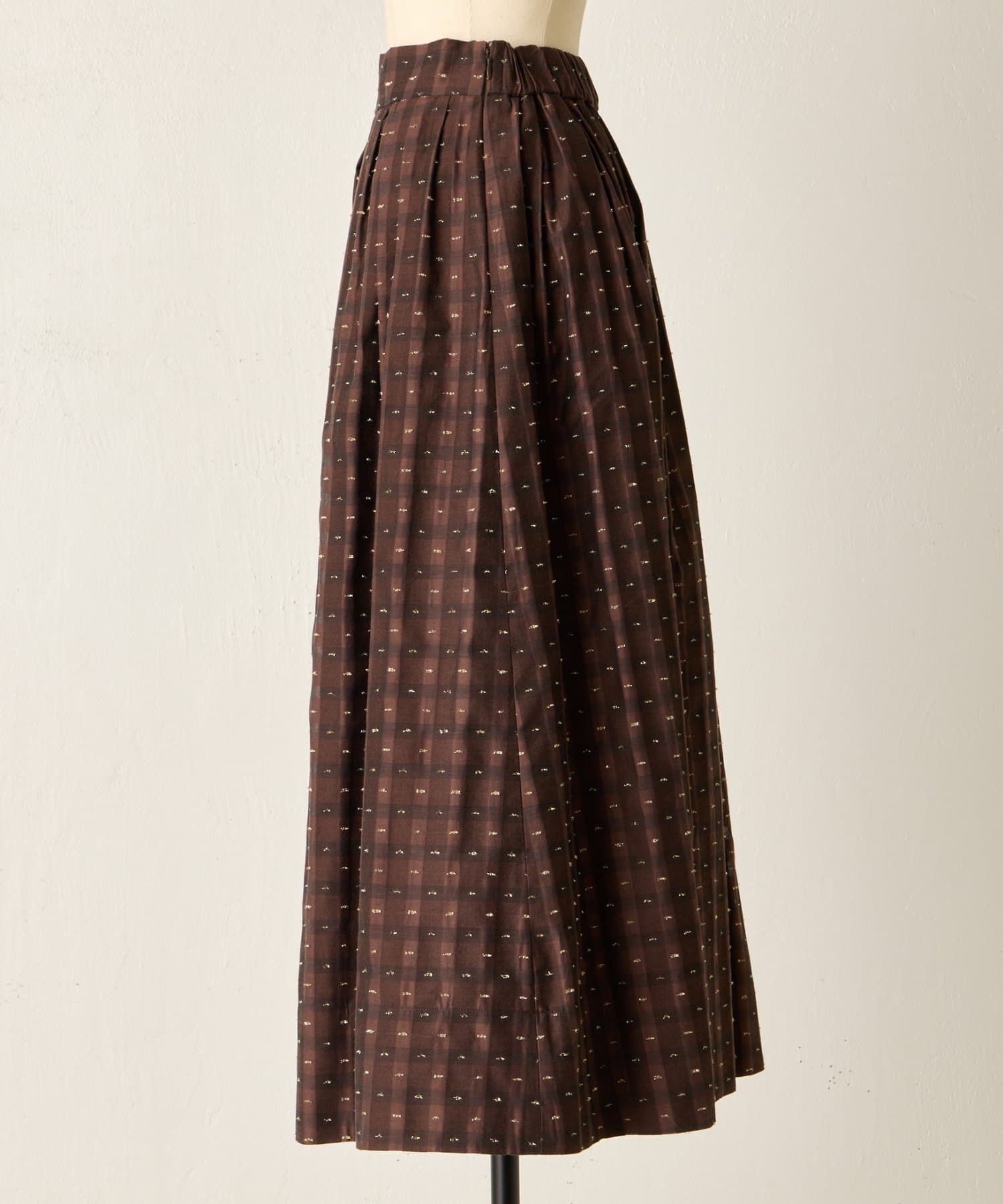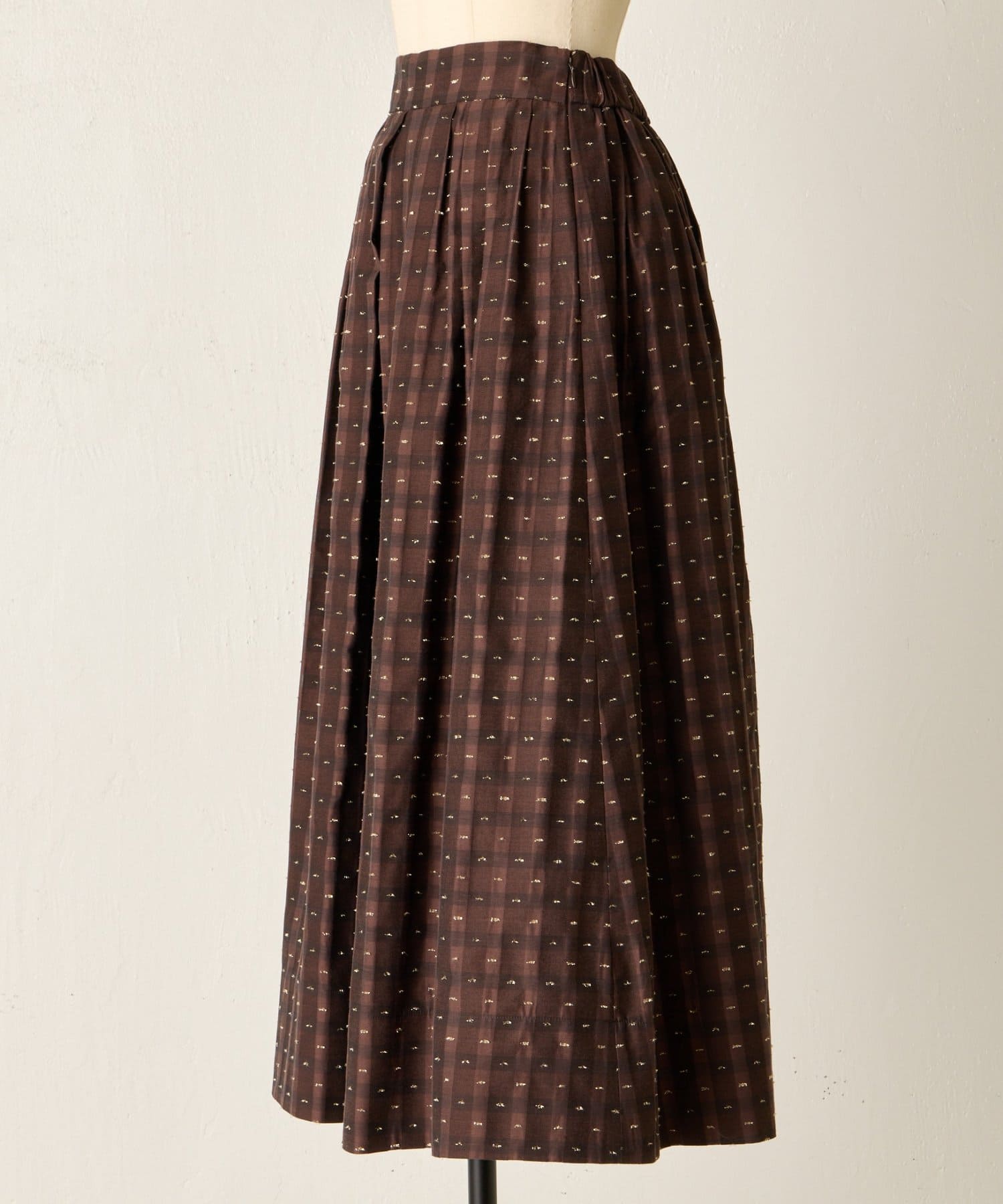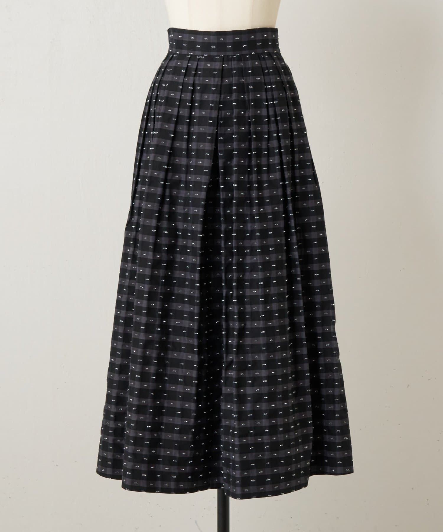 繊細な先染めチェックに、さりげないラメ糸が上品なタックスカート。