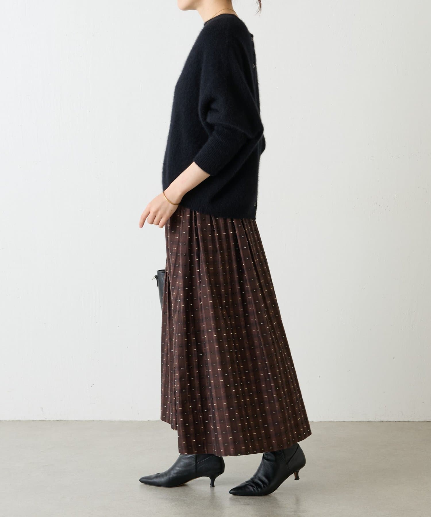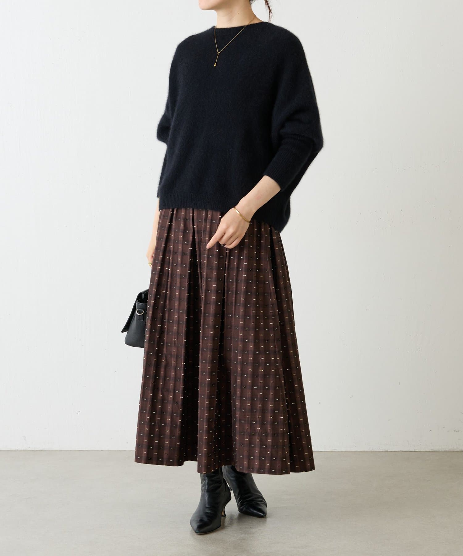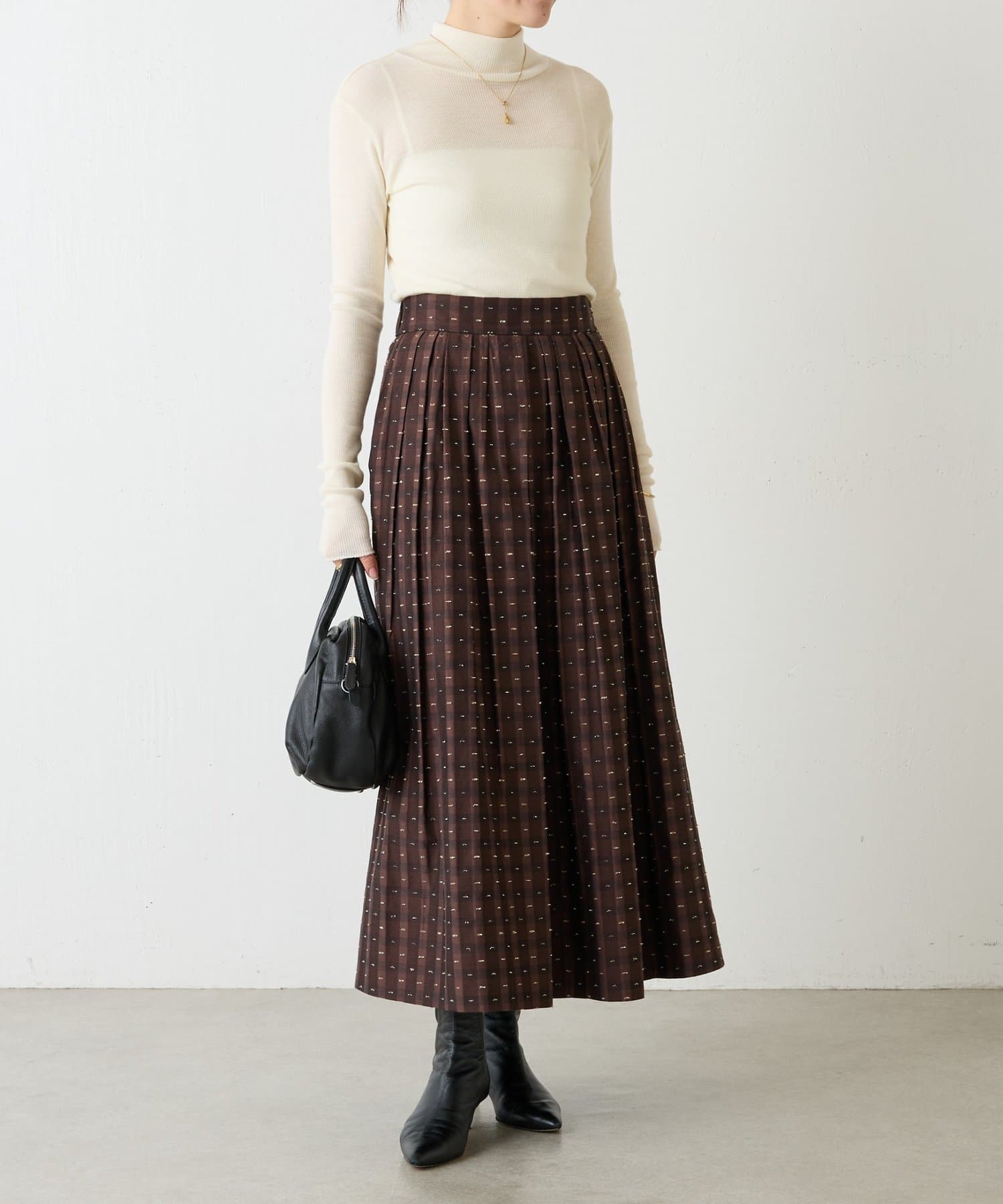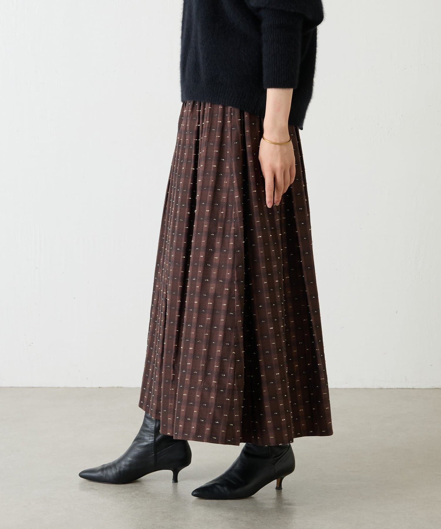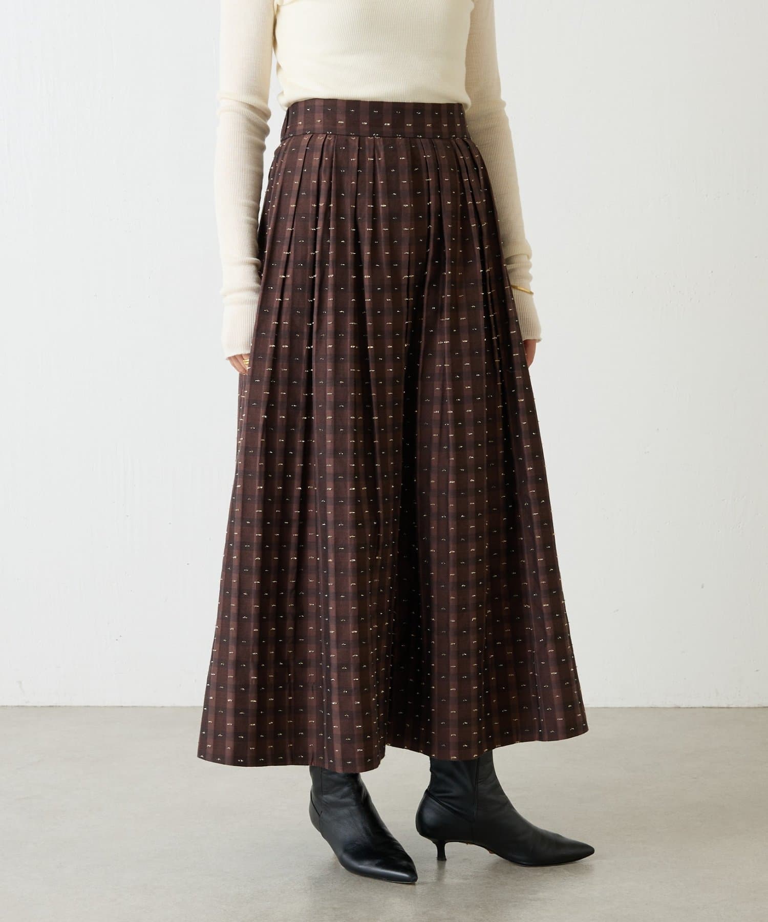 繊細な先染めチェックに、さりげないラメ糸が上品なタックスカート。