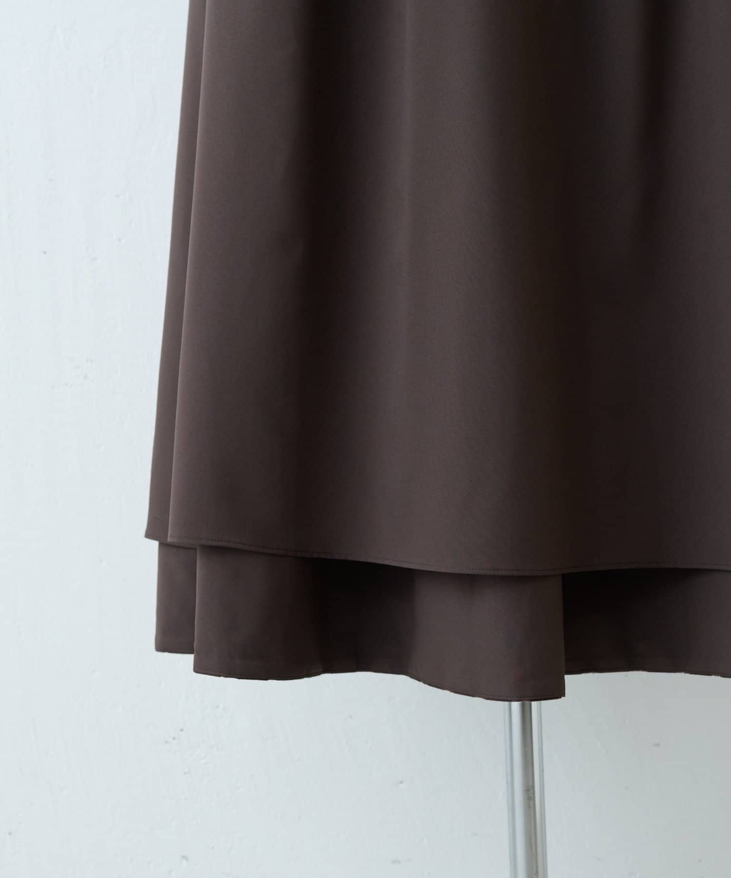 裏地は少し短めに設定することで、足元が程よく透けてロング丈でも軽やかな印象に。