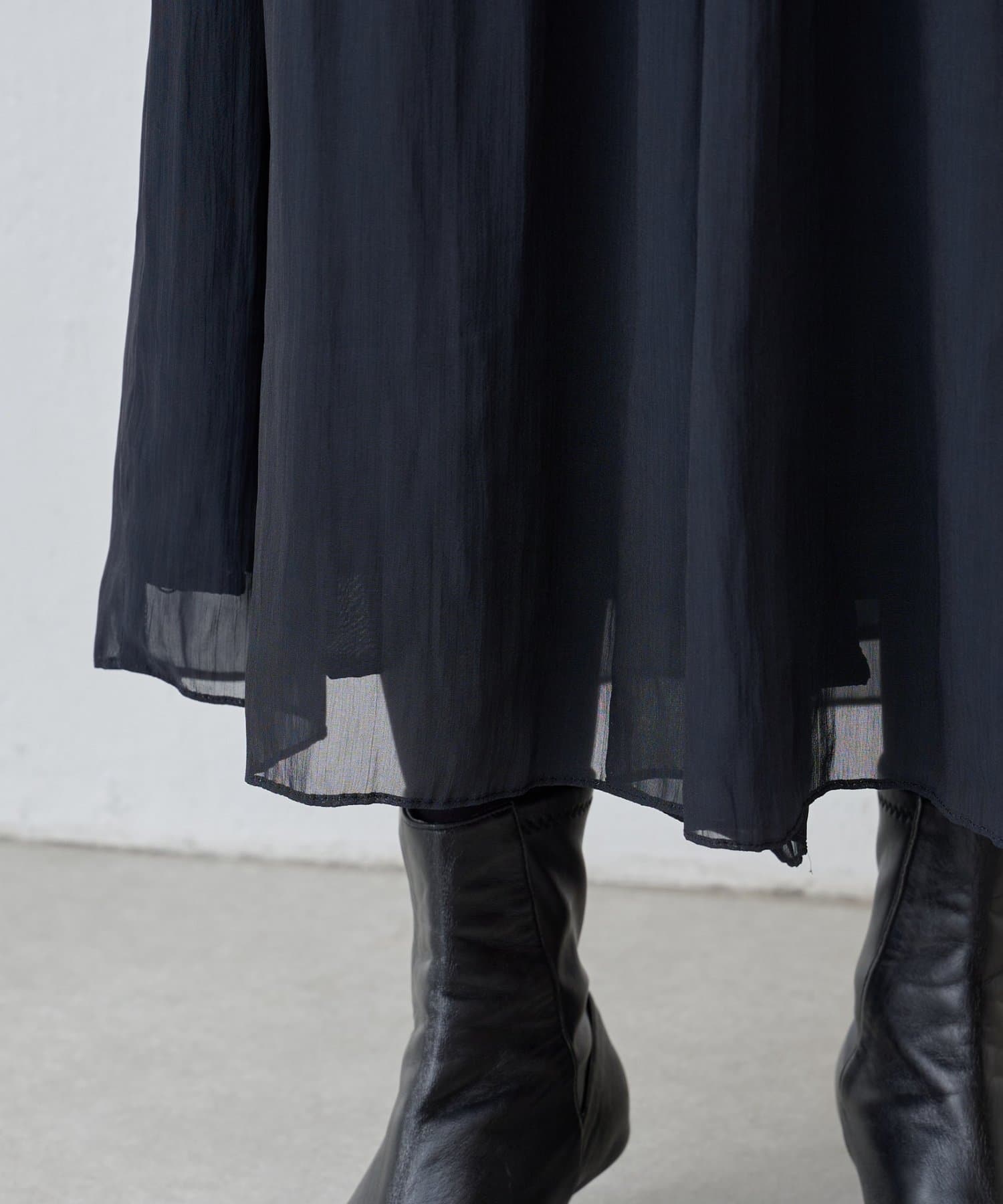 裏地付きでまとわりつかず、シフォン特有の落ち感が腰まわりをやさしくカバーします。