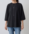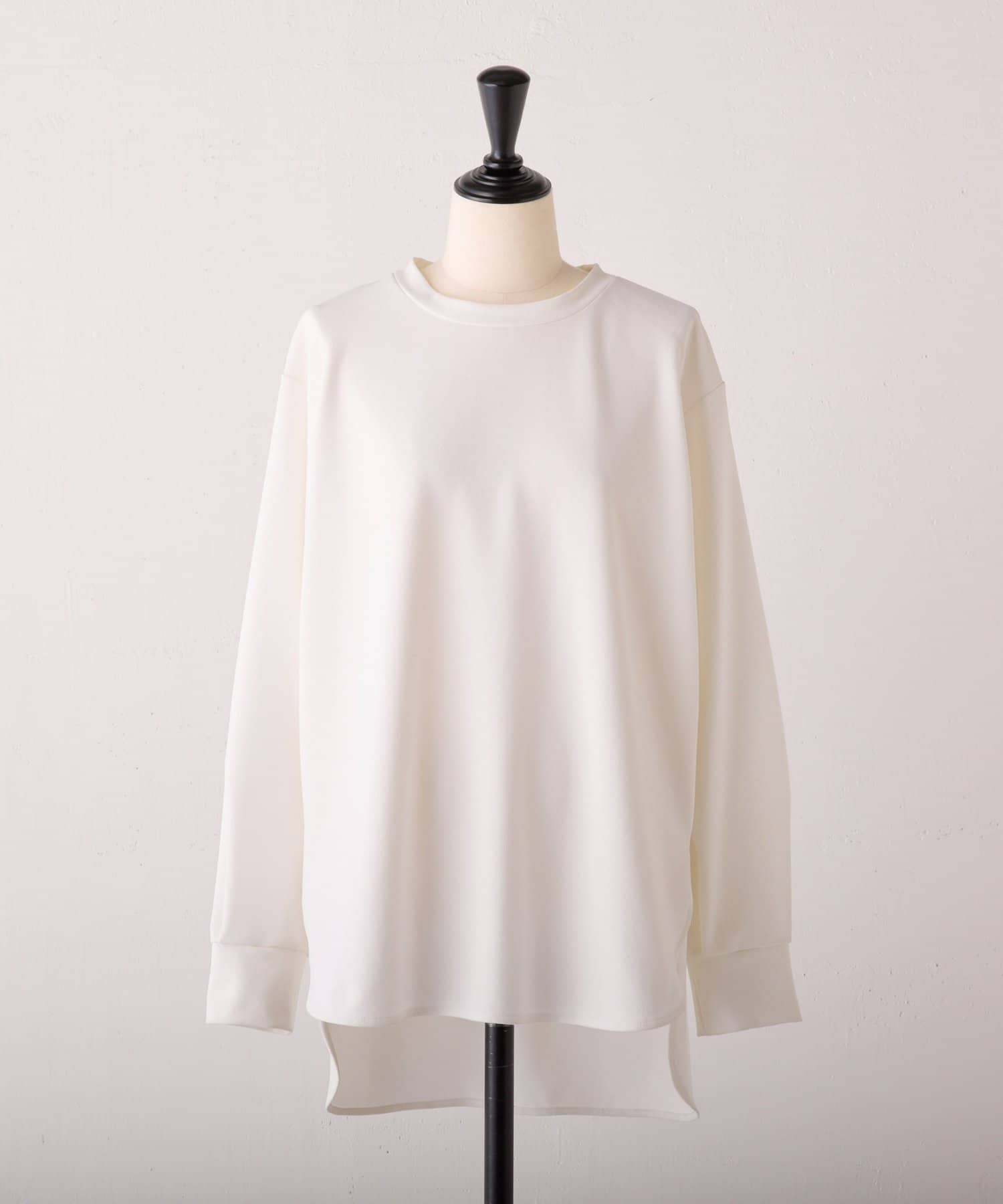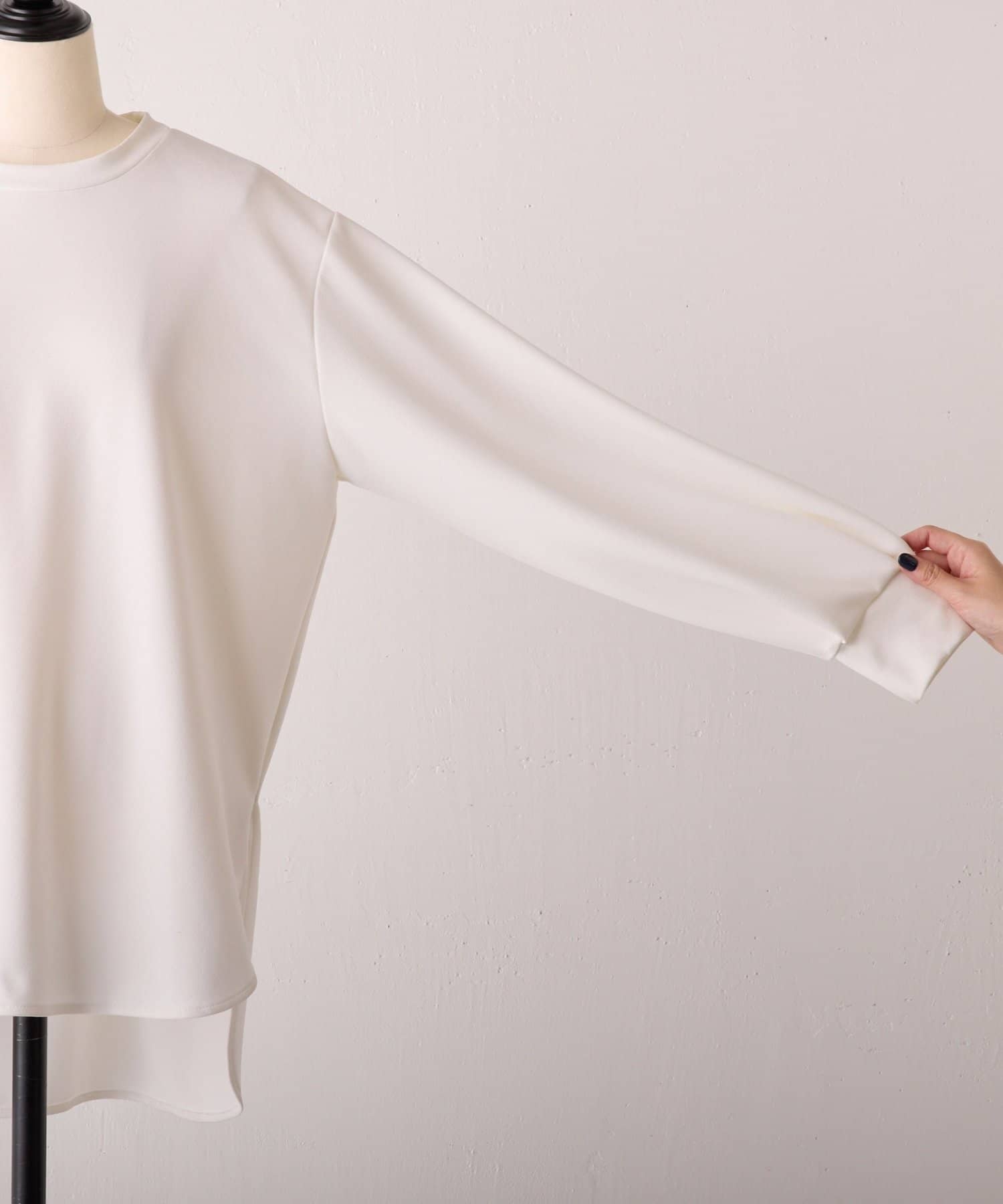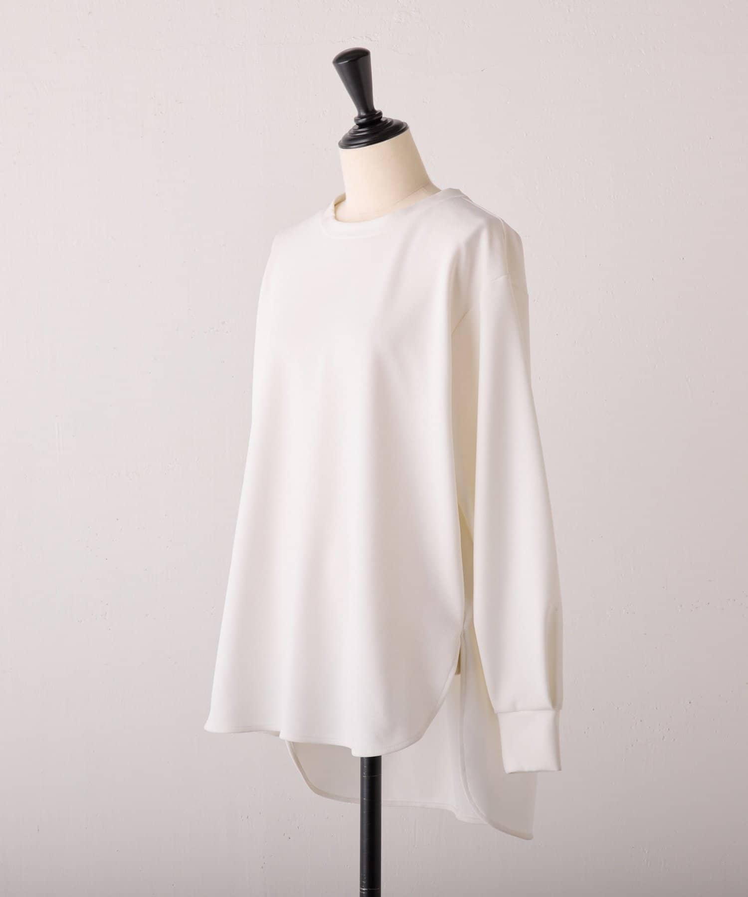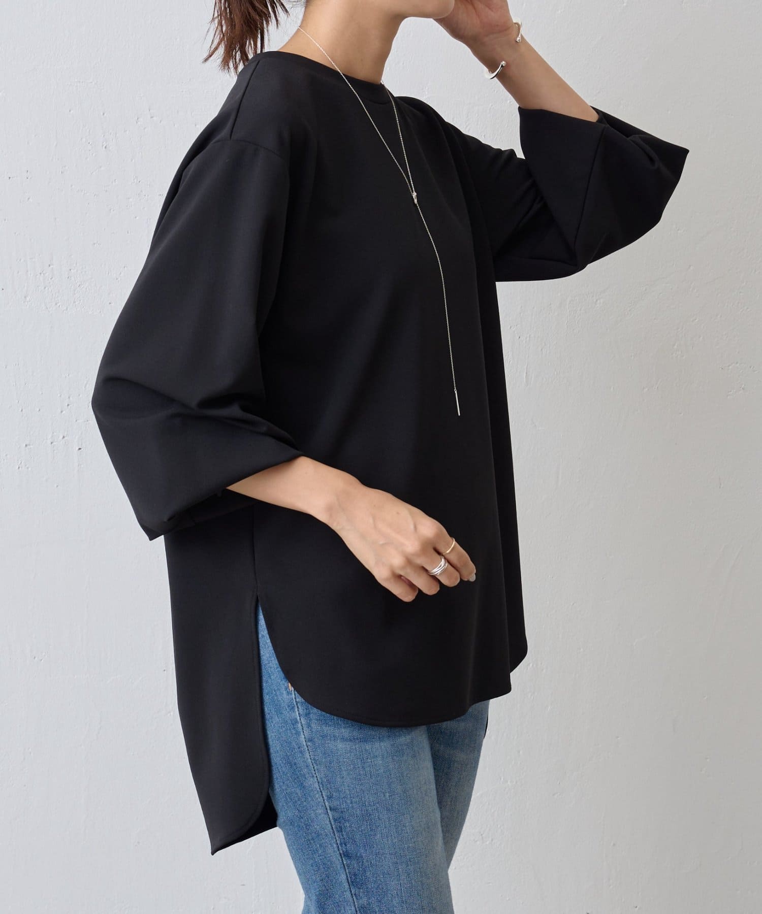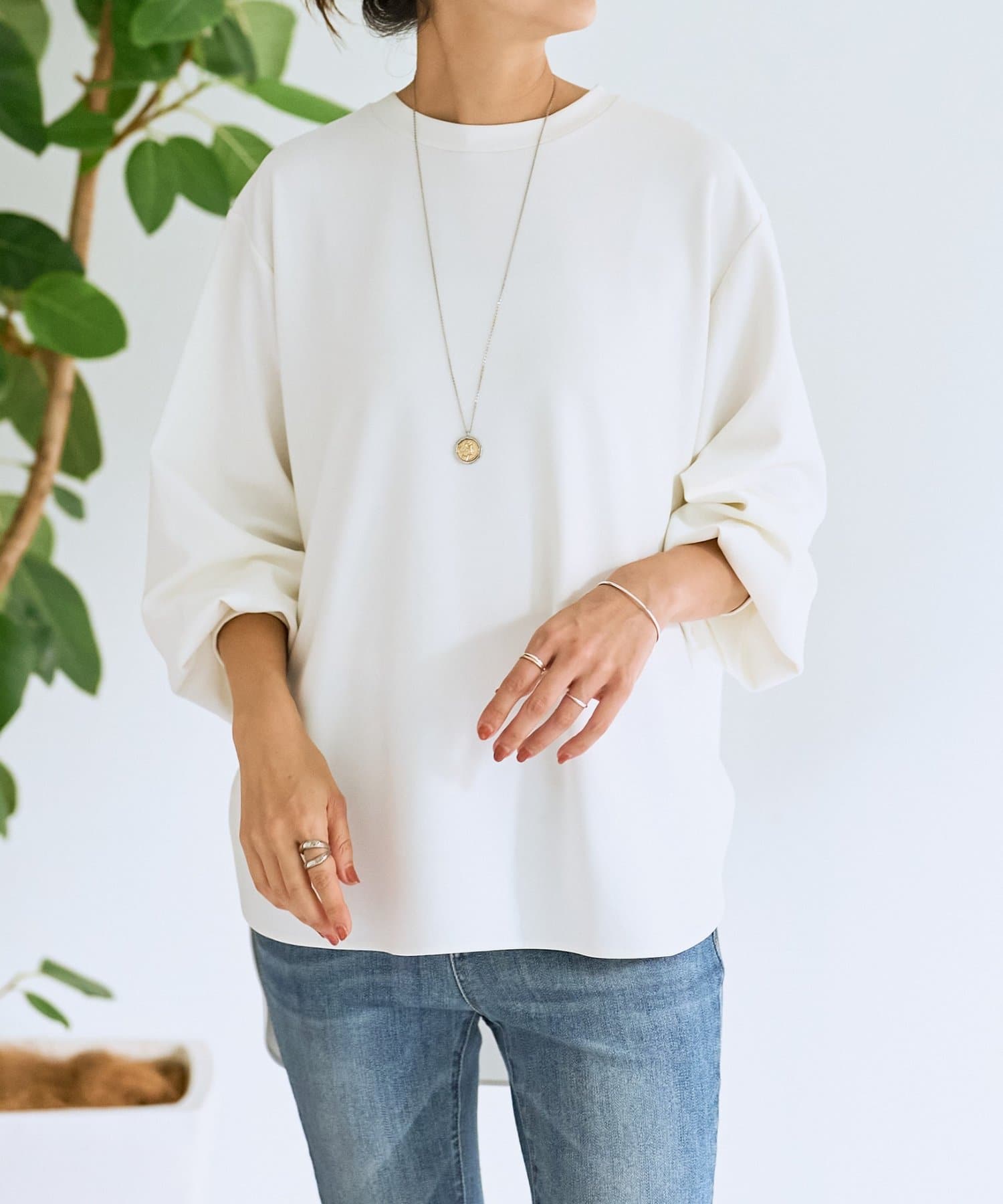 程よい厚みのある生地で透けにくく、カットソーよりも上品な印象に。