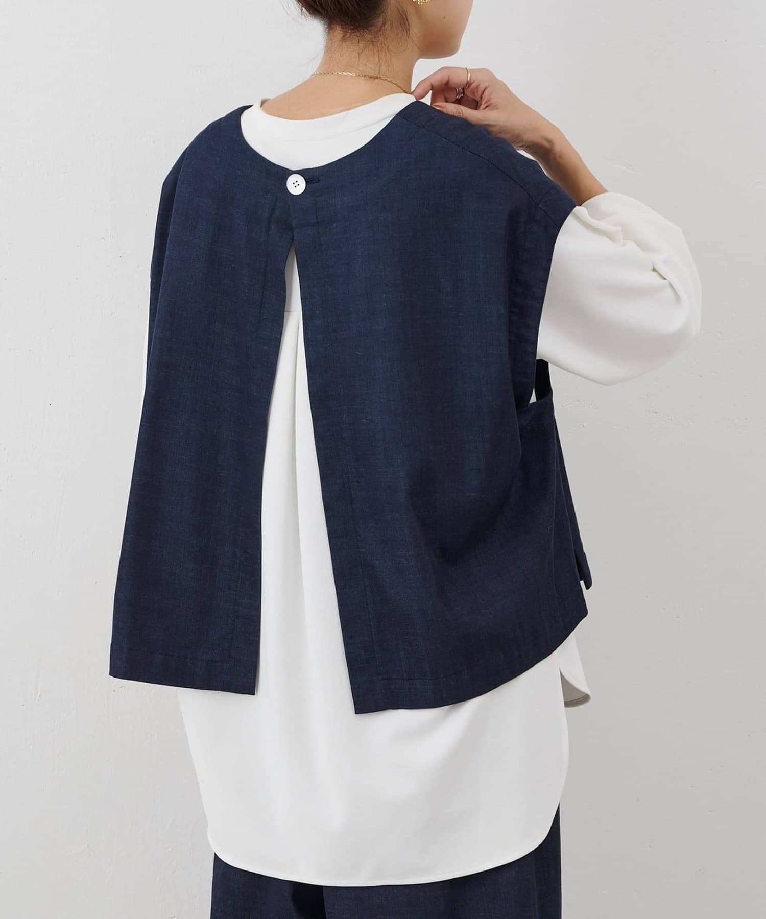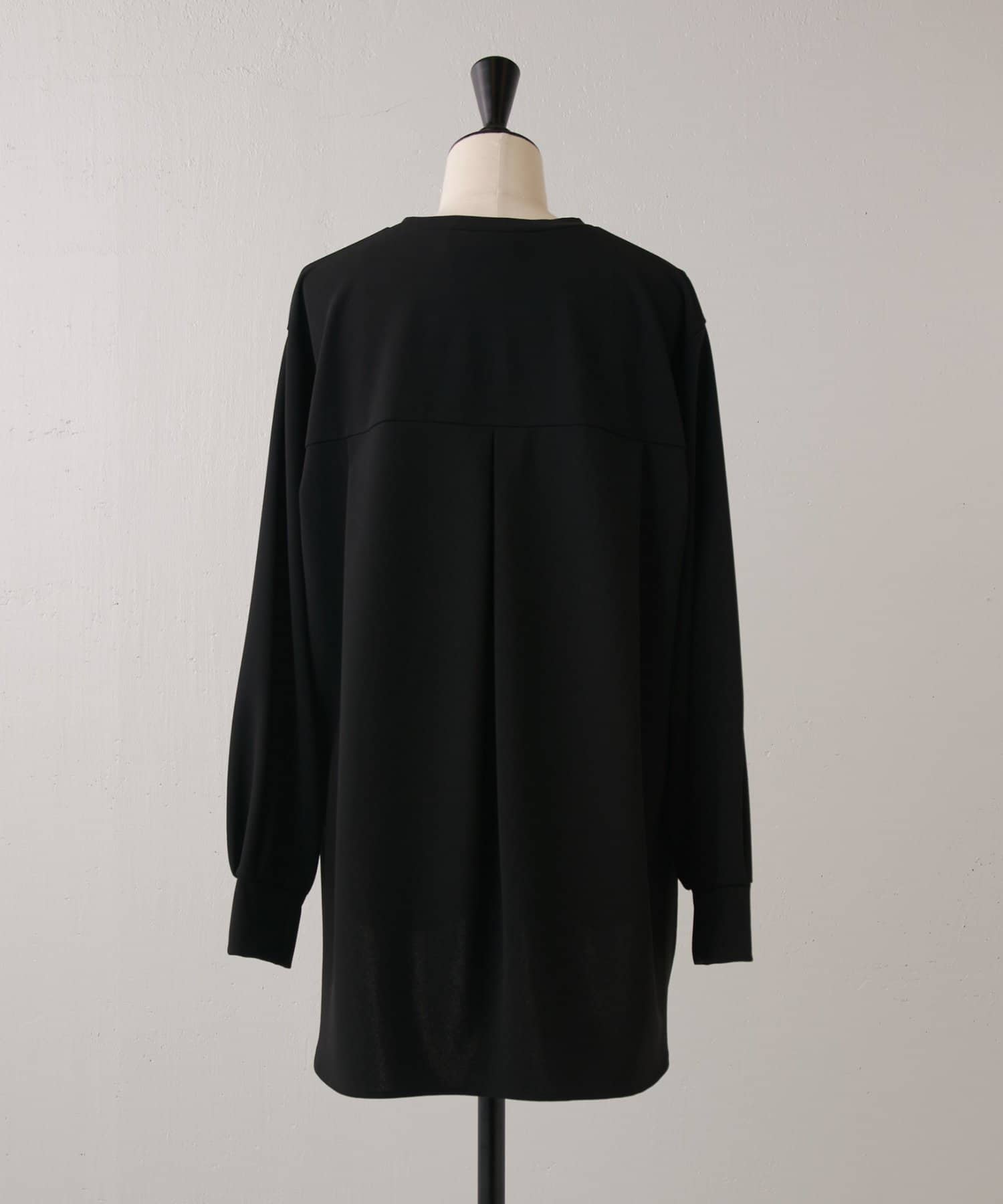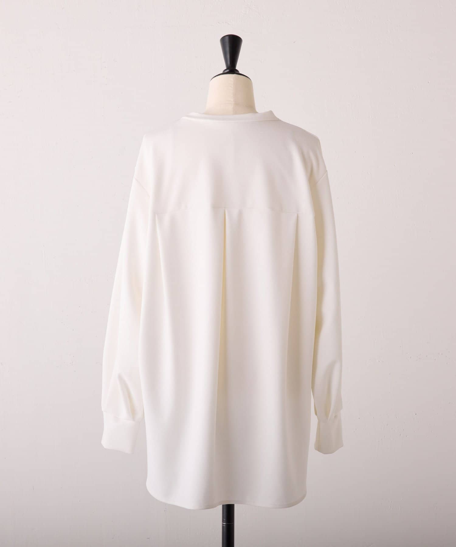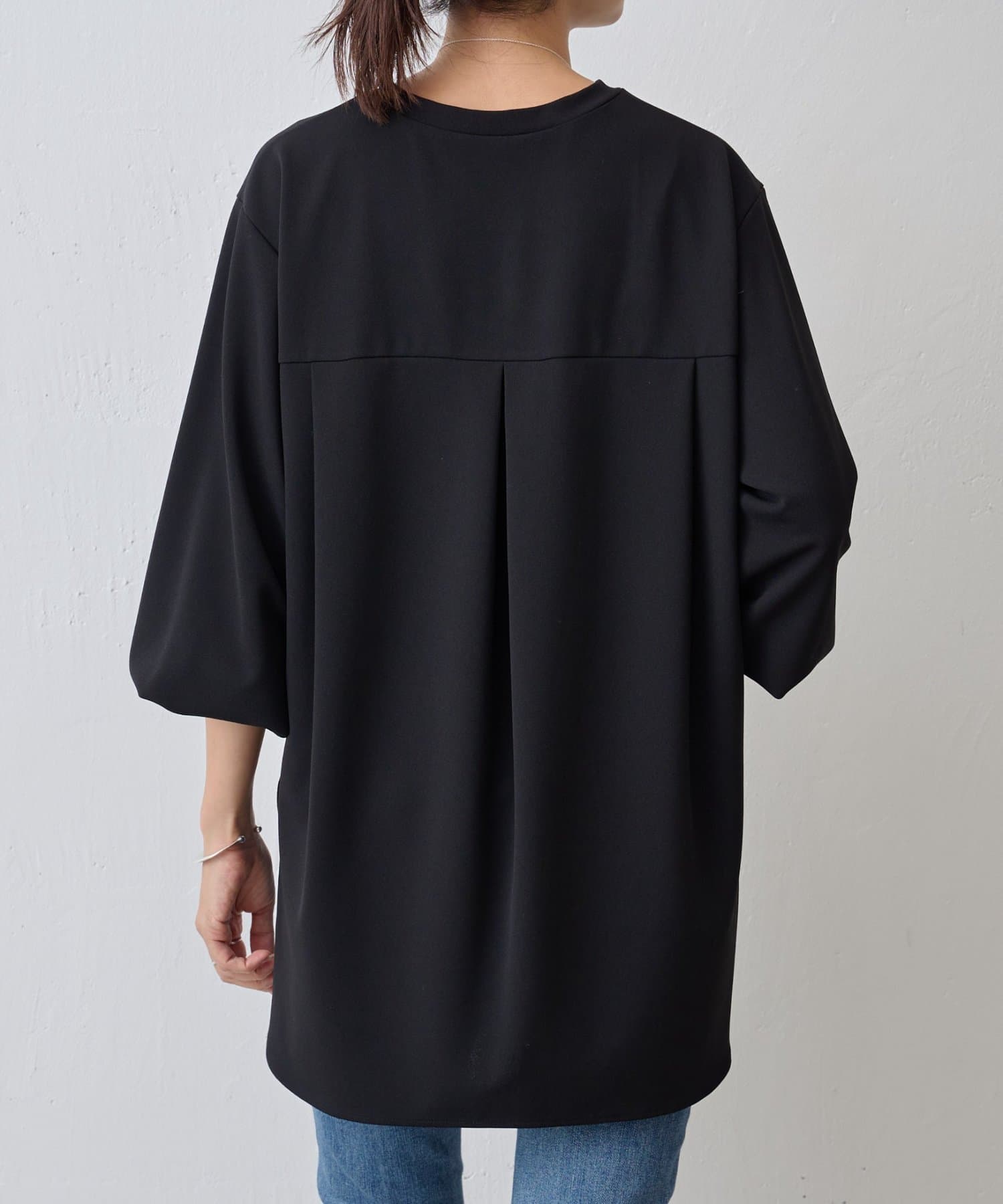 背中のヨークに入れたタックが立体感を生み、体のラインを拾いにくいのも嬉しいポイント。
