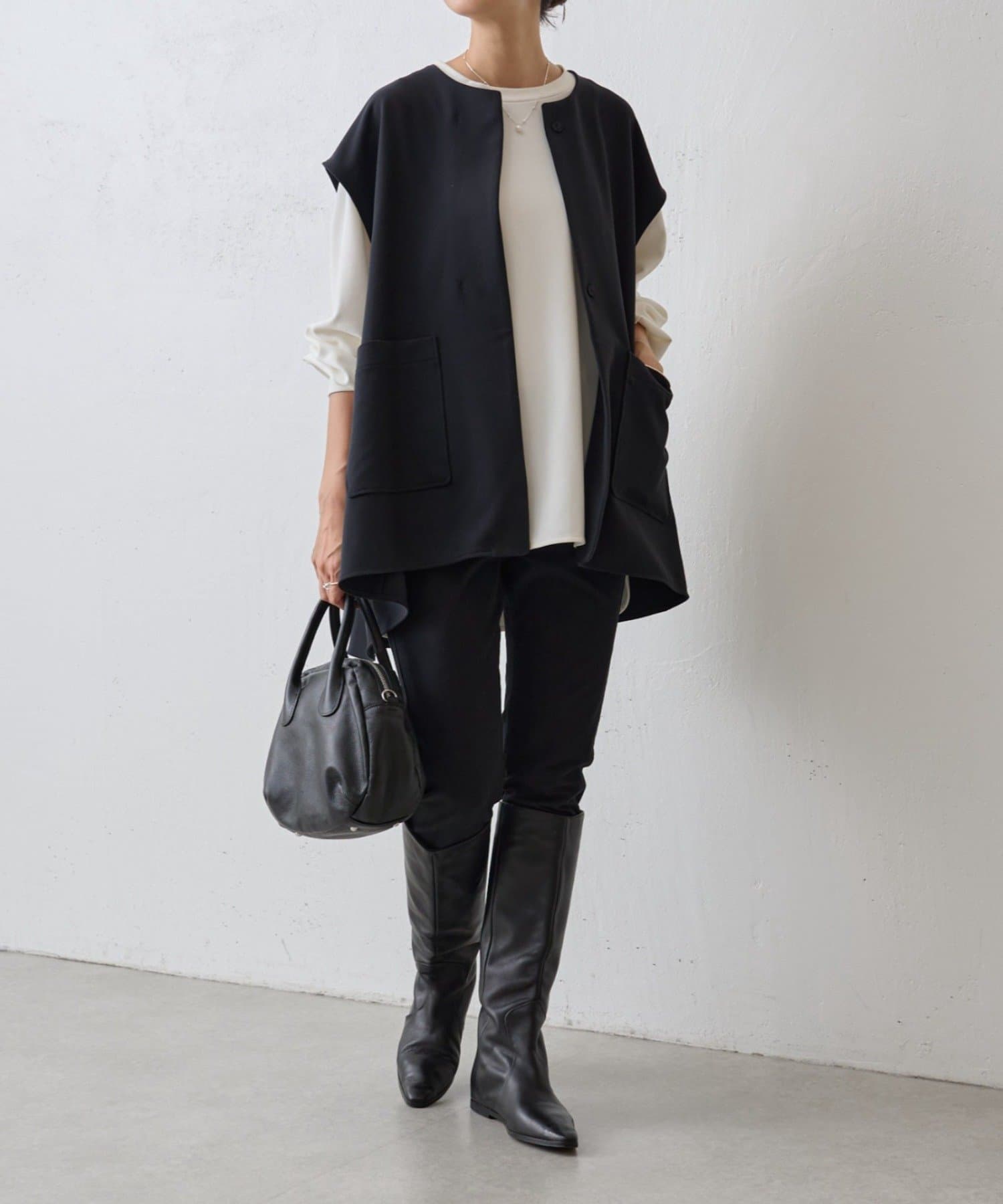 ニットに重ねても、ベストを合わせても、1枚でも、キレイに着れる。