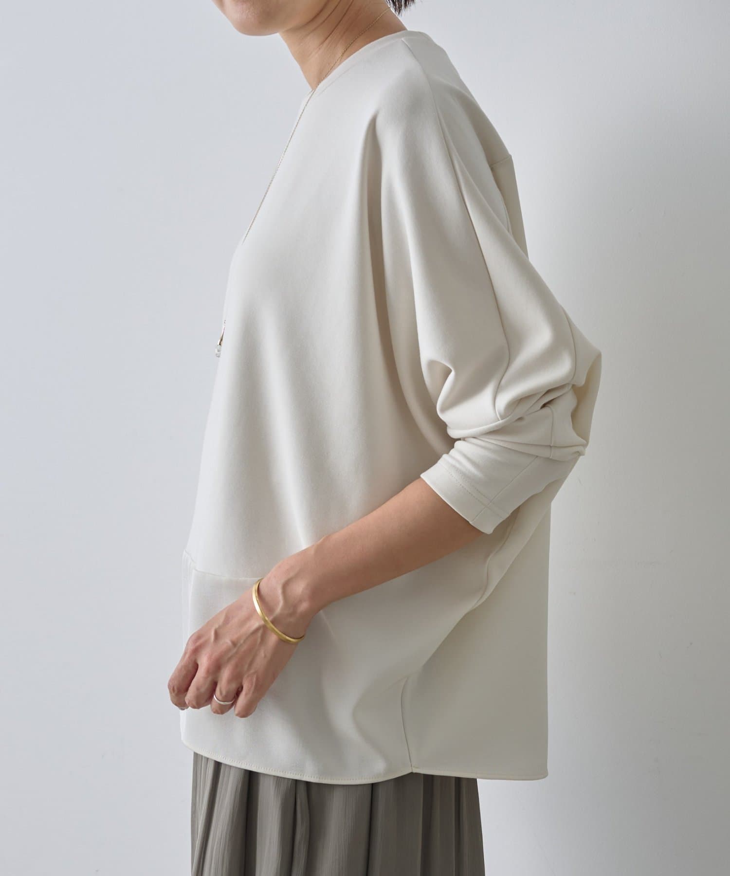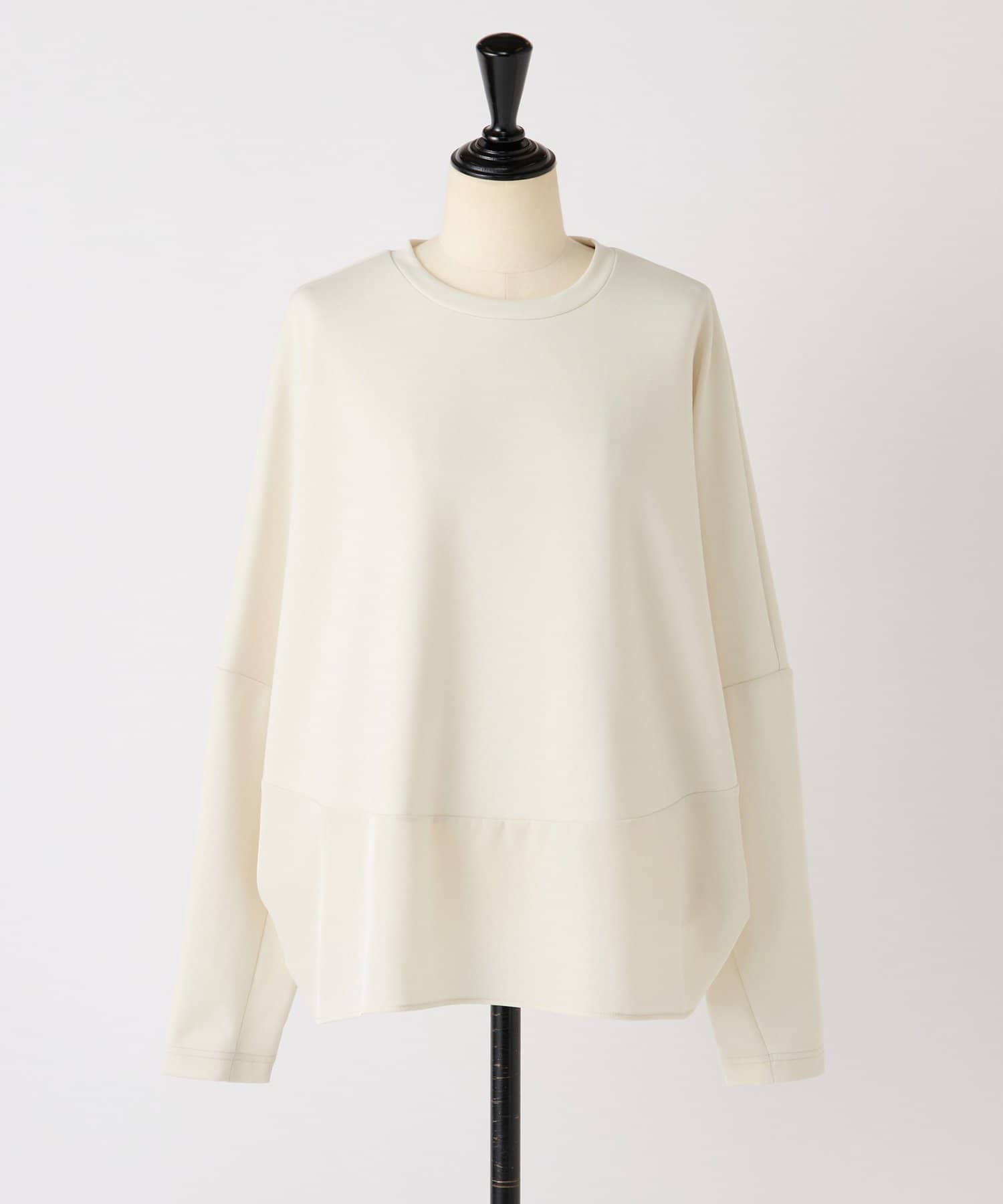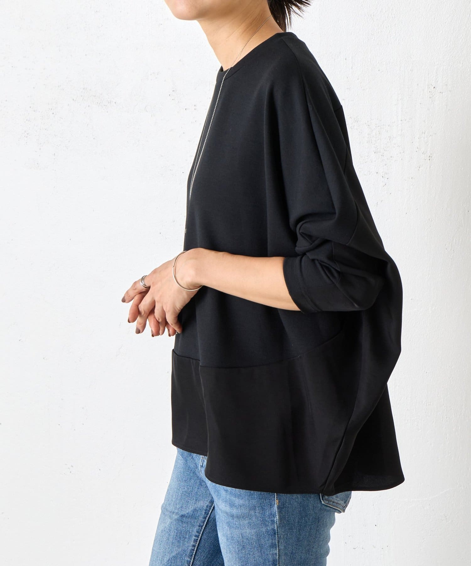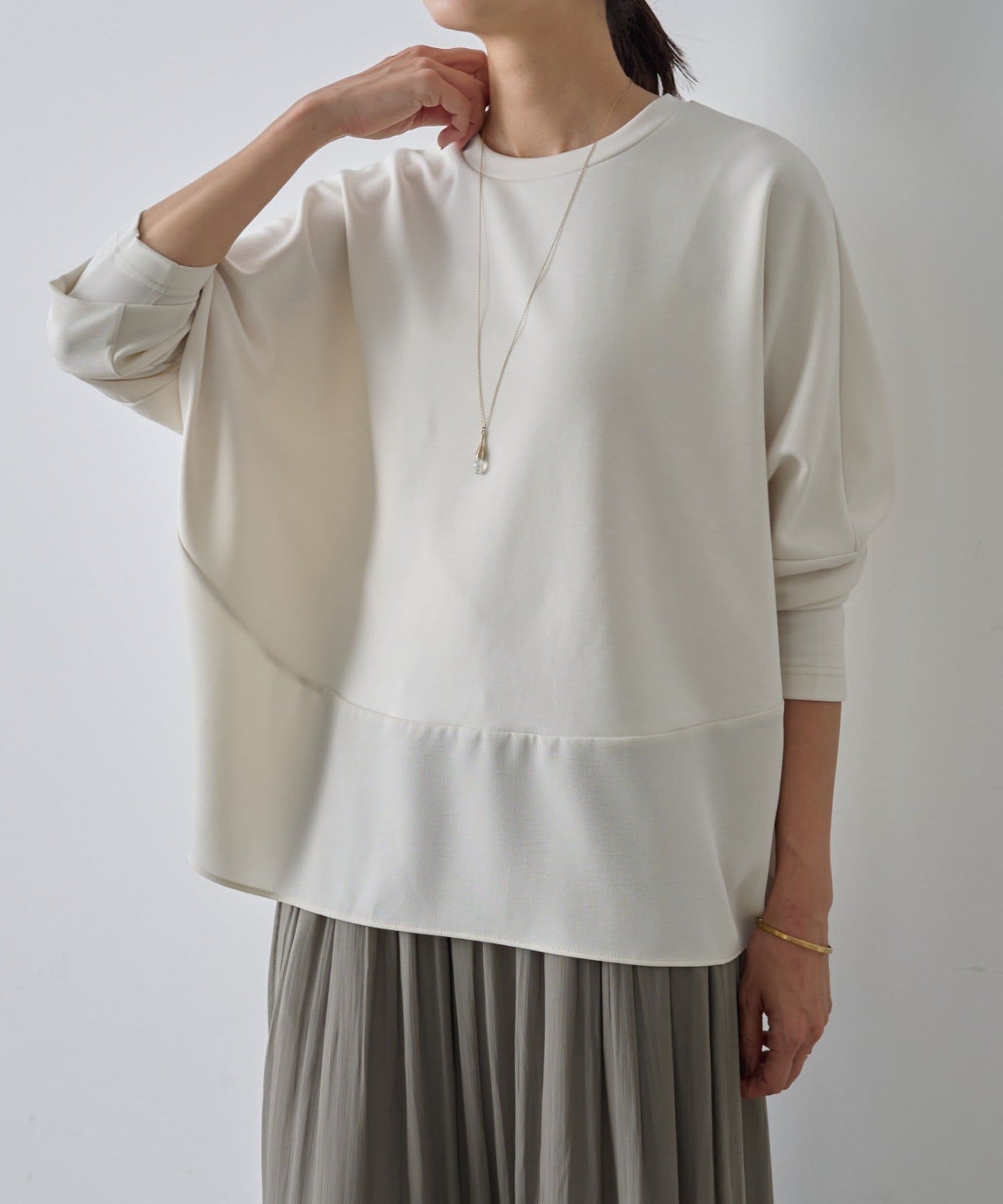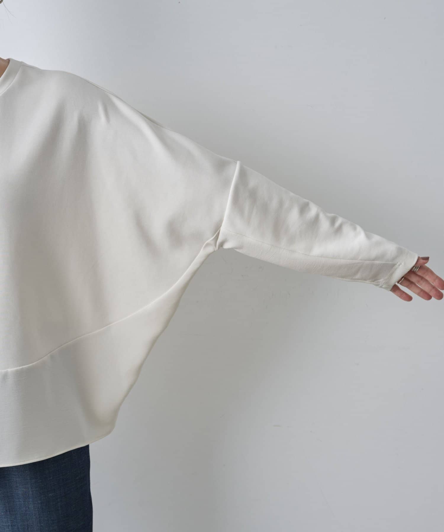 ゆったりドルマンスリーブで体のラインを拾いにくく、ルーズになりすぎない絶妙なシルエットが魅力。