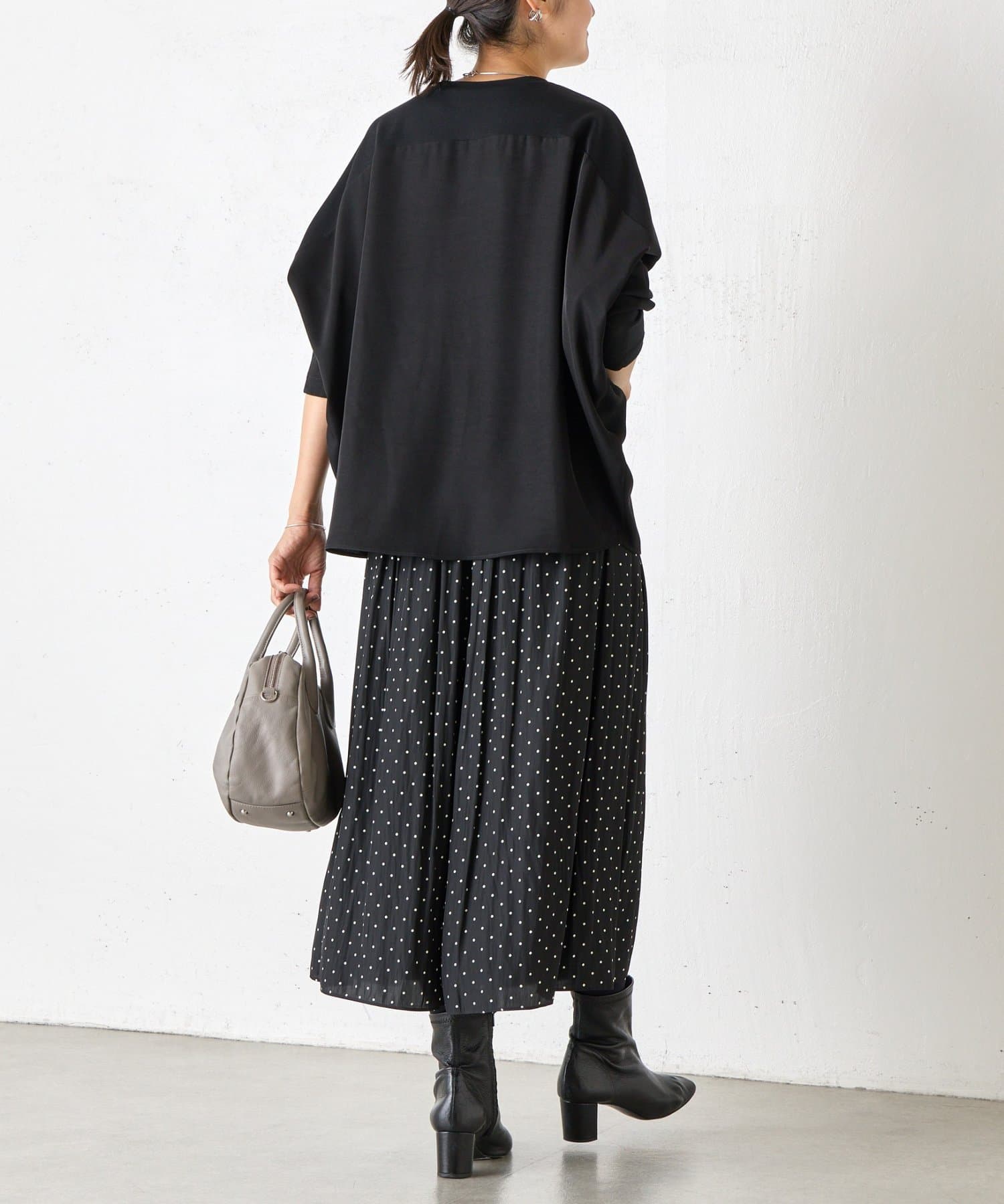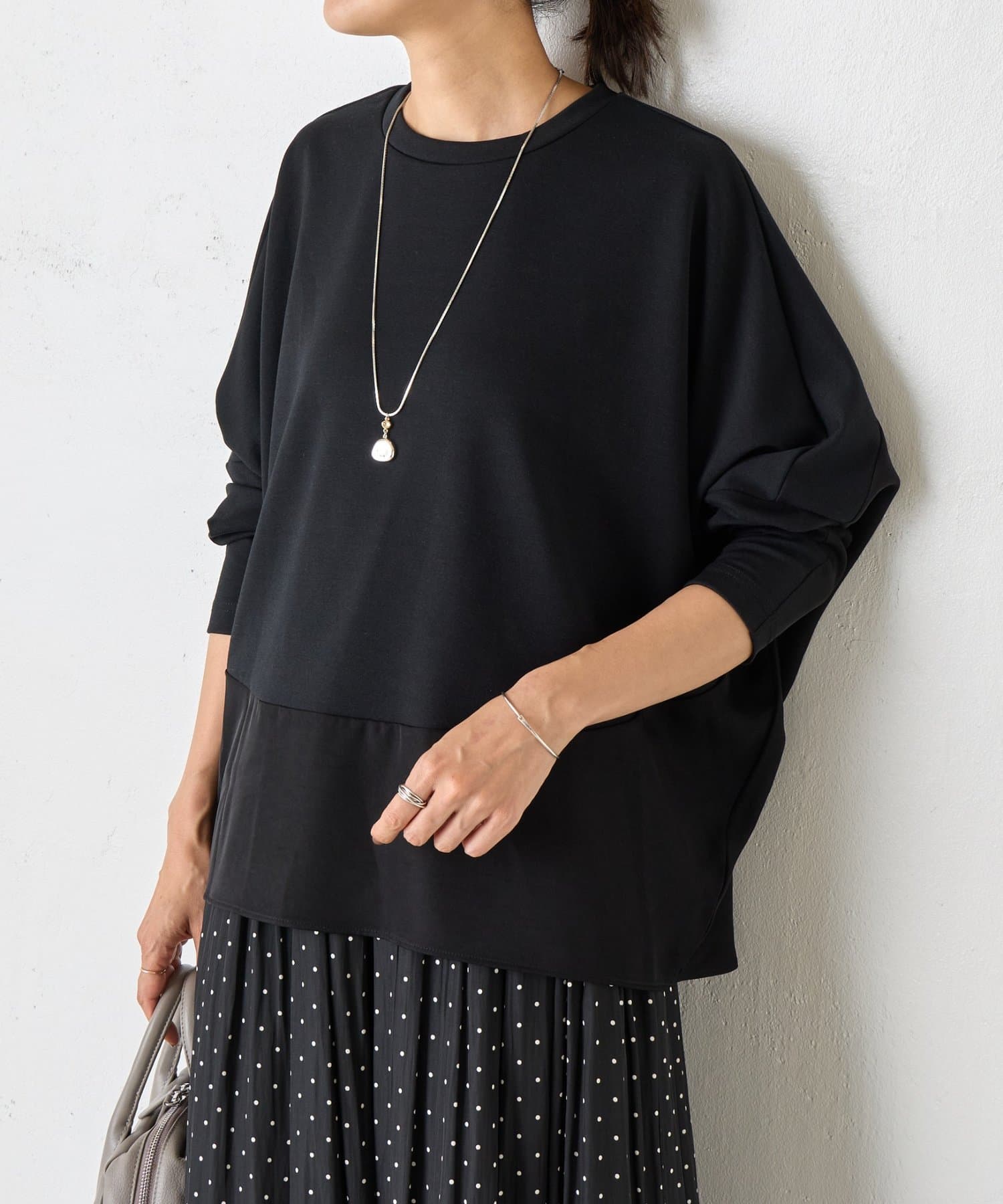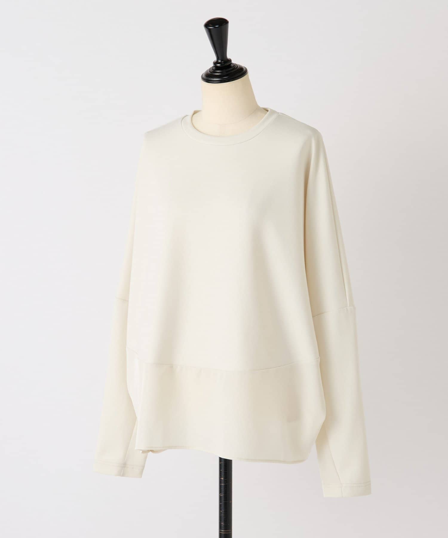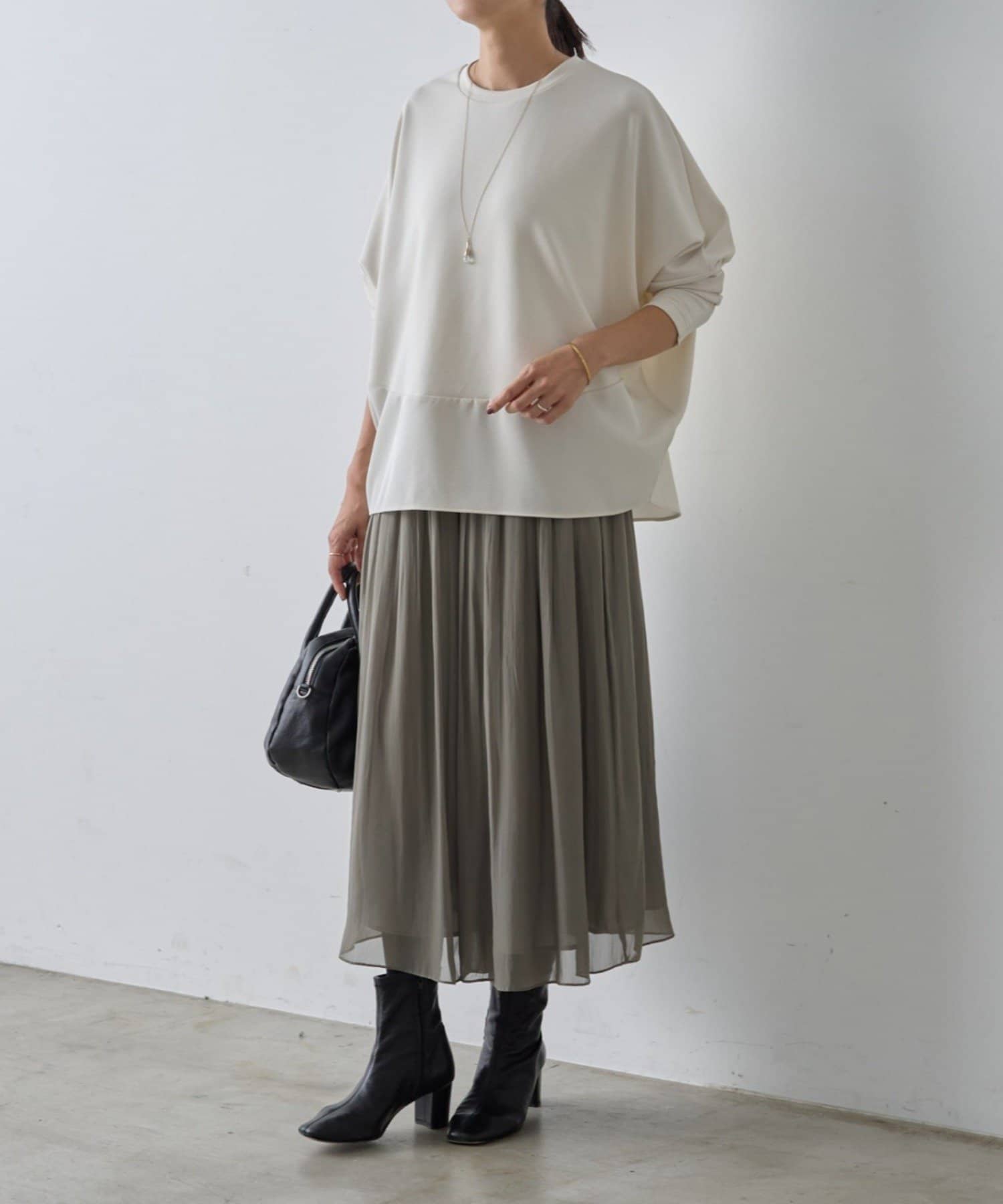 ゆったりドルマンスリーブで体のラインを拾いにくく、ルーズになりすぎない絶妙なシルエットが魅力。