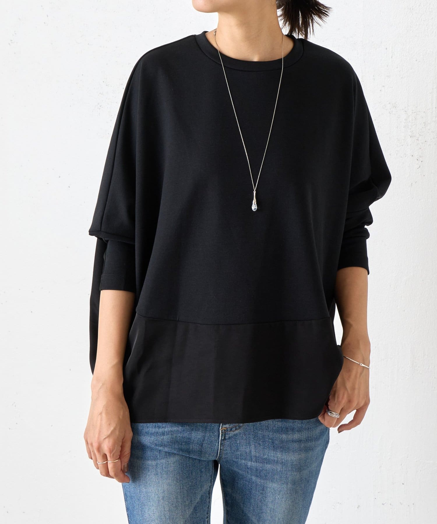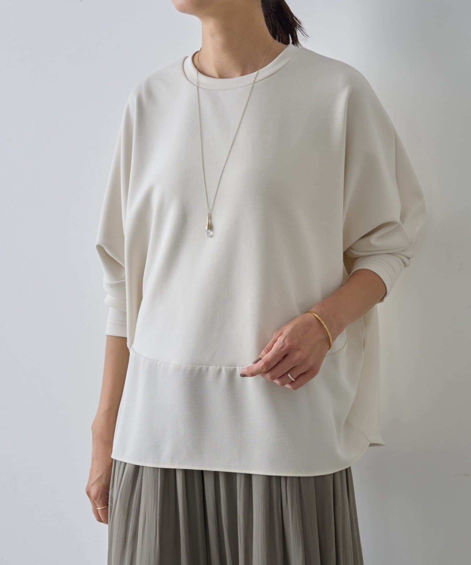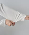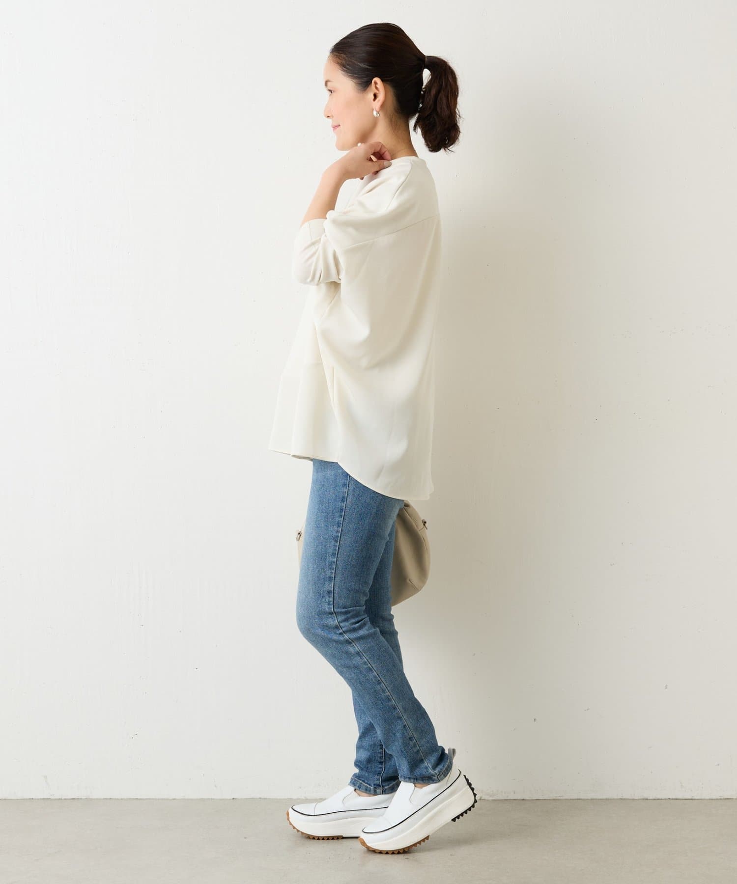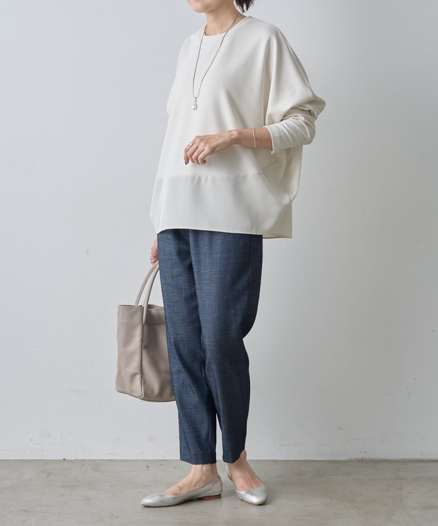 ゆったりドルマンスリーブで体のラインを拾いにくく、ルーズになりすぎない絶妙なシルエットが魅力。