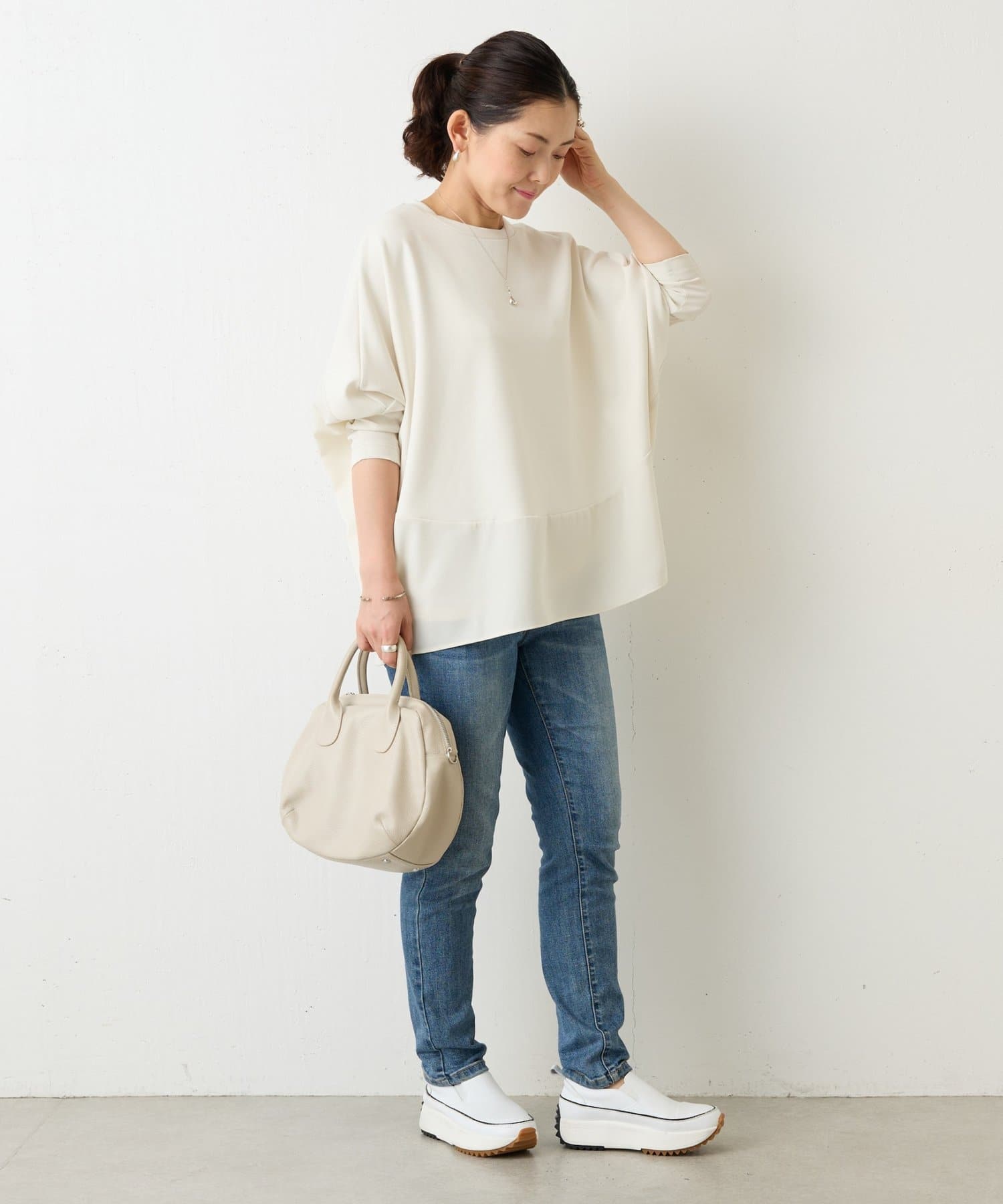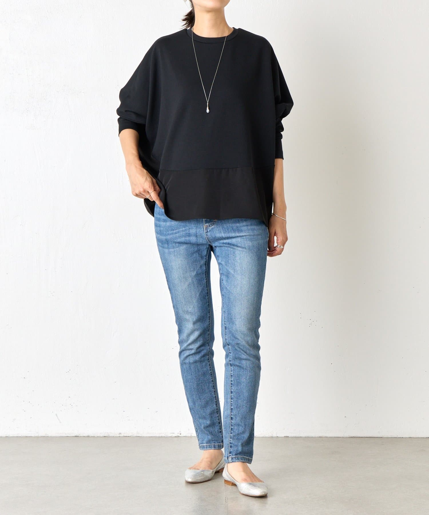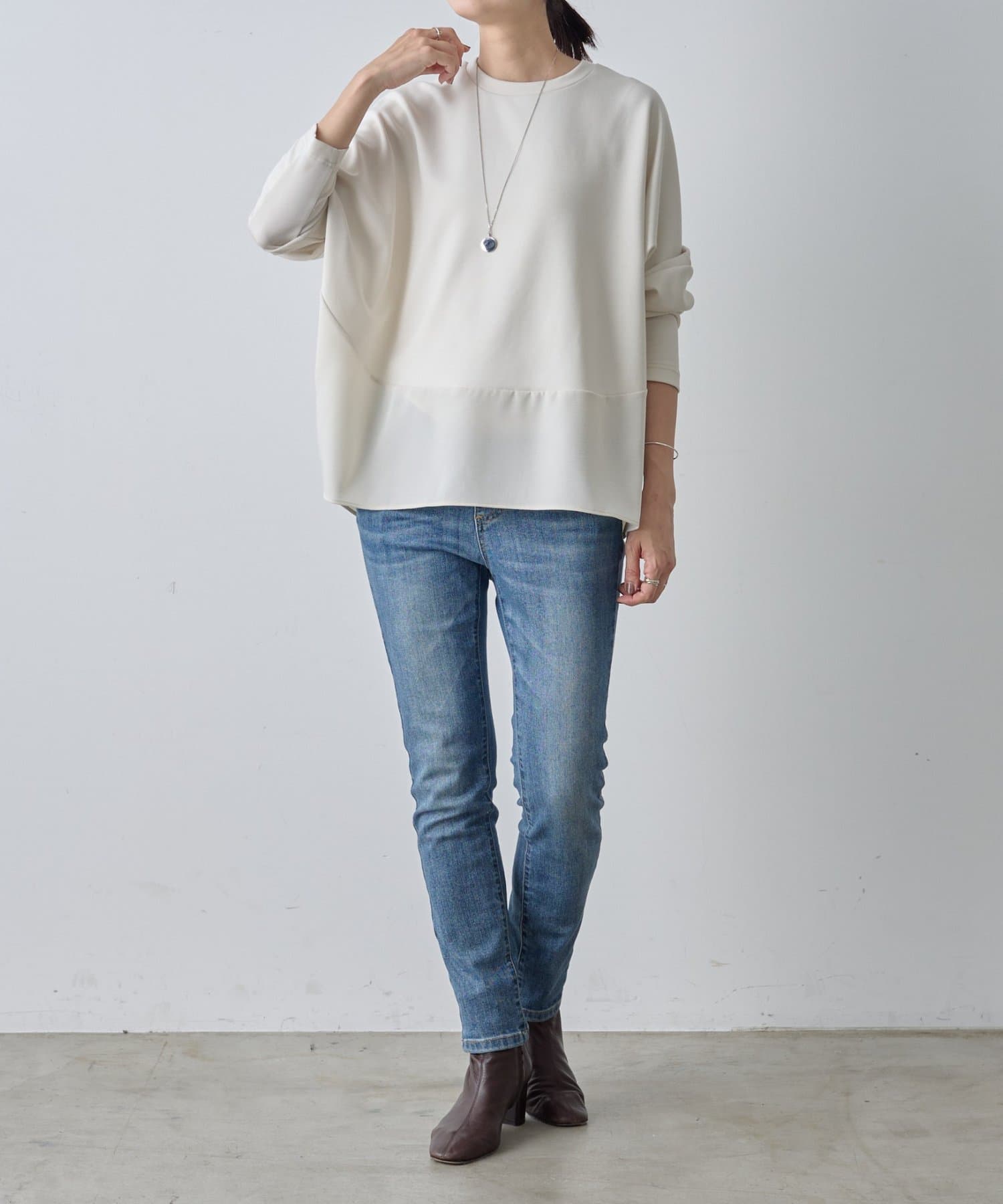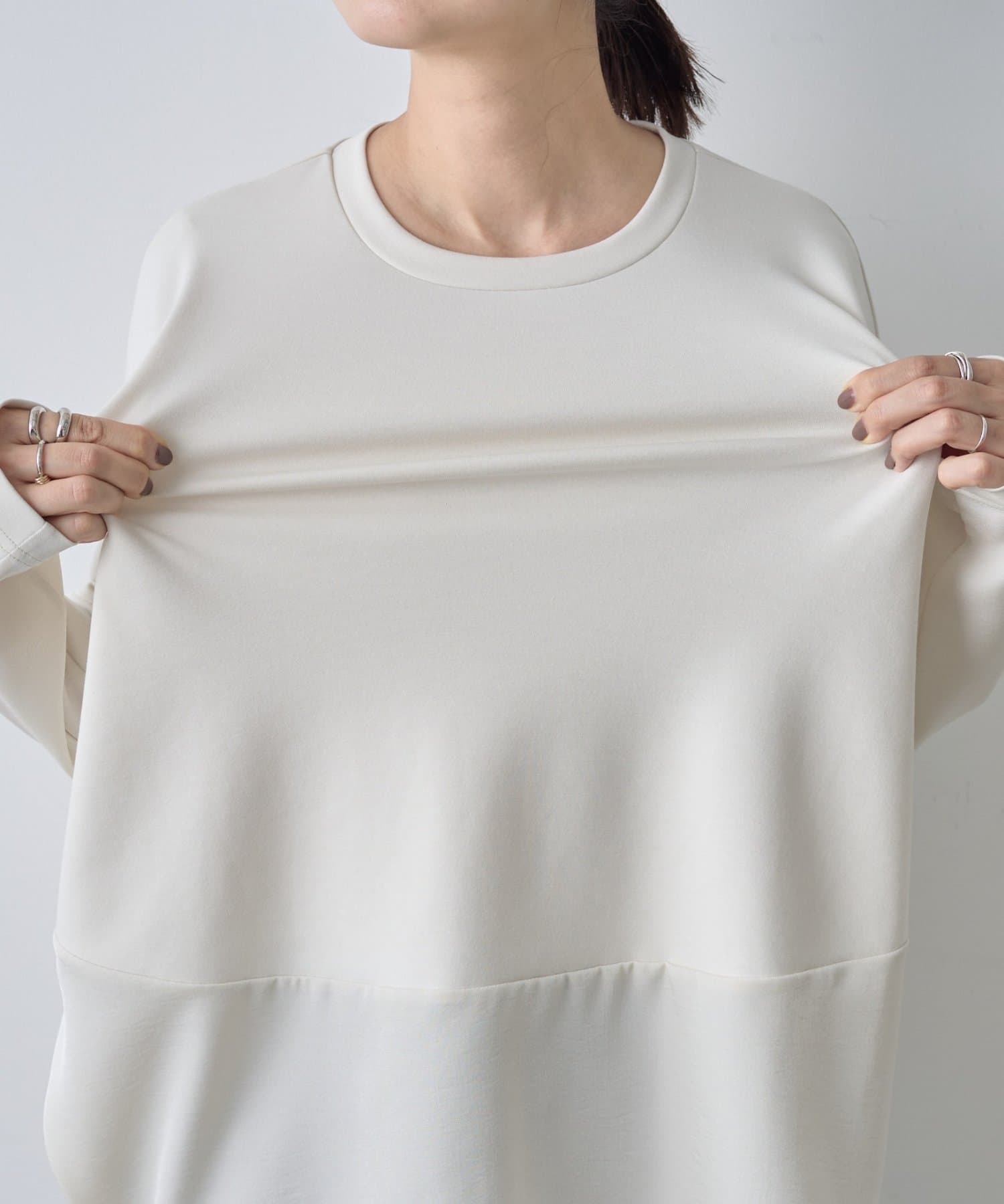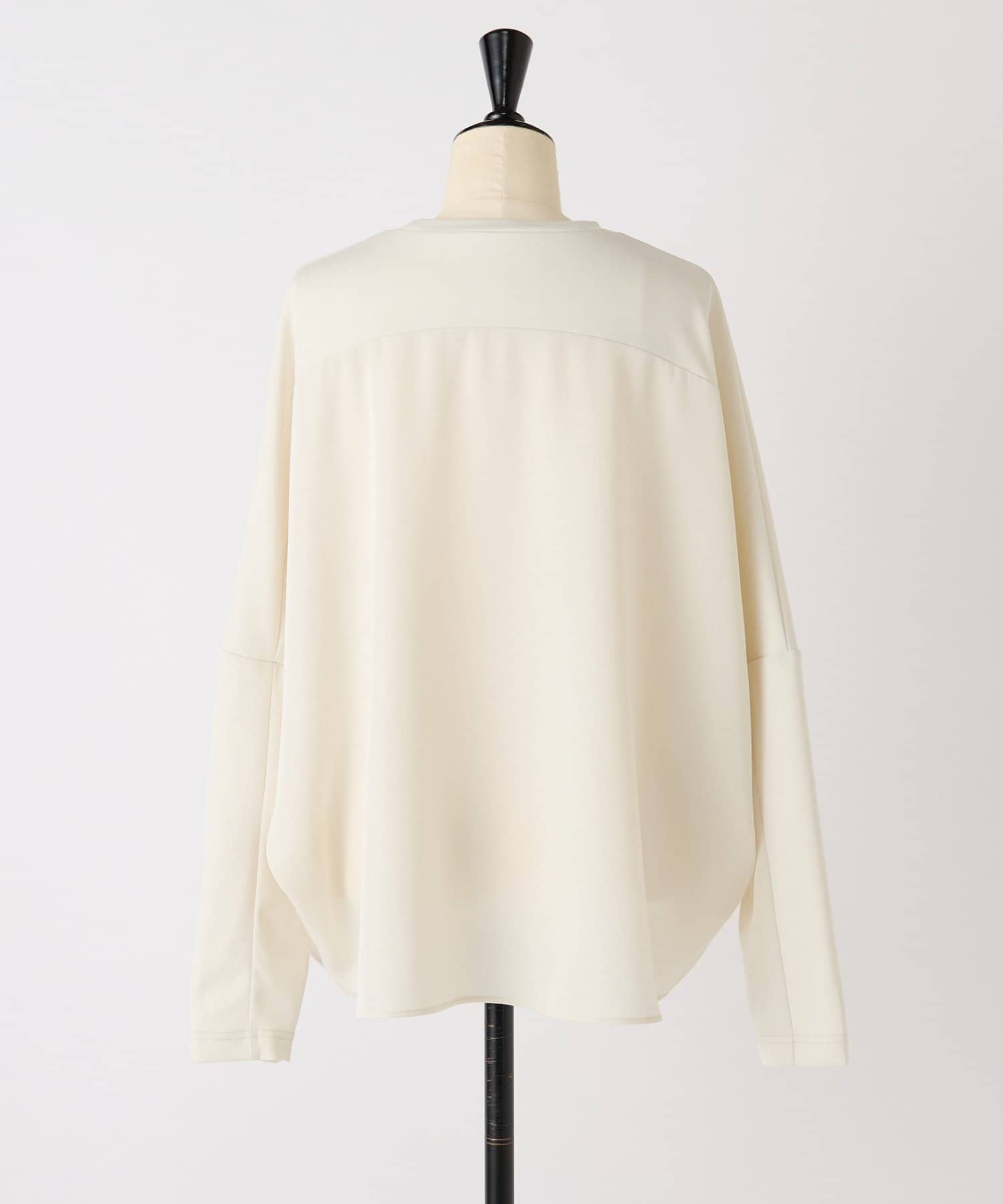 ゆったりドルマンスリーブで体のラインを拾いにくく、ルーズになりすぎない絶妙なシルエットが魅力。
