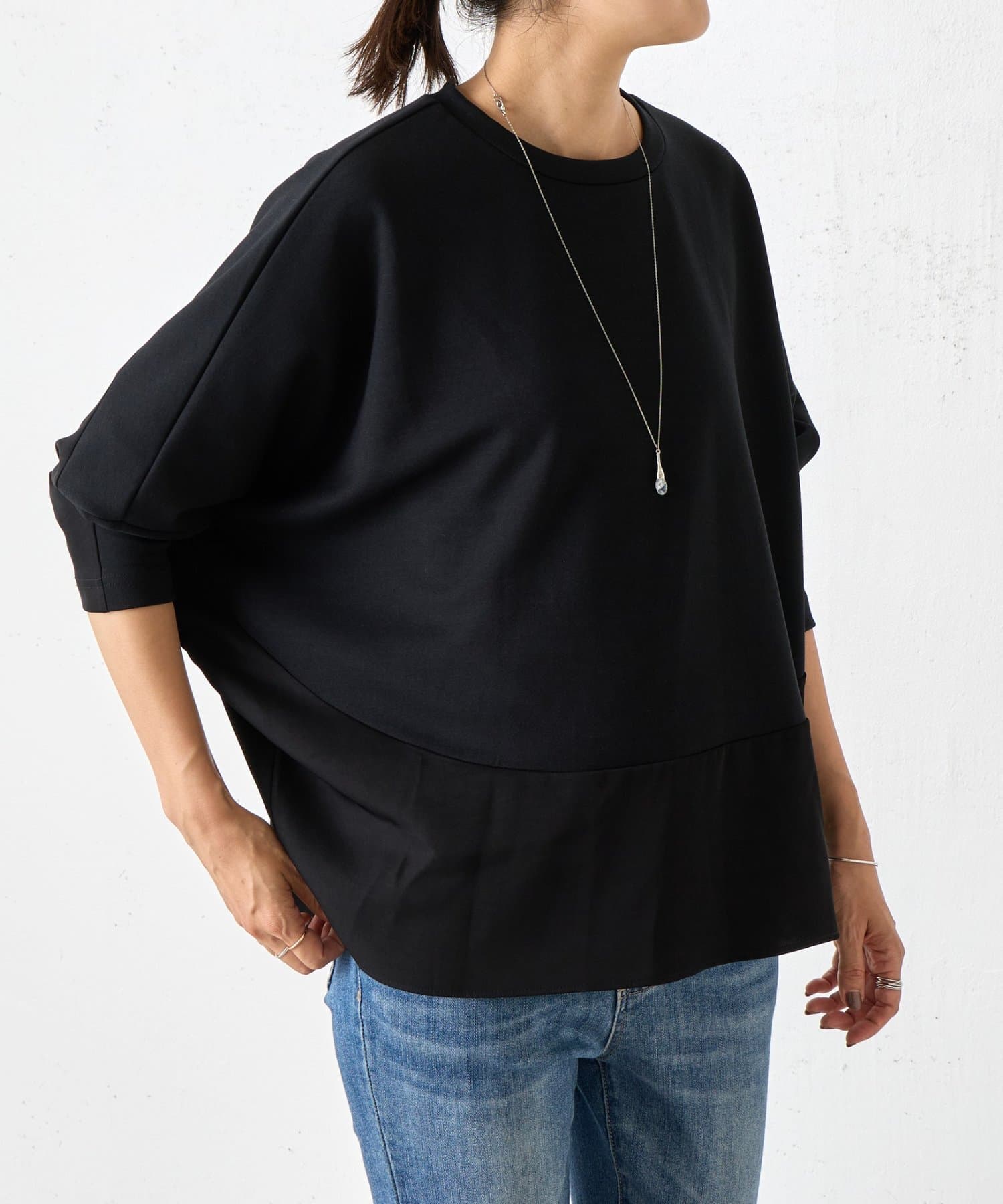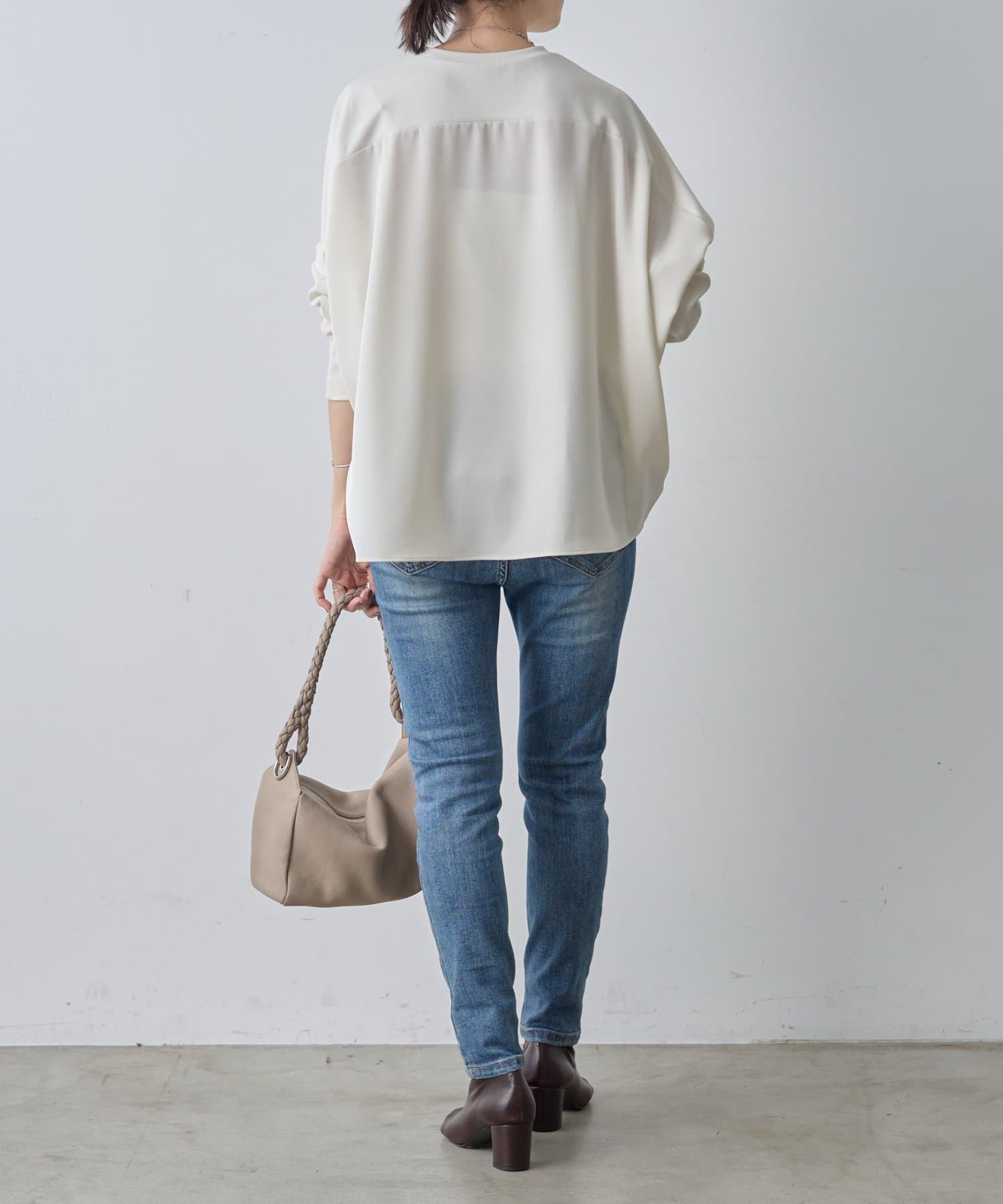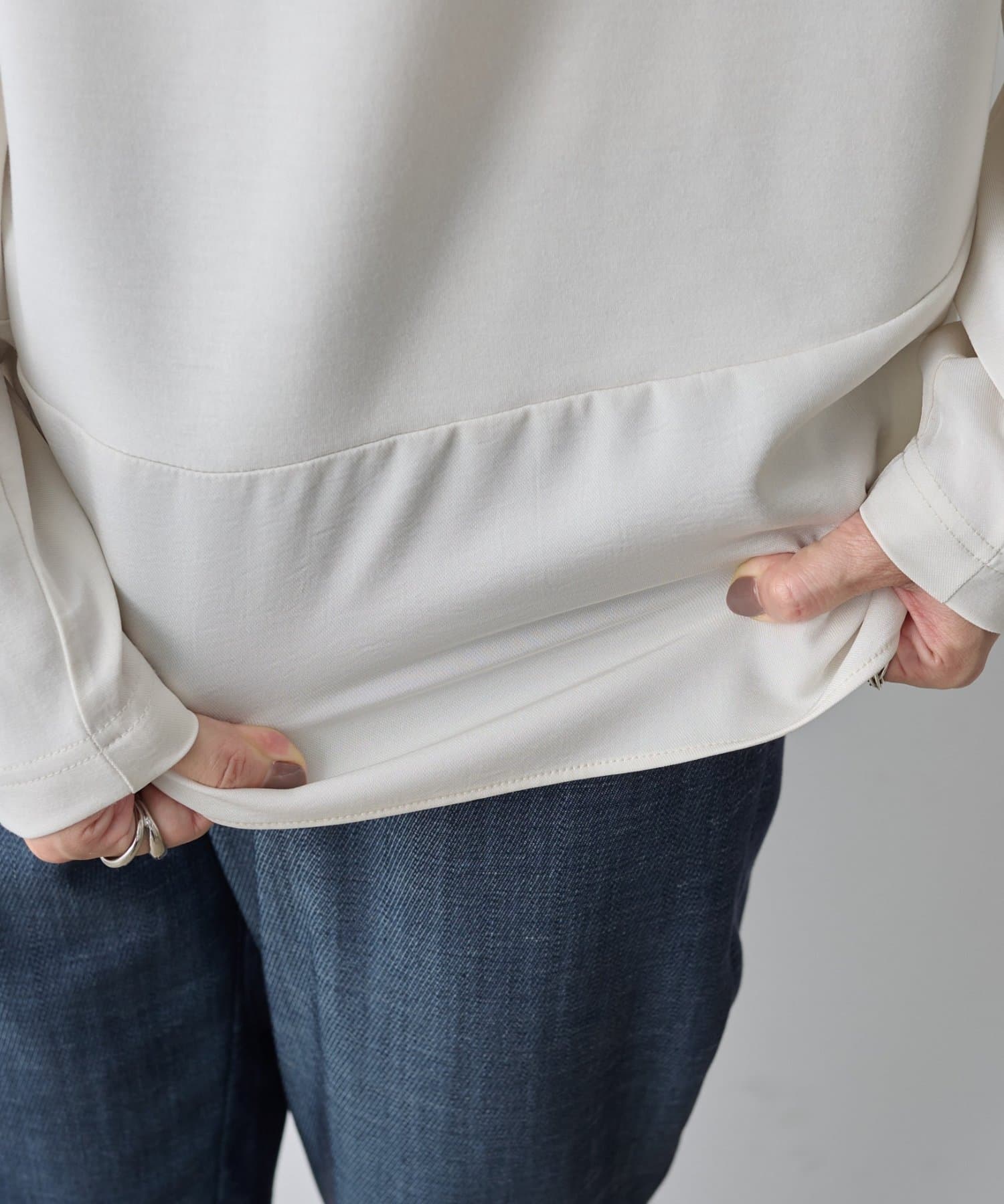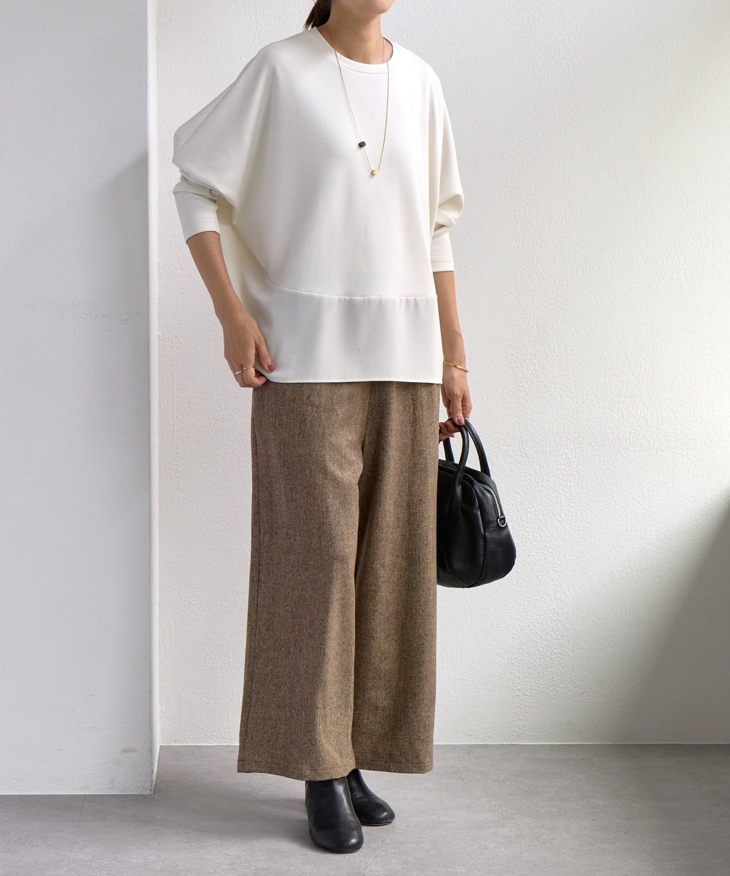 ゆったりドルマンスリーブで体のラインを拾いにくく、ルーズになりすぎない絶妙なシルエットが魅力。